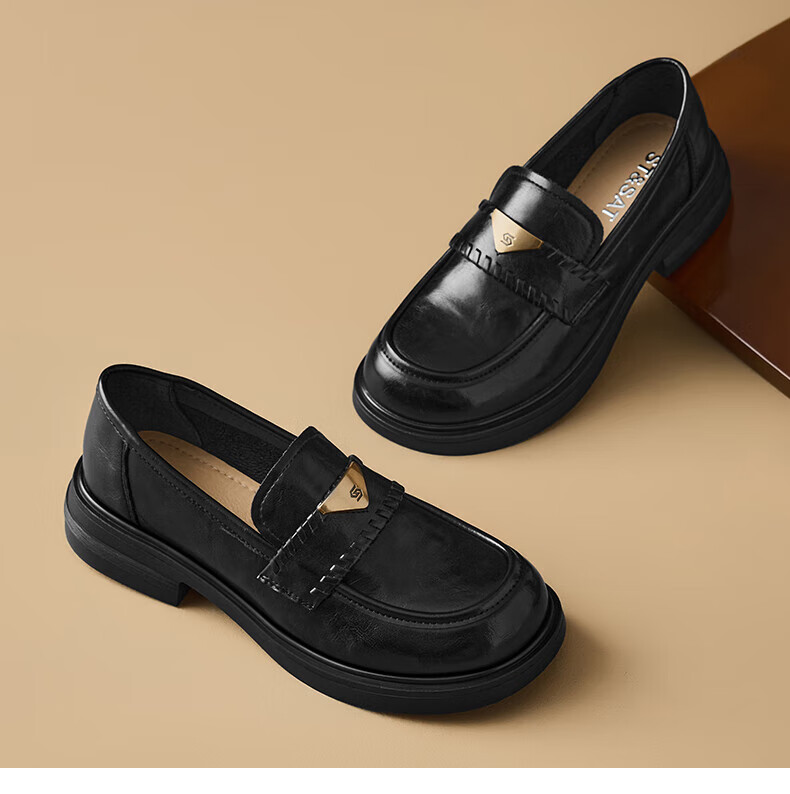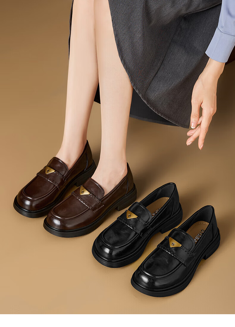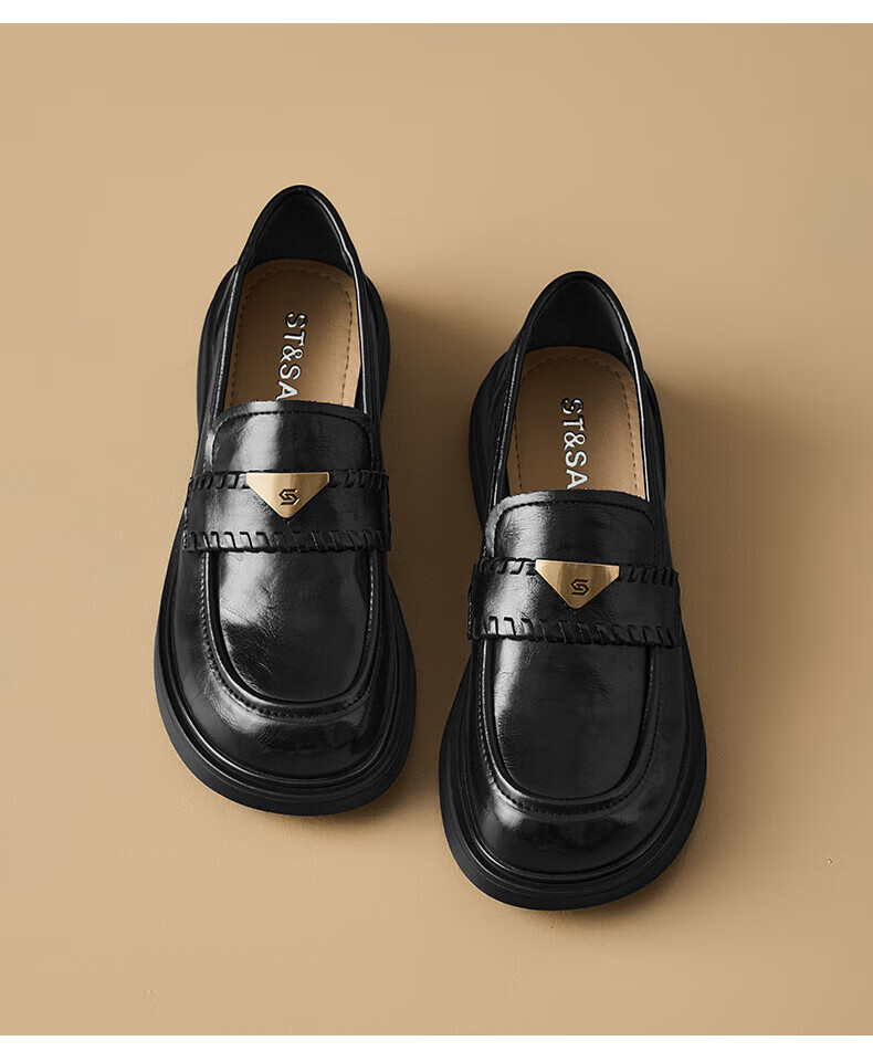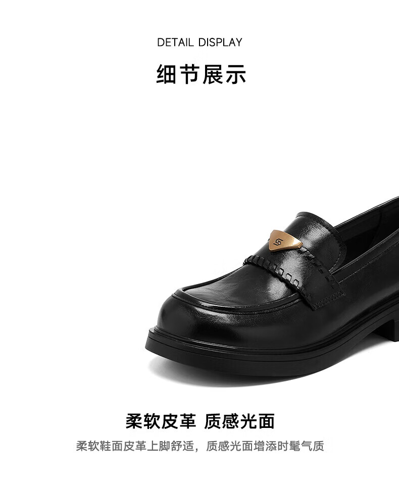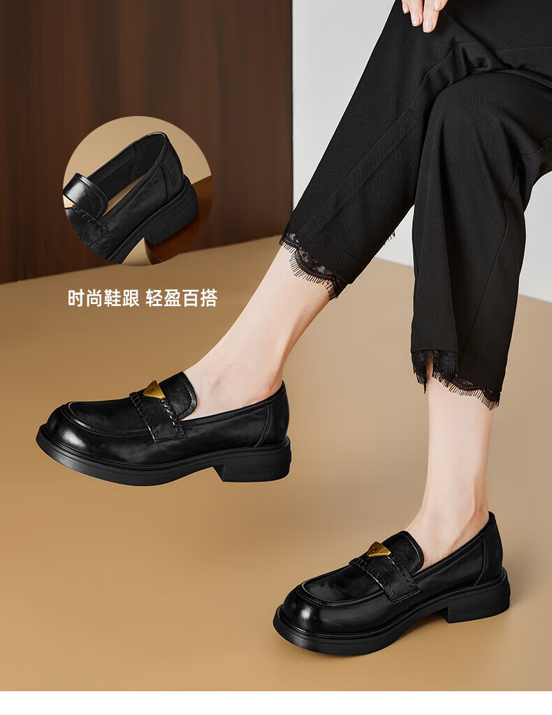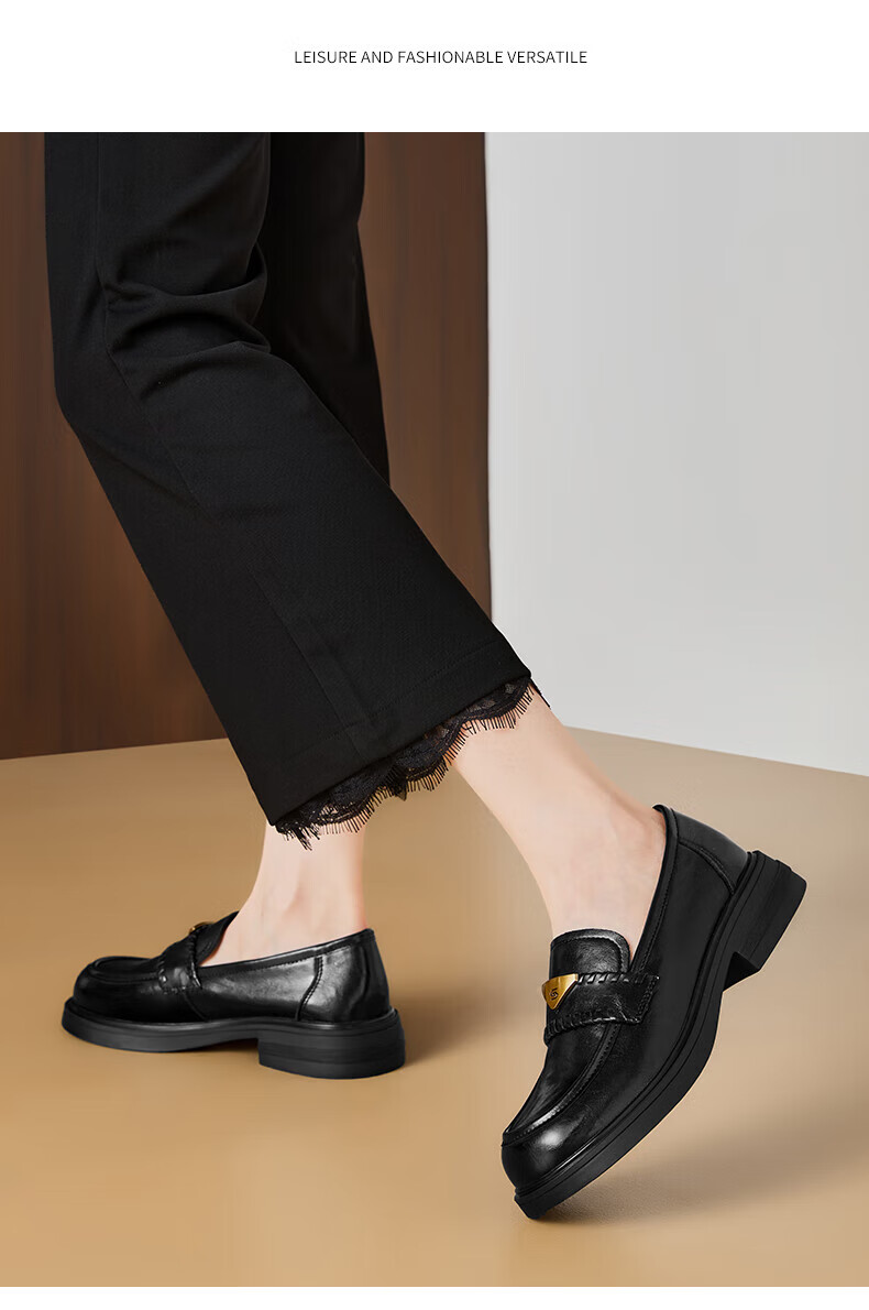 星期六乐福鞋女2025新款爆款秋冬平底鞋英伦风小皮鞋女款百搭通勤单鞋女 黑色 36