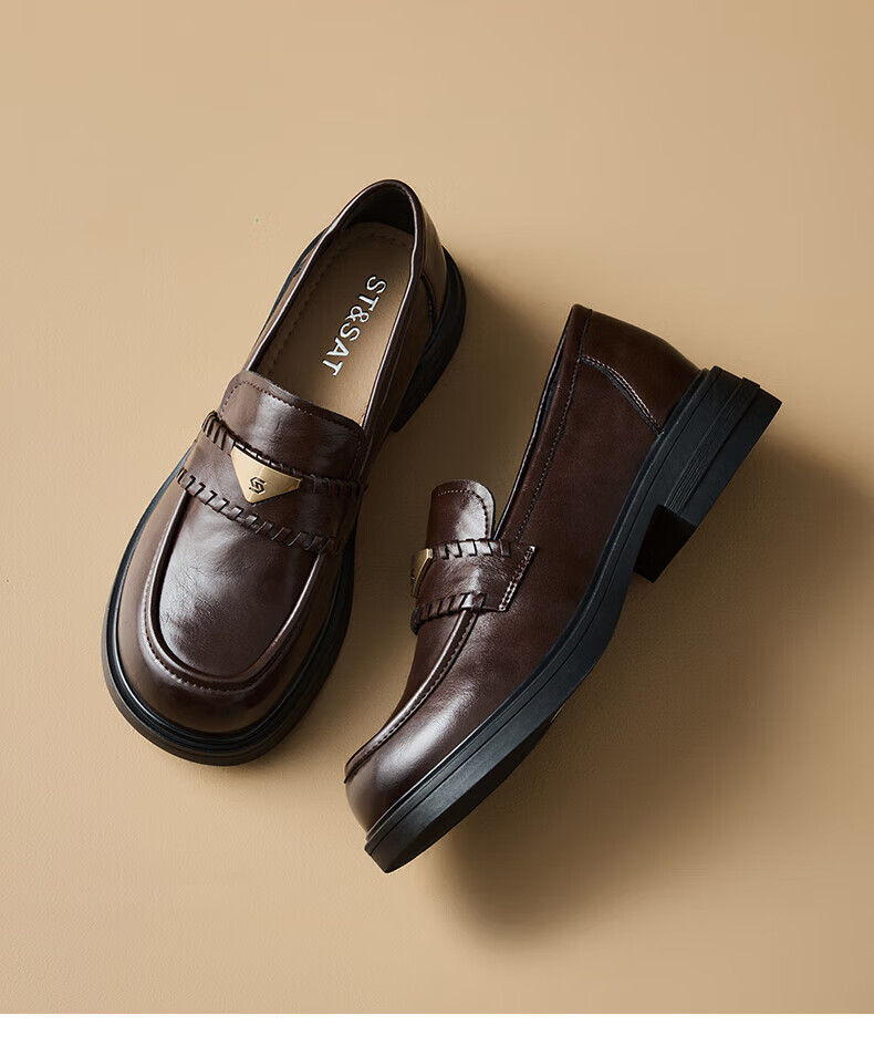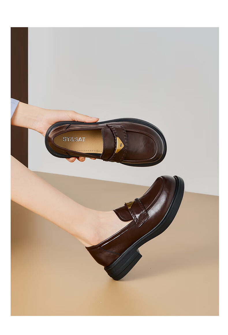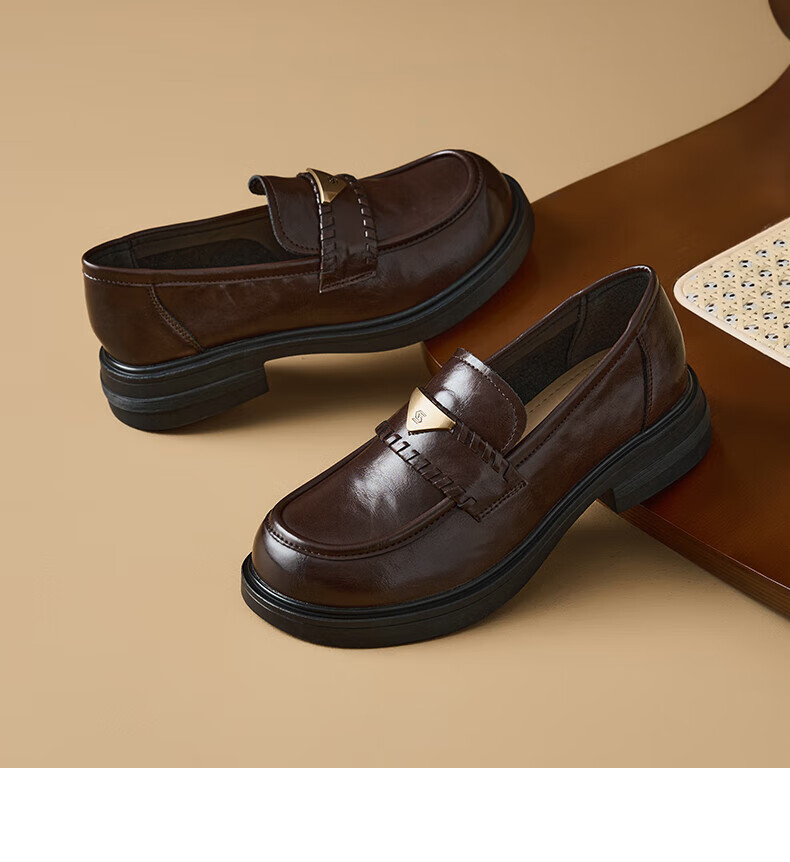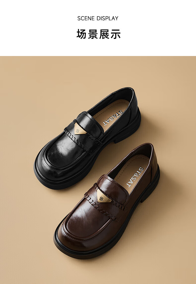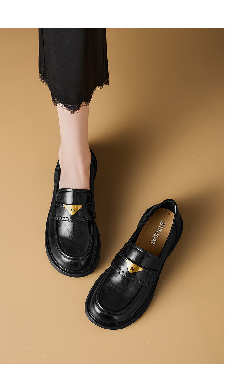 星期六乐福鞋女2025新款爆款秋冬平底鞋英伦风小皮鞋女款百搭通勤单鞋女 黑色 36