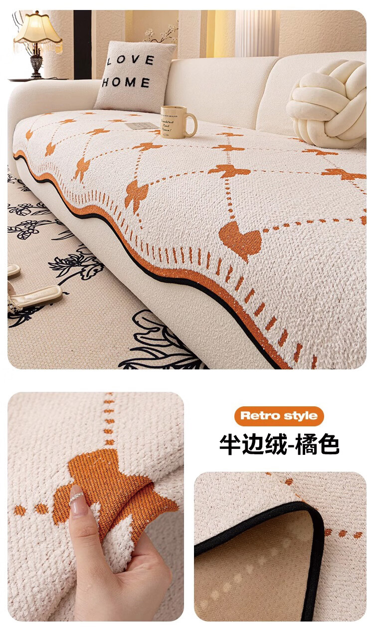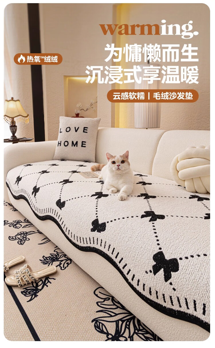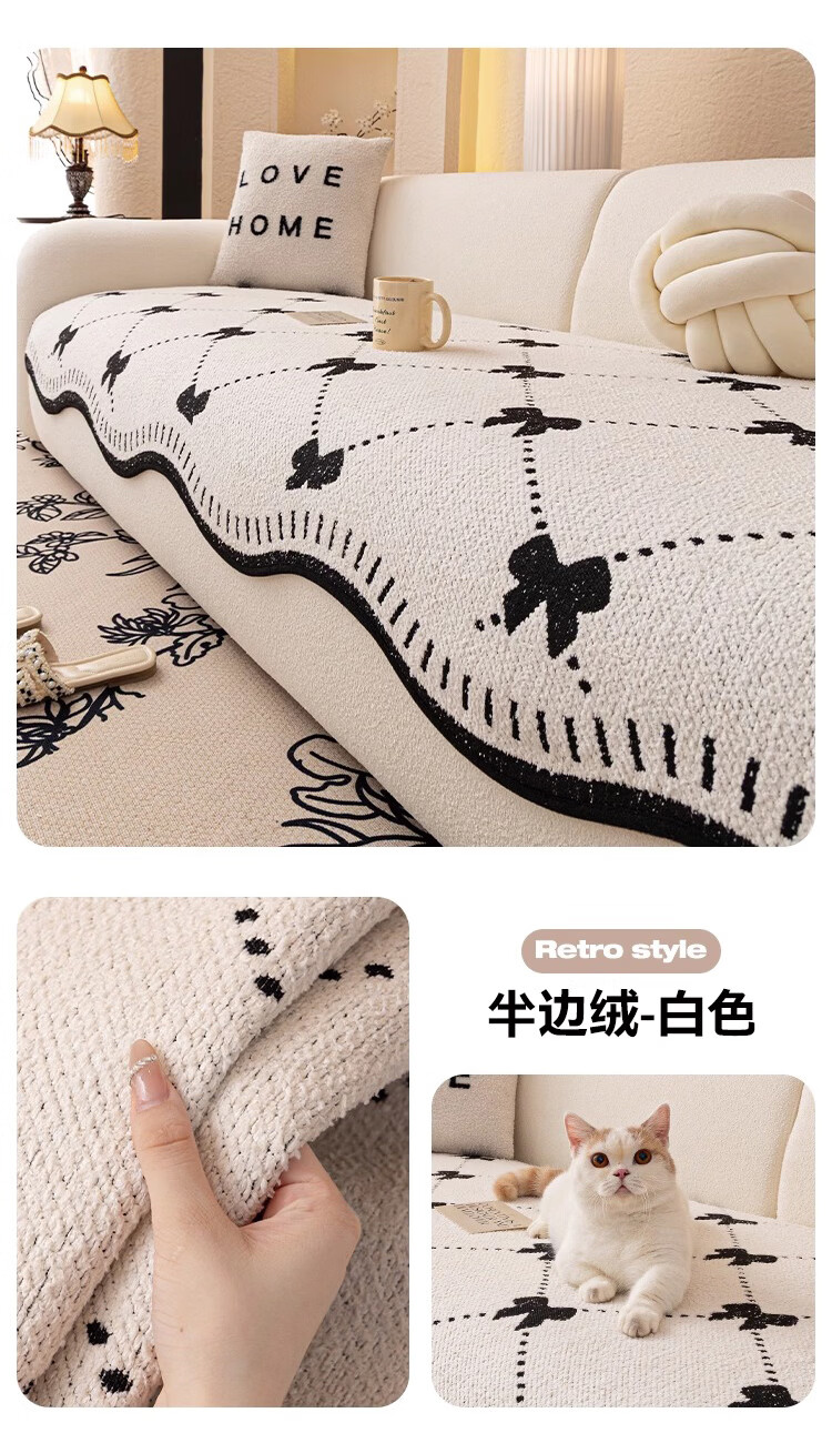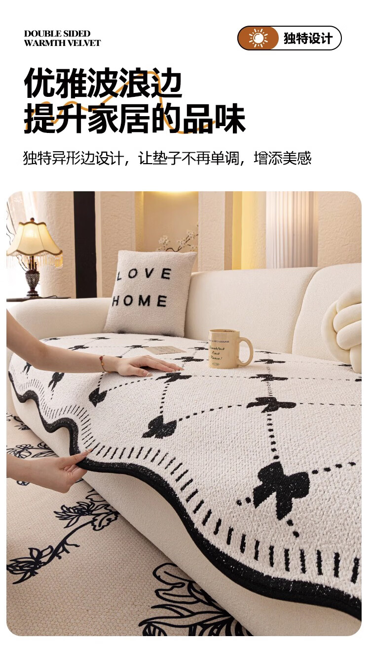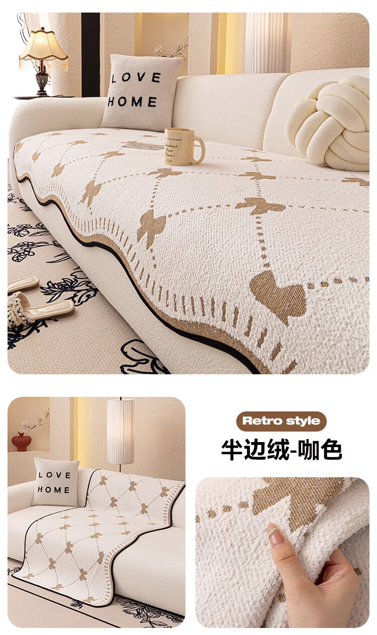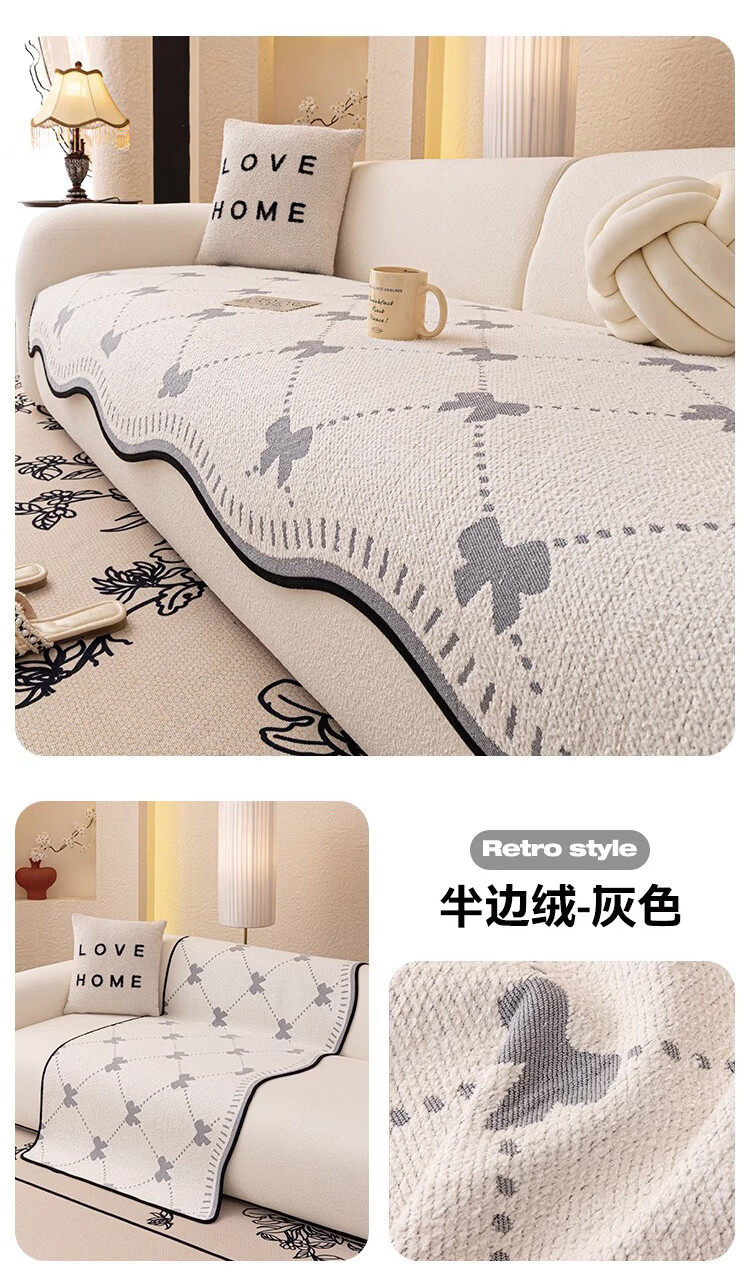 金拾美月奶油风异形沙发垫2025新款秋冬加厚毛绒高级直排坐垫套罩盖布巾 菱蝶-米白色 70cm*70cm