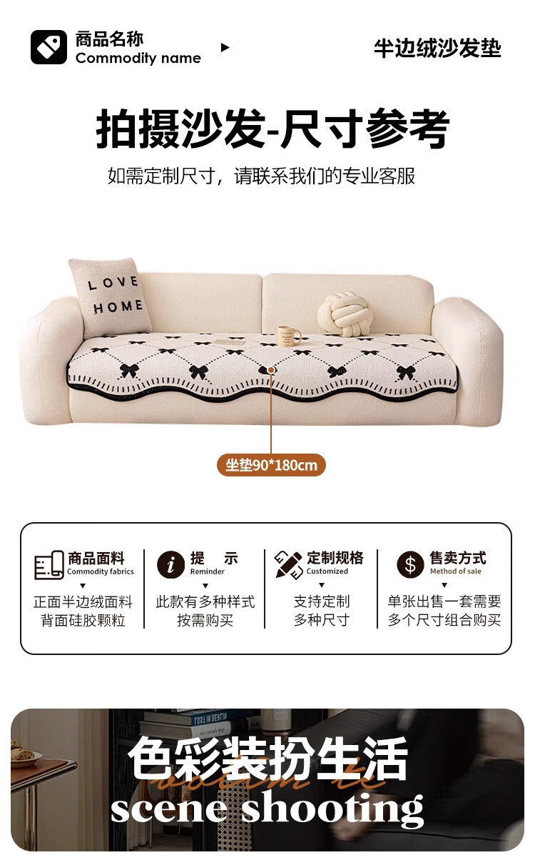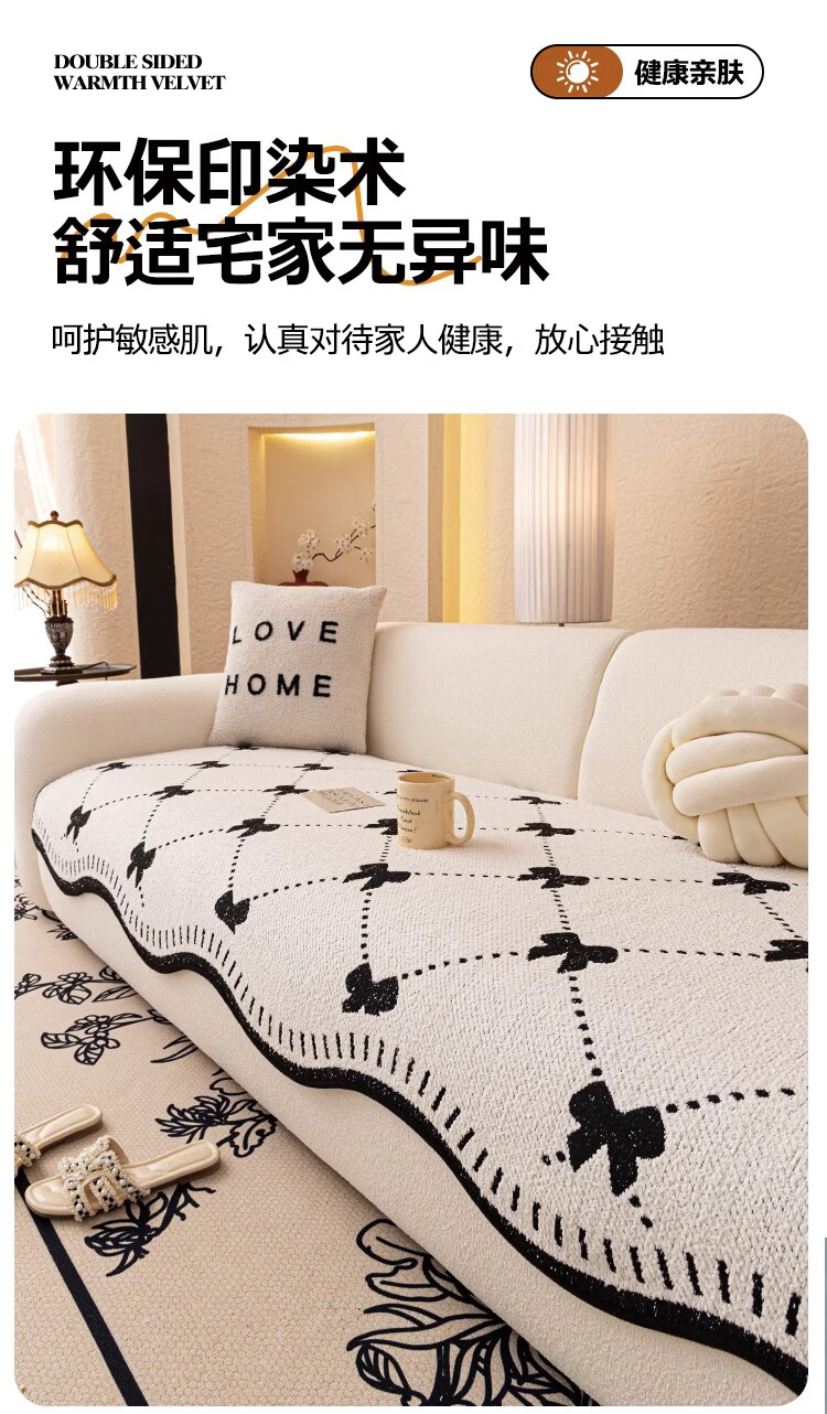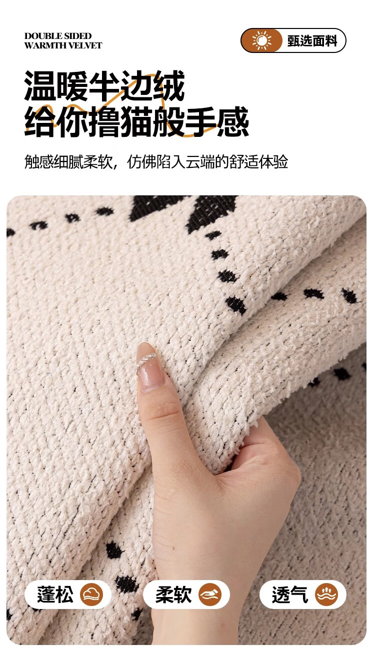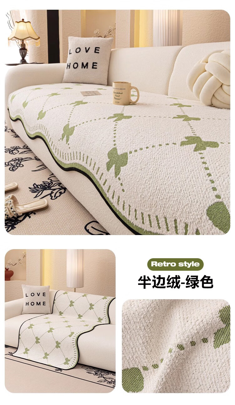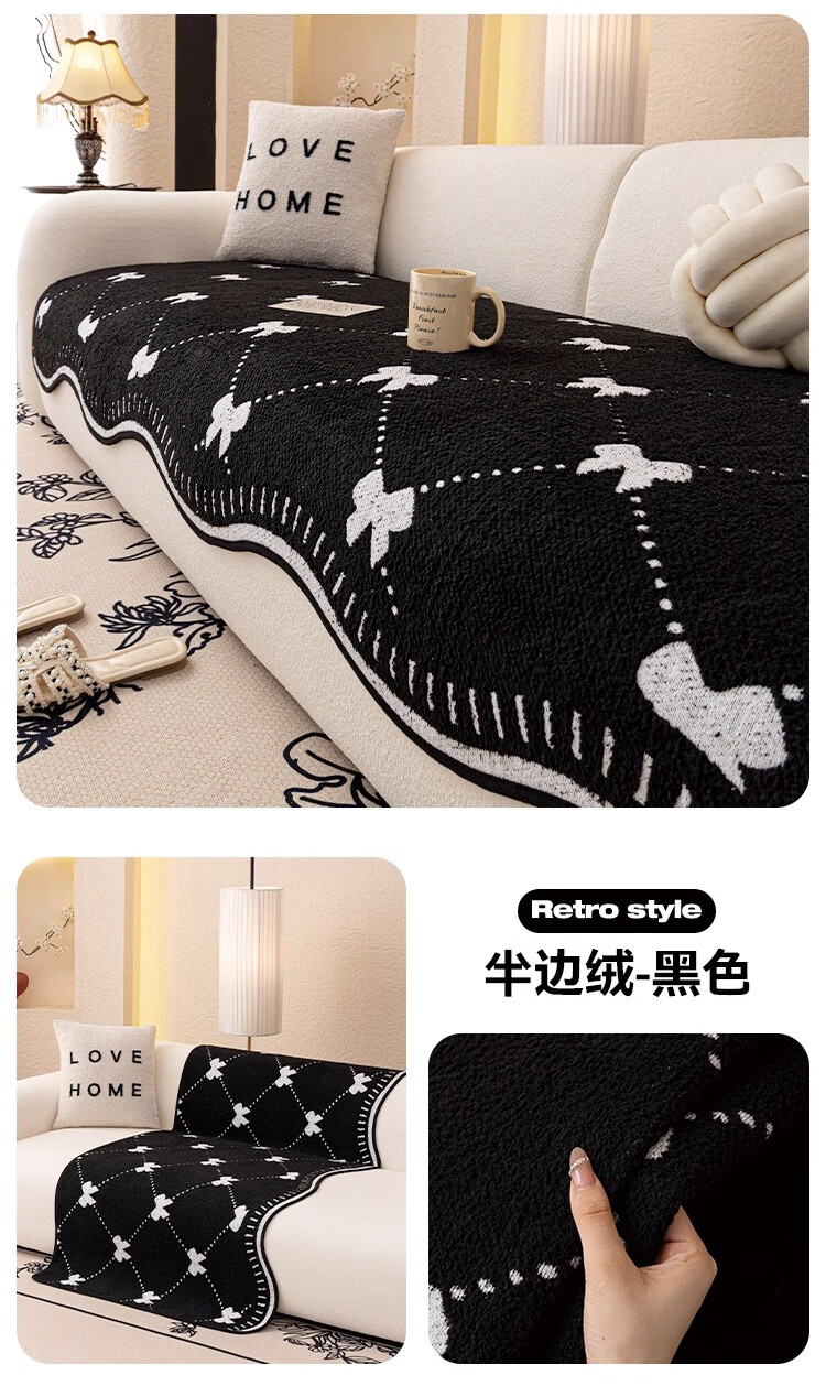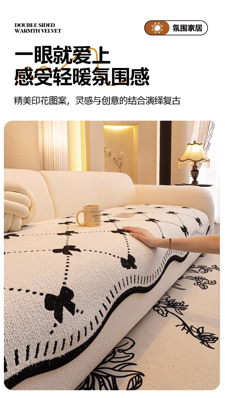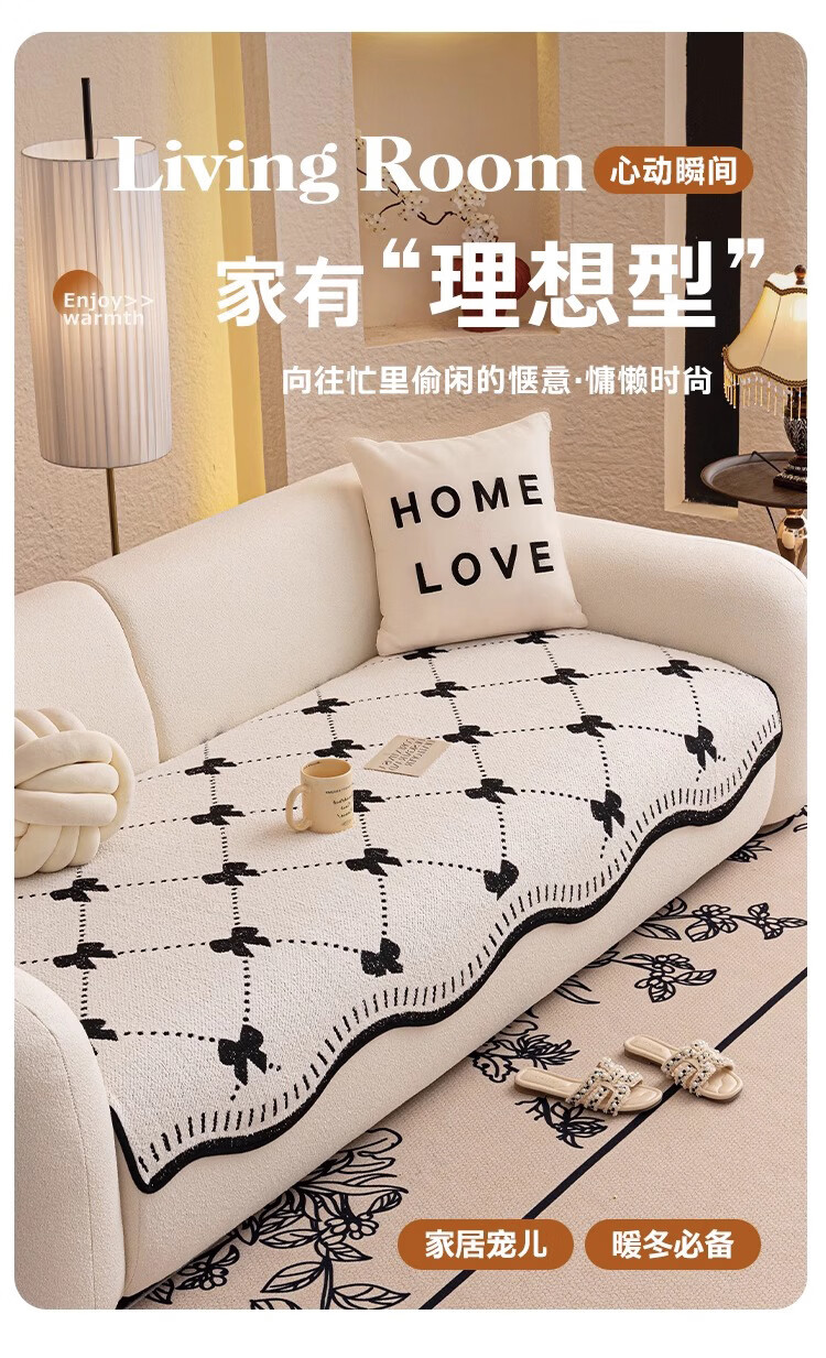 金拾美月奶油风异形沙发垫2025新款秋冬加厚毛绒高级直排坐垫套罩盖布巾 菱蝶-米白色 70cm*70cm