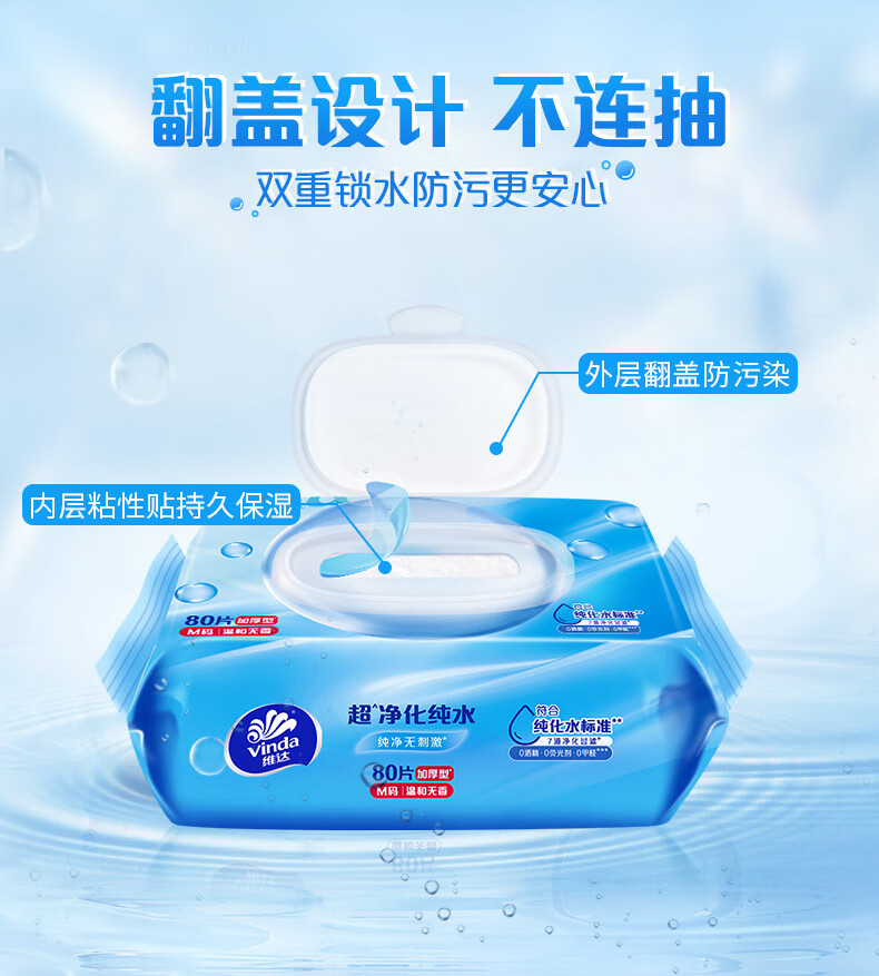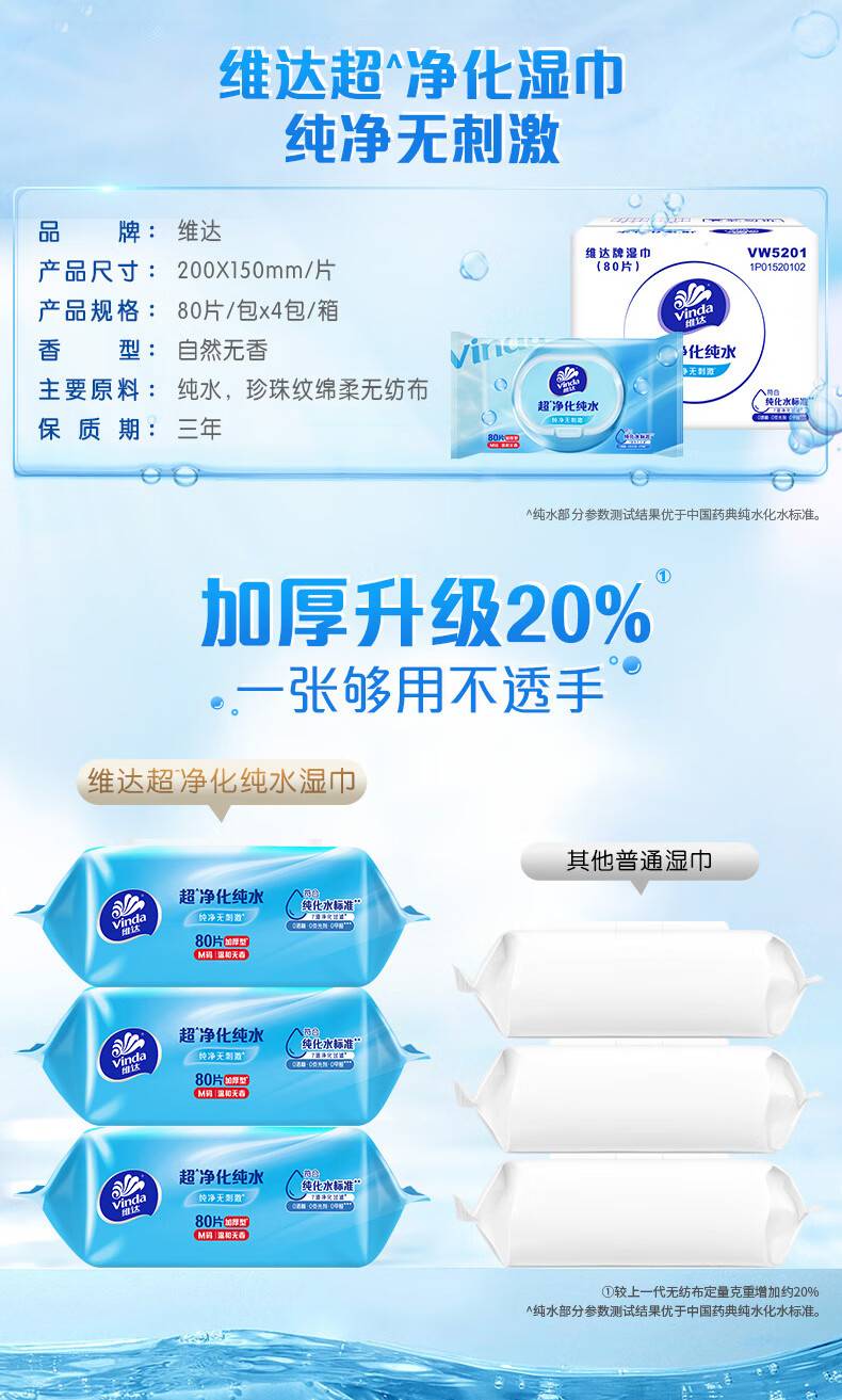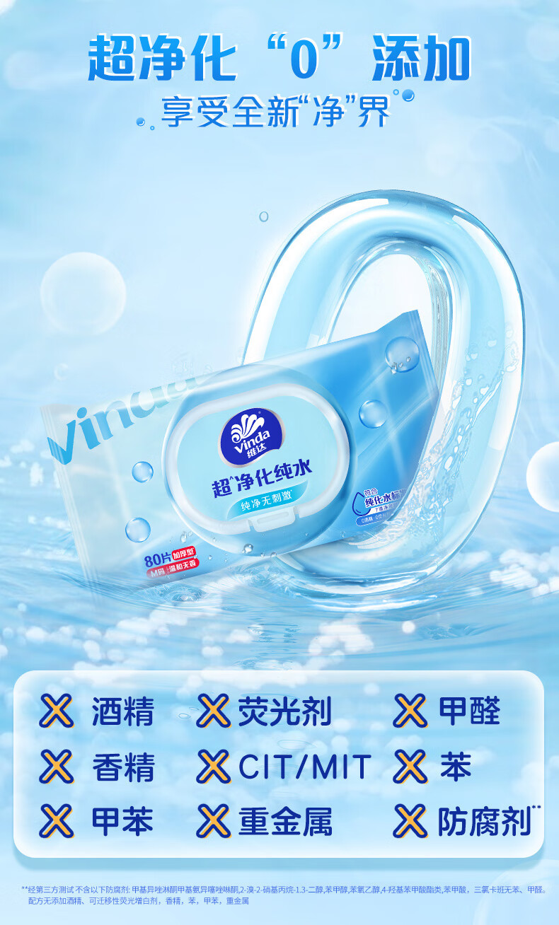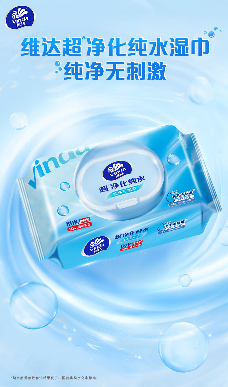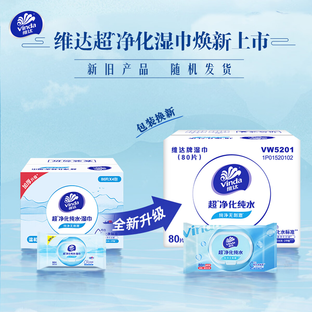 维达(Vinda)超净化纯水湿巾 80片*4包 婴儿湿巾手口可用 湿巾大包