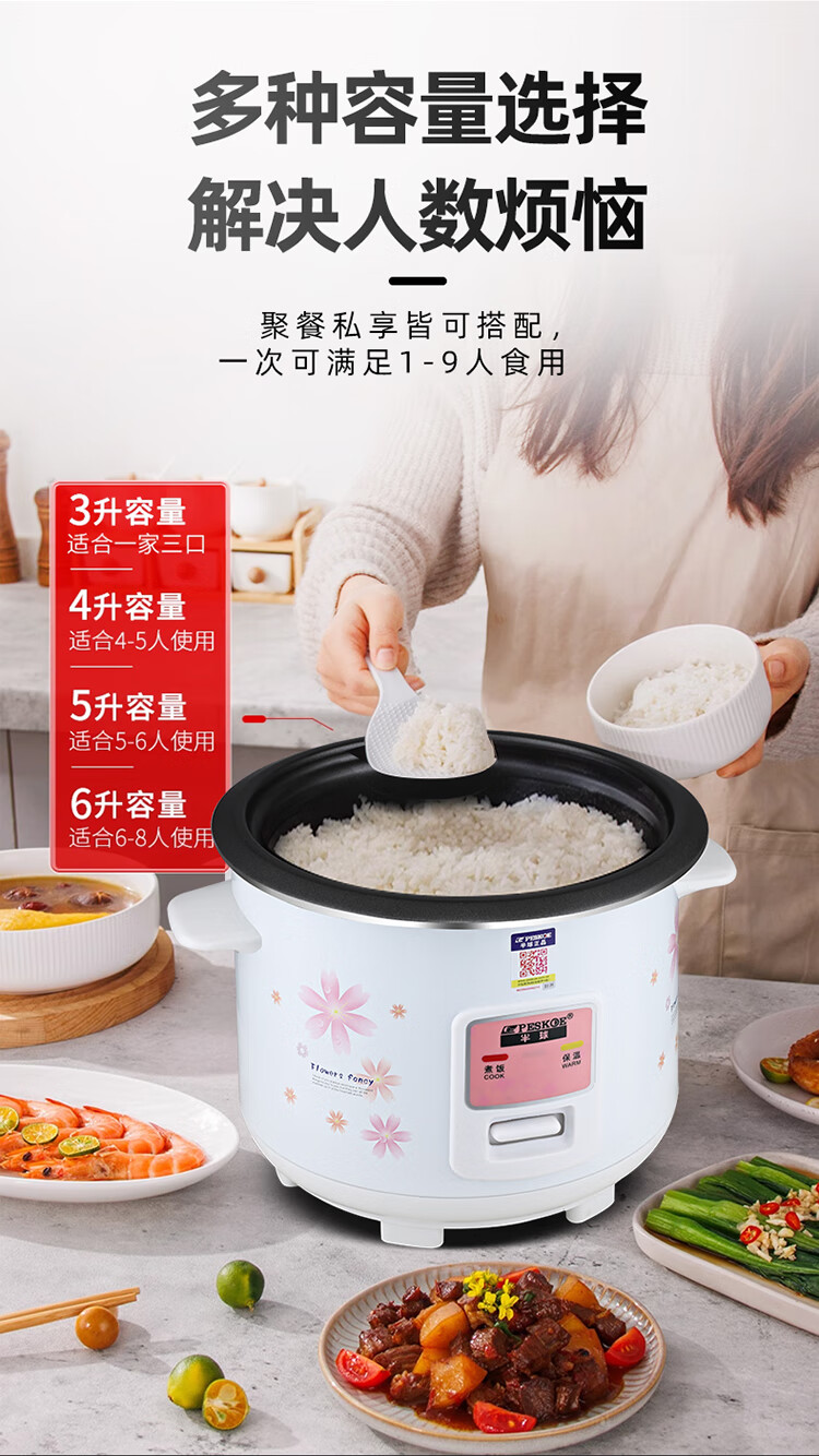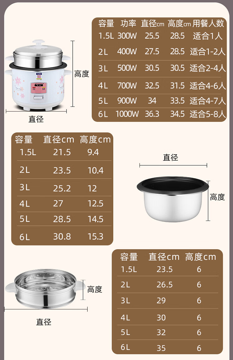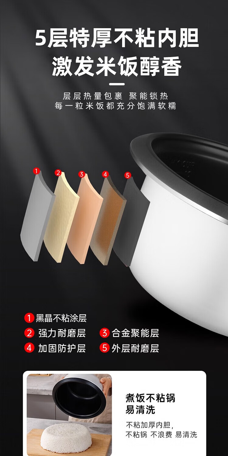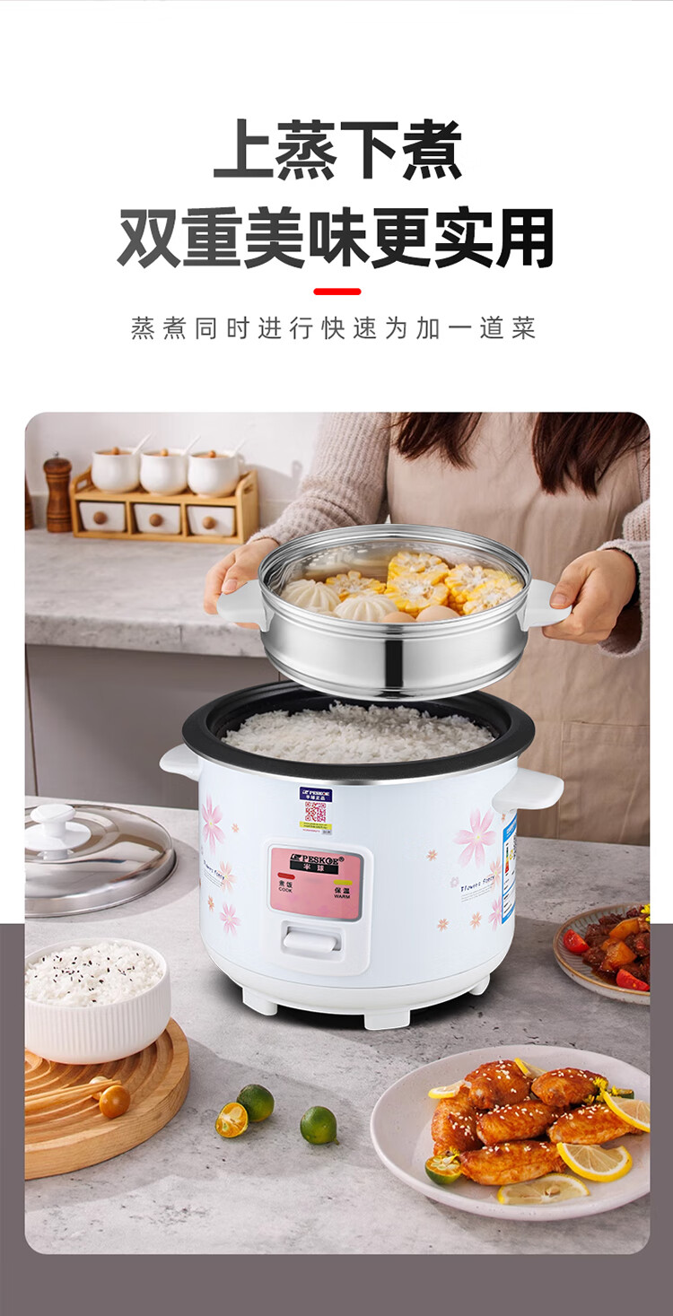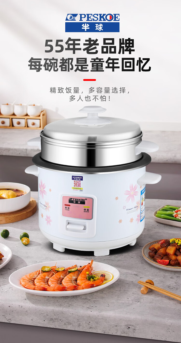 半球电饭煲电饭锅家用大容量可蒸煮电饭煲1-2人 不粘锅多功能一键操作 老式1.5-6L升单人宿舍用迷你 白色 5L 特厚内胆不粘【带蒸笼】4-7人用
