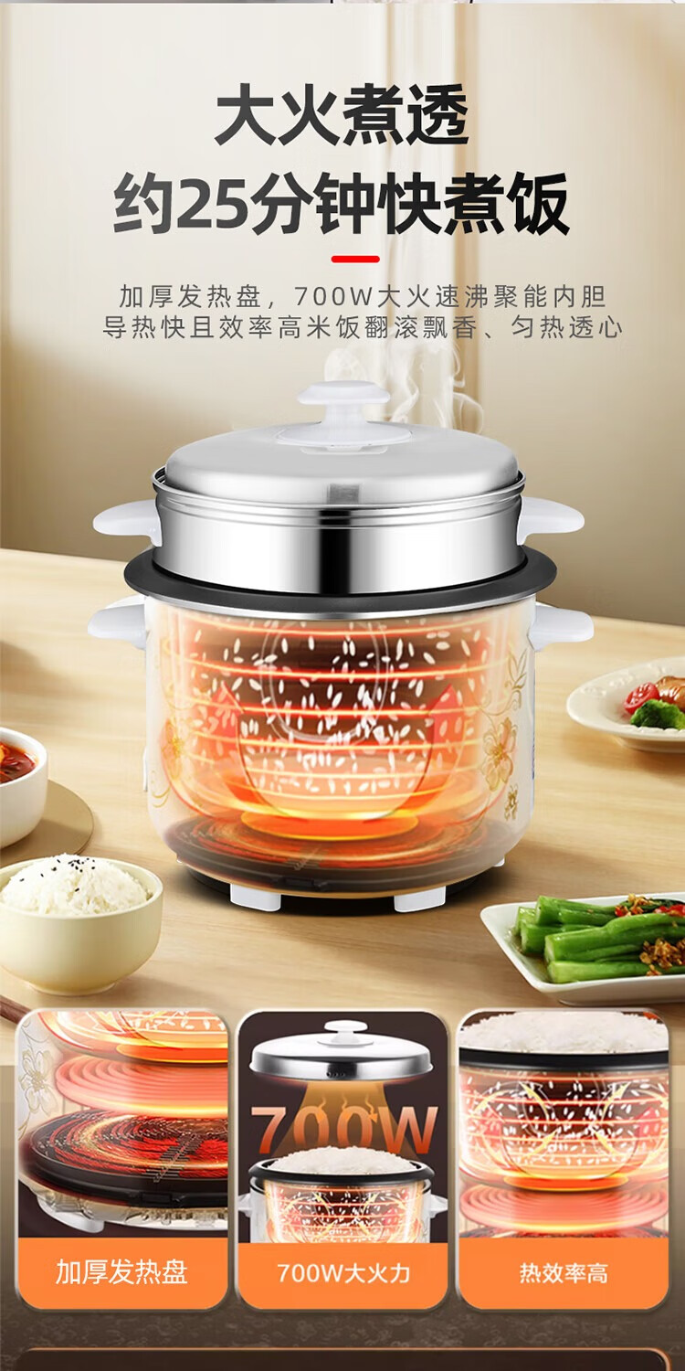美的(Midea)家用电饭煲电饭锅1-2-3-4人用柴火饭不粘锅 3升4升迷你小型智能微压焖香煮饭小米粥电饭煲蒸煮一体 【25年节能款】微压焖香 3L