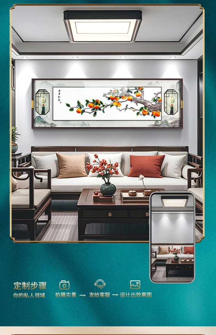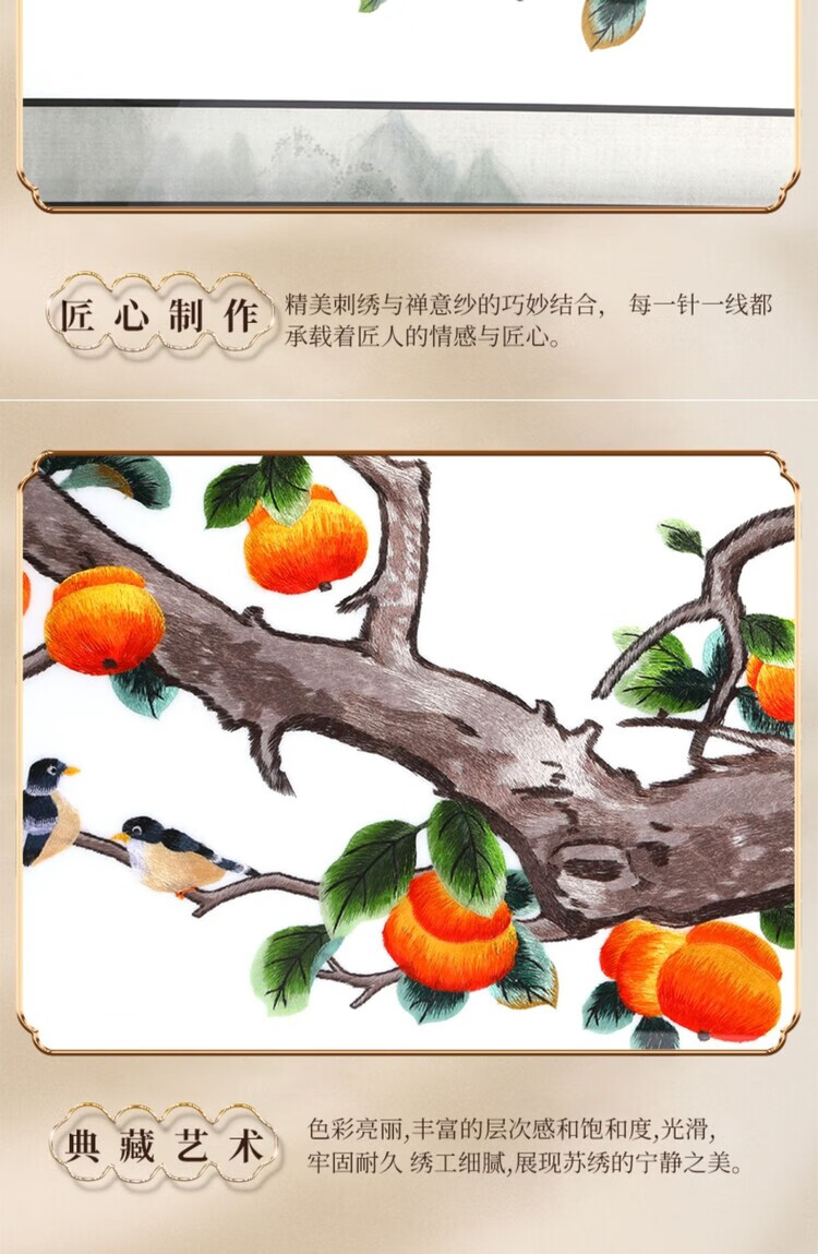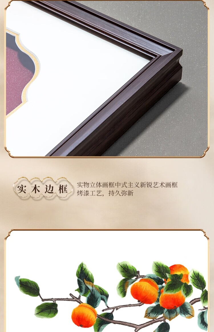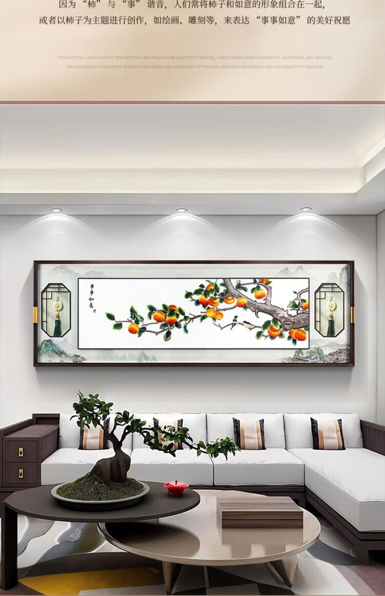 OYKTN高端客厅装饰画柿柿如意沙发背景墙挂画新中式轻奢刺绣成品画 柿柿如意 180*60
