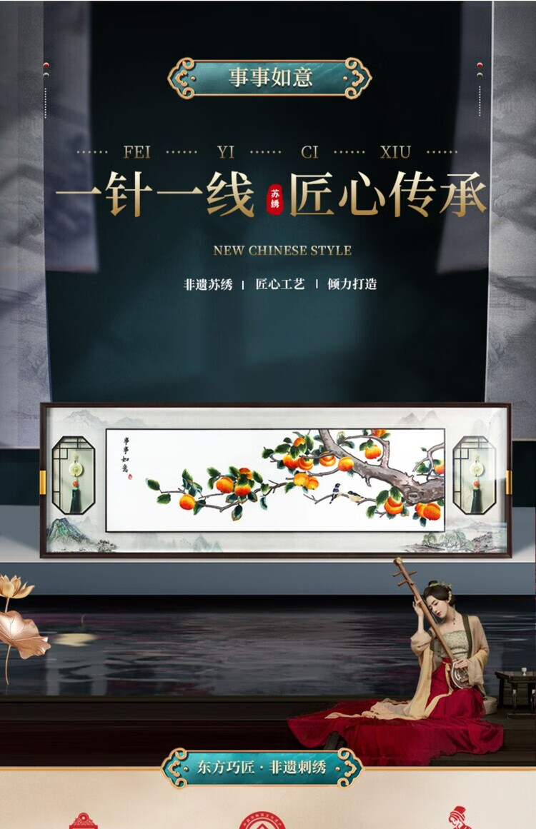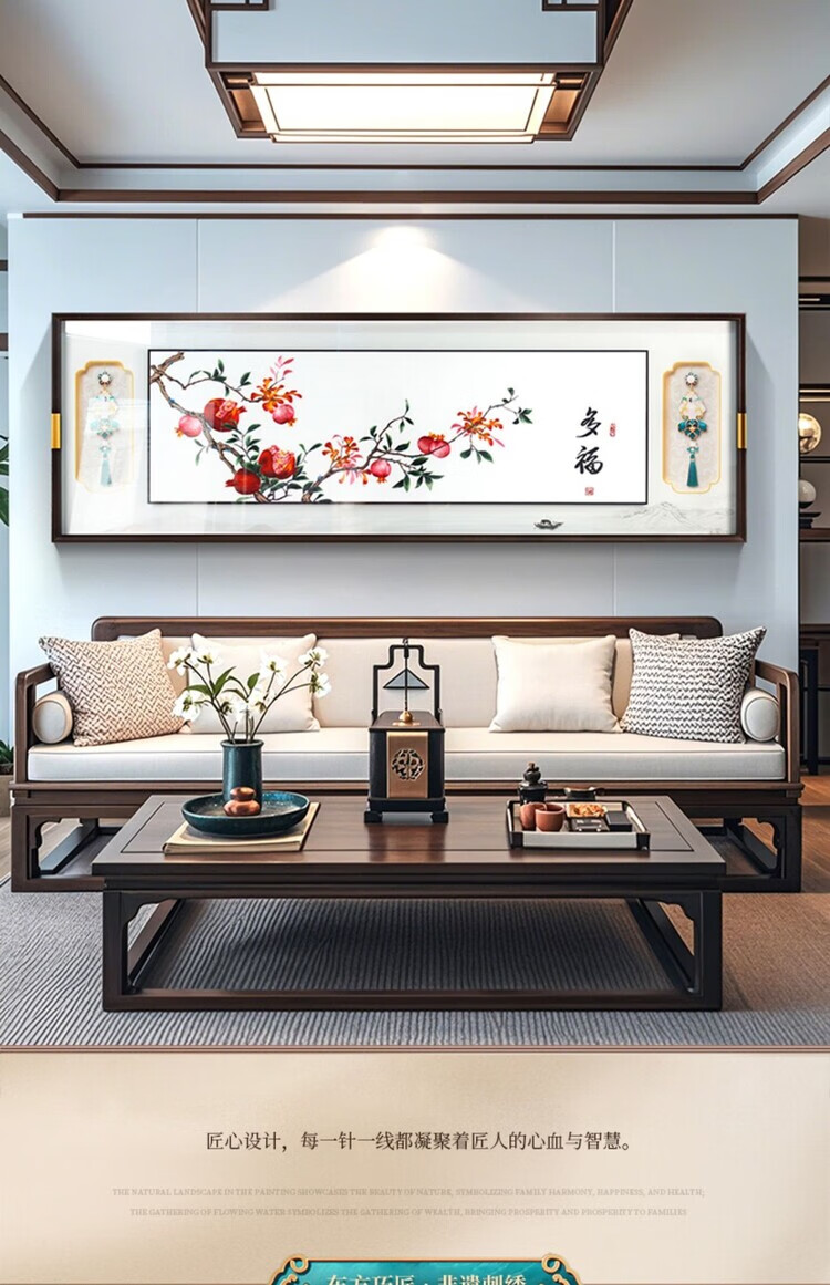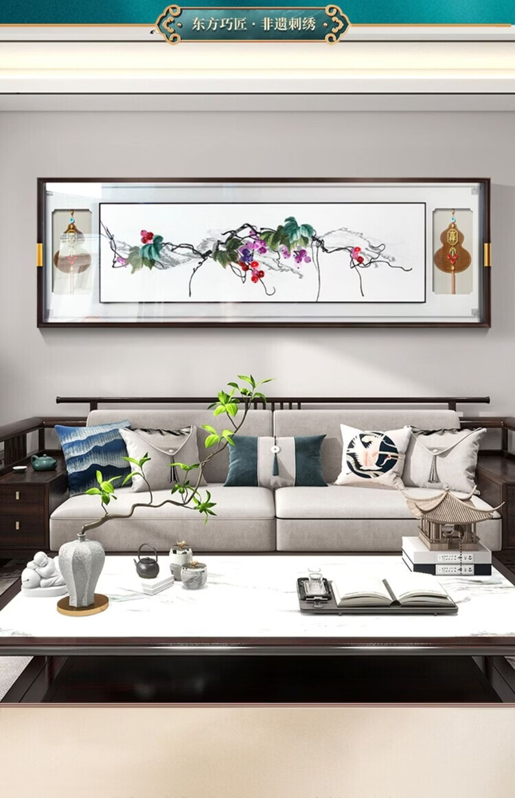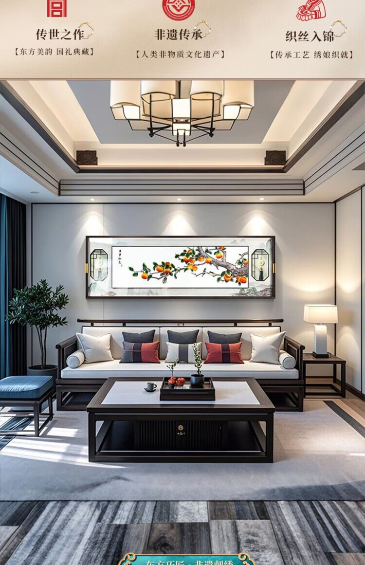 OYKTN高端客厅装饰画柿柿如意沙发背景墙挂画新中式轻奢刺绣成品画 柿柿如意 180*60