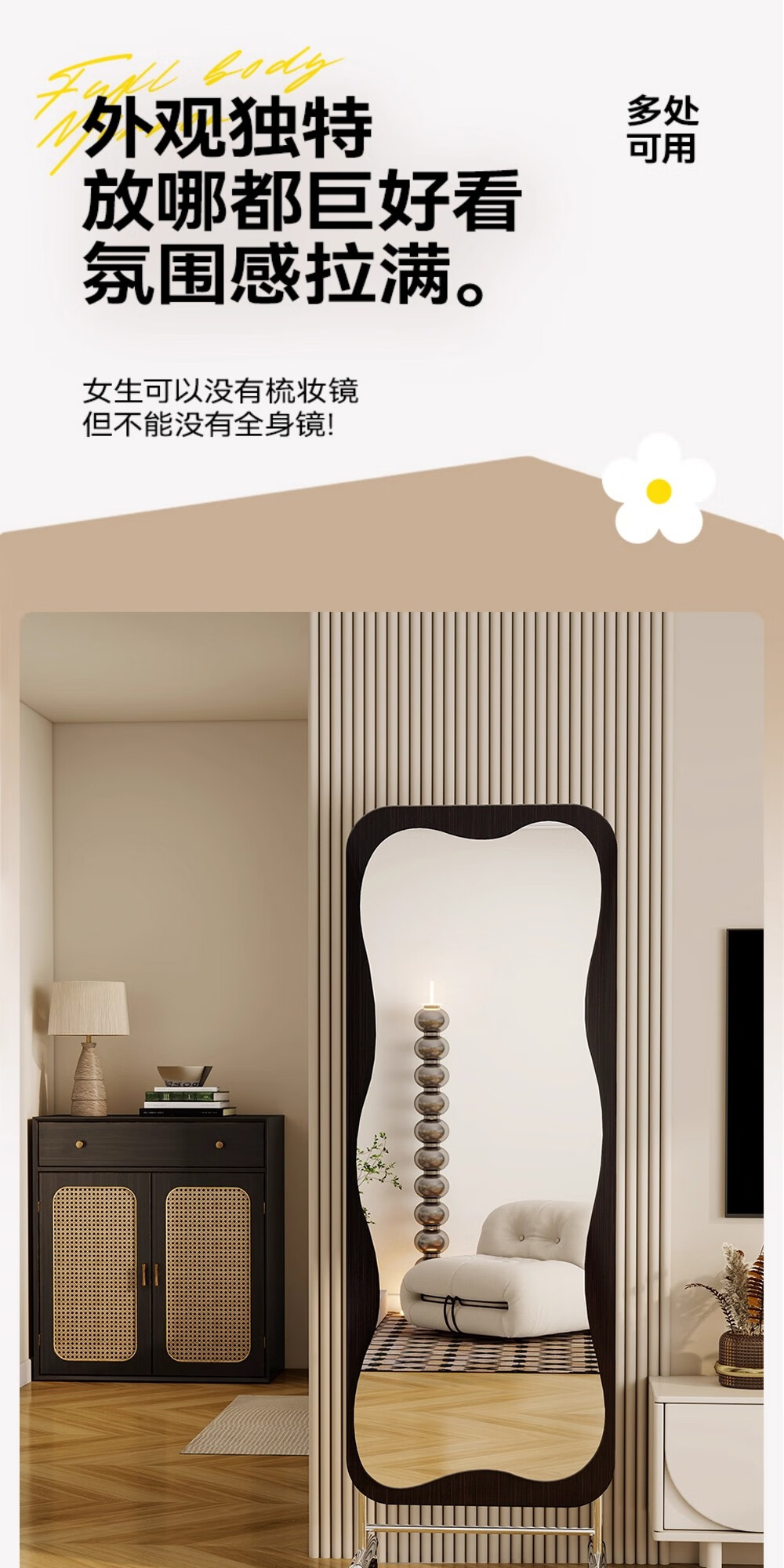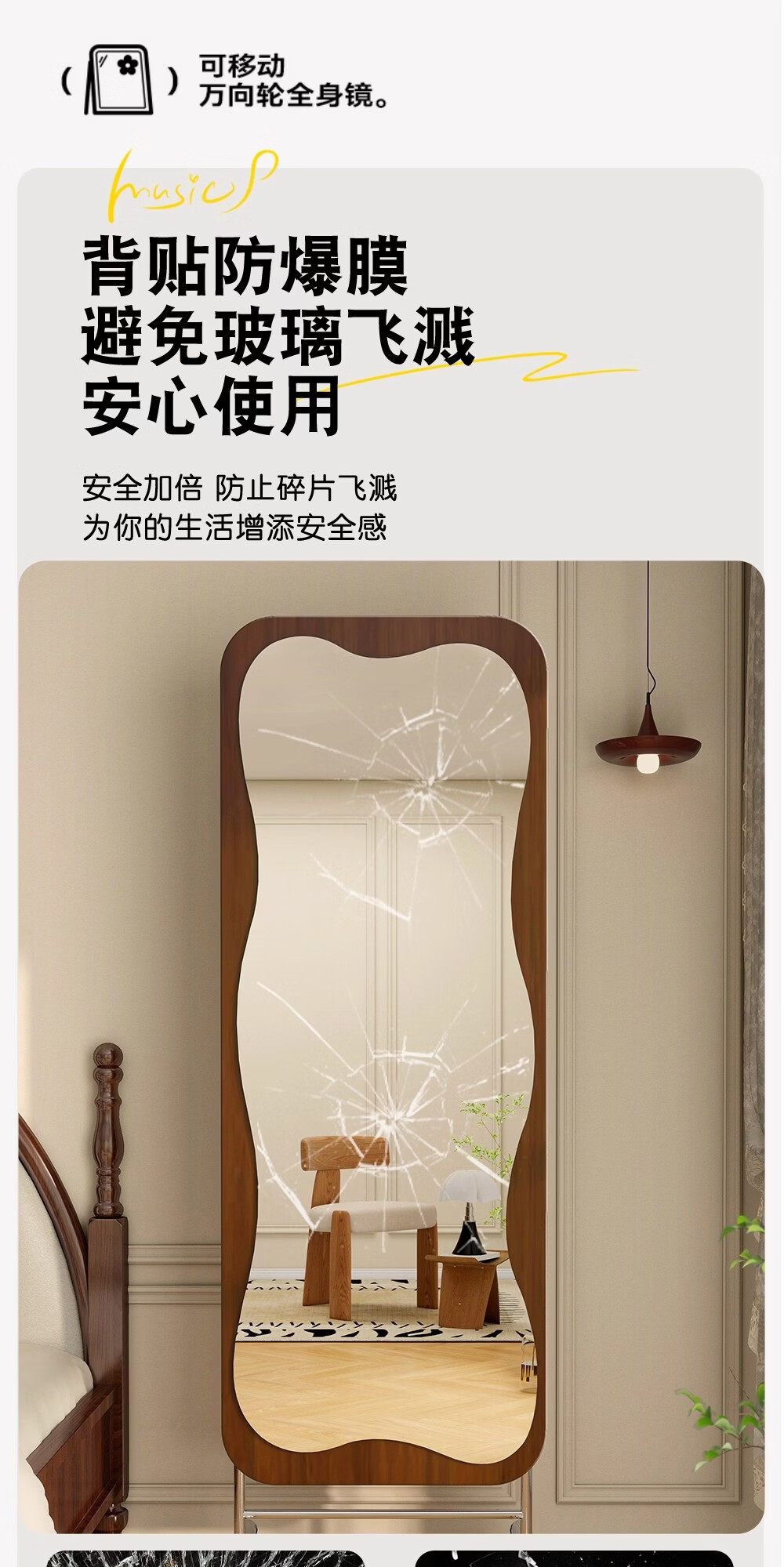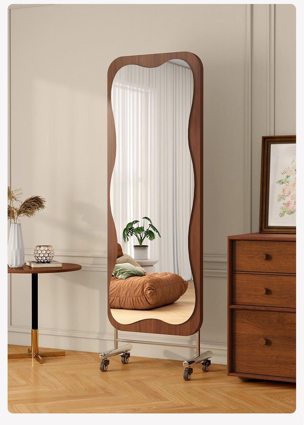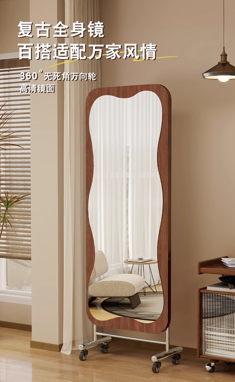 美竹乐可移动全身镜落地镜家用卧室中古风穿衣镜客厅不锈钢滑轮试衣镜子 新品首发【不锈钢滑轮】胡桃色50*150