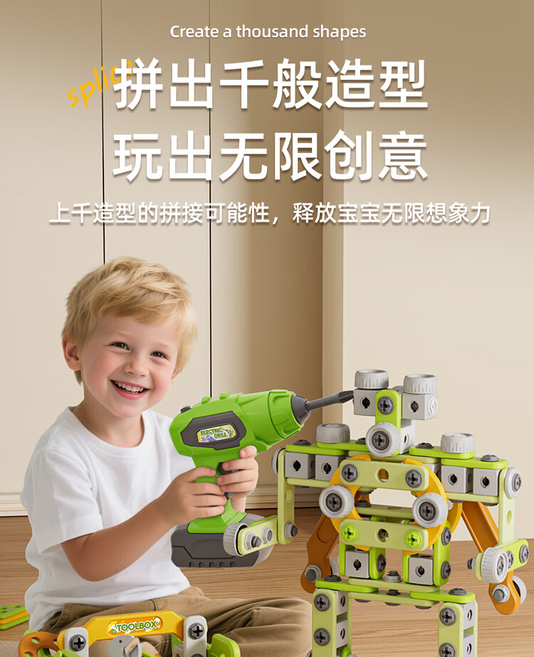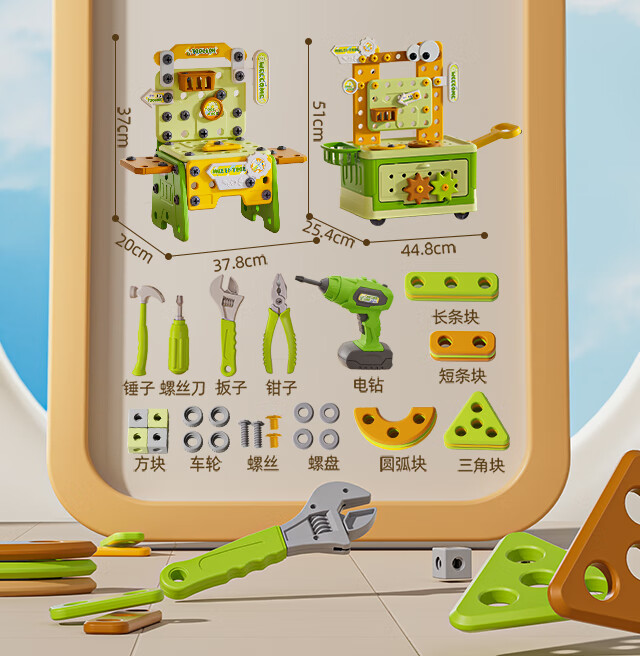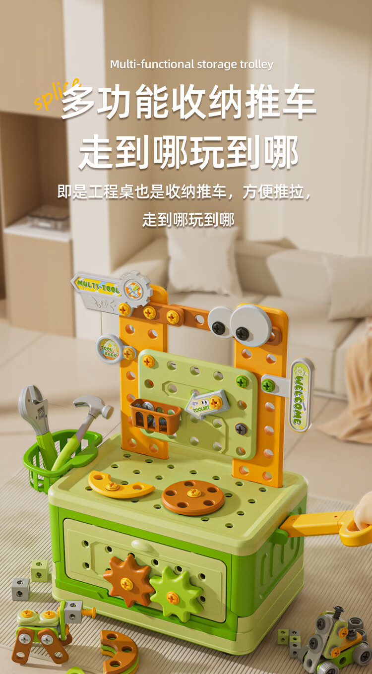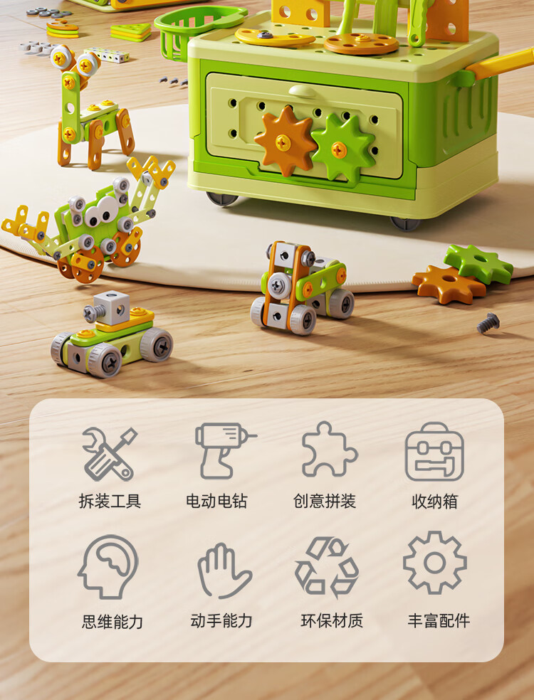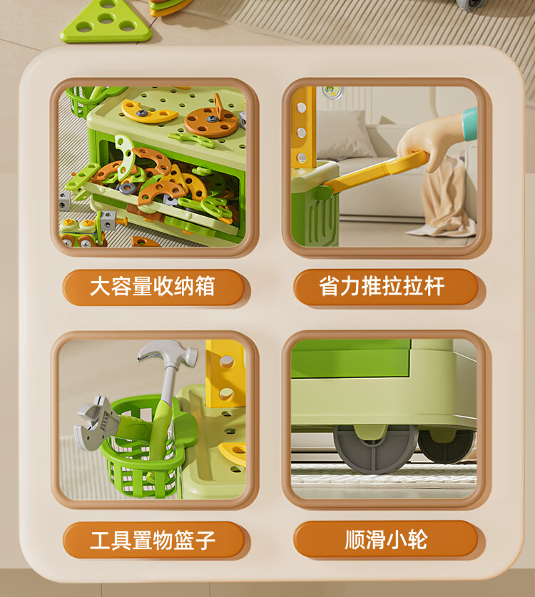 班迪萌(BANDIMENG)儿童男孩玩具3-6岁拧螺丝电钻工具箱过家家启蒙拼装玩具礼物 拆装螺丝手推车218件套