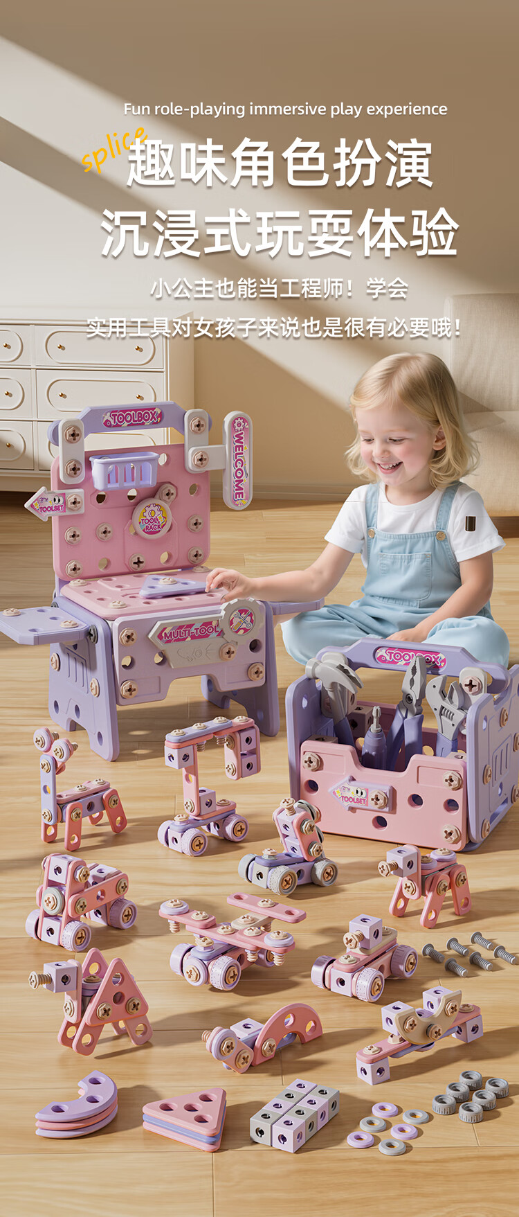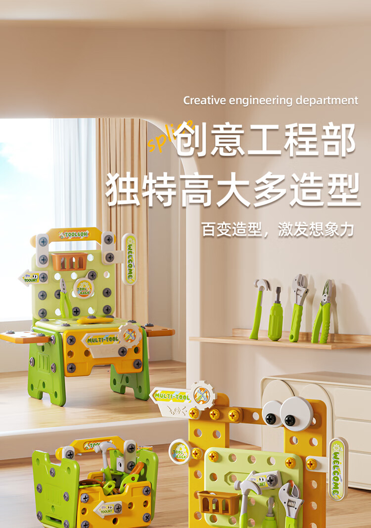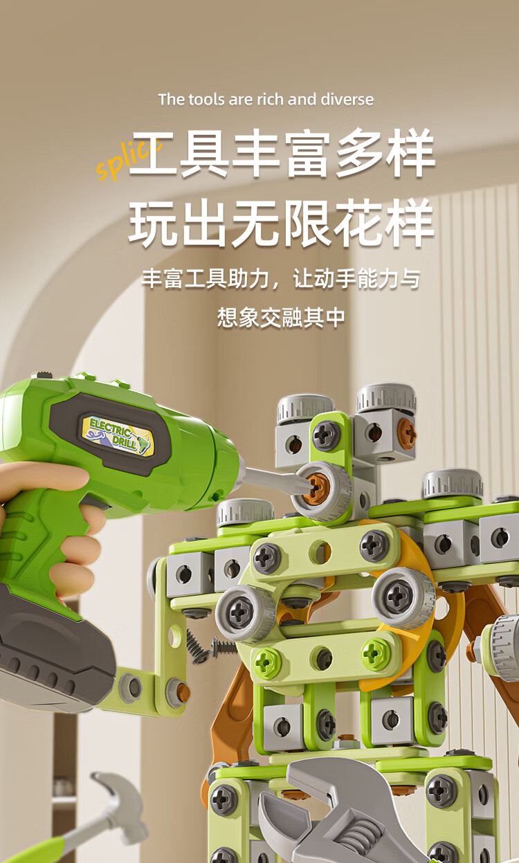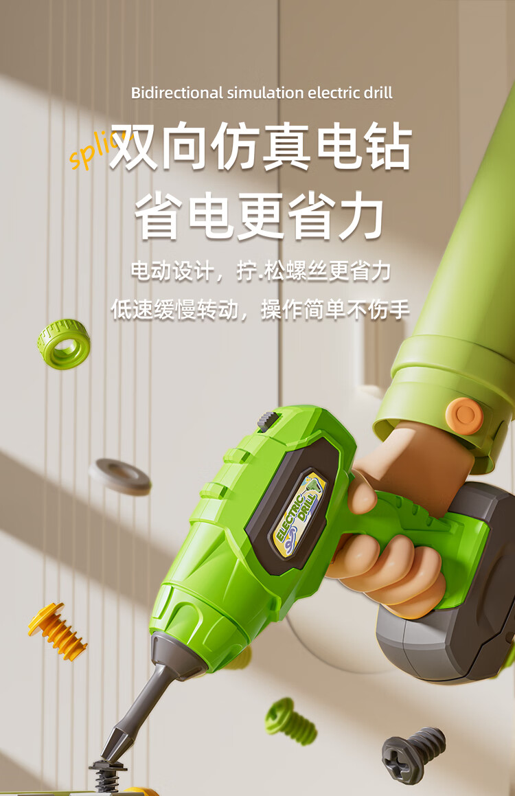 班迪萌(BANDIMENG)儿童男孩玩具3-6岁拧螺丝电钻工具箱过家家启蒙拼装玩具礼物 拆装螺丝手推车218件套