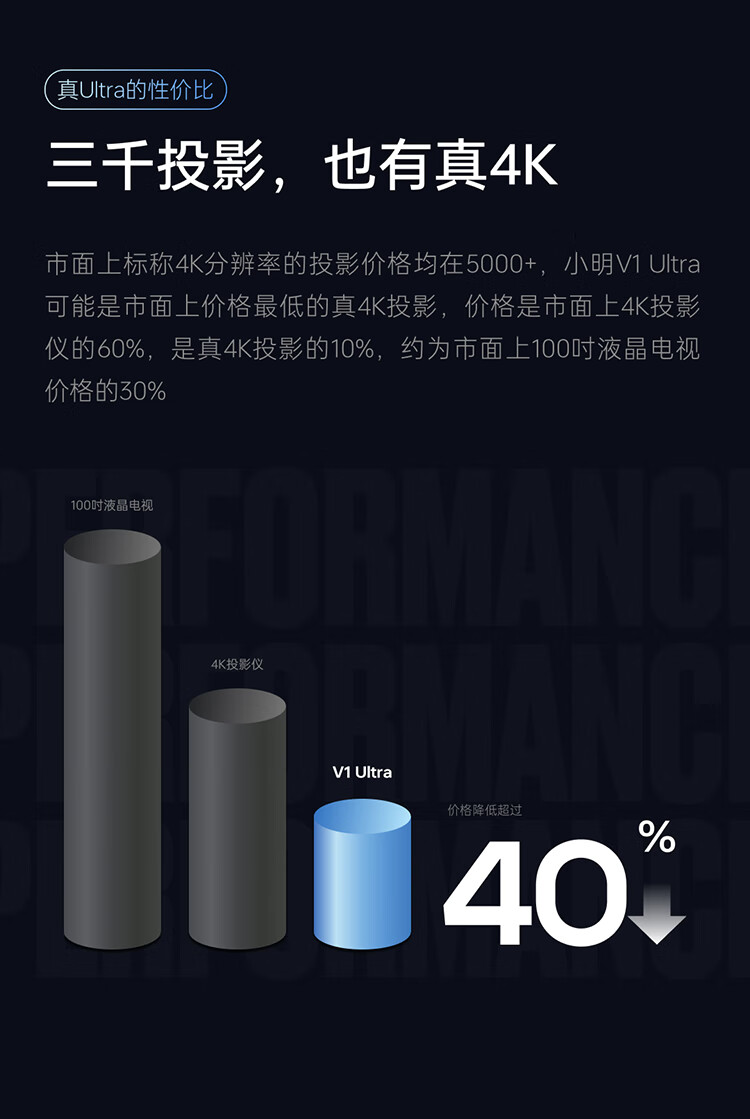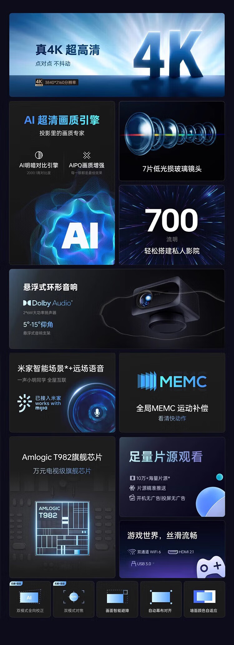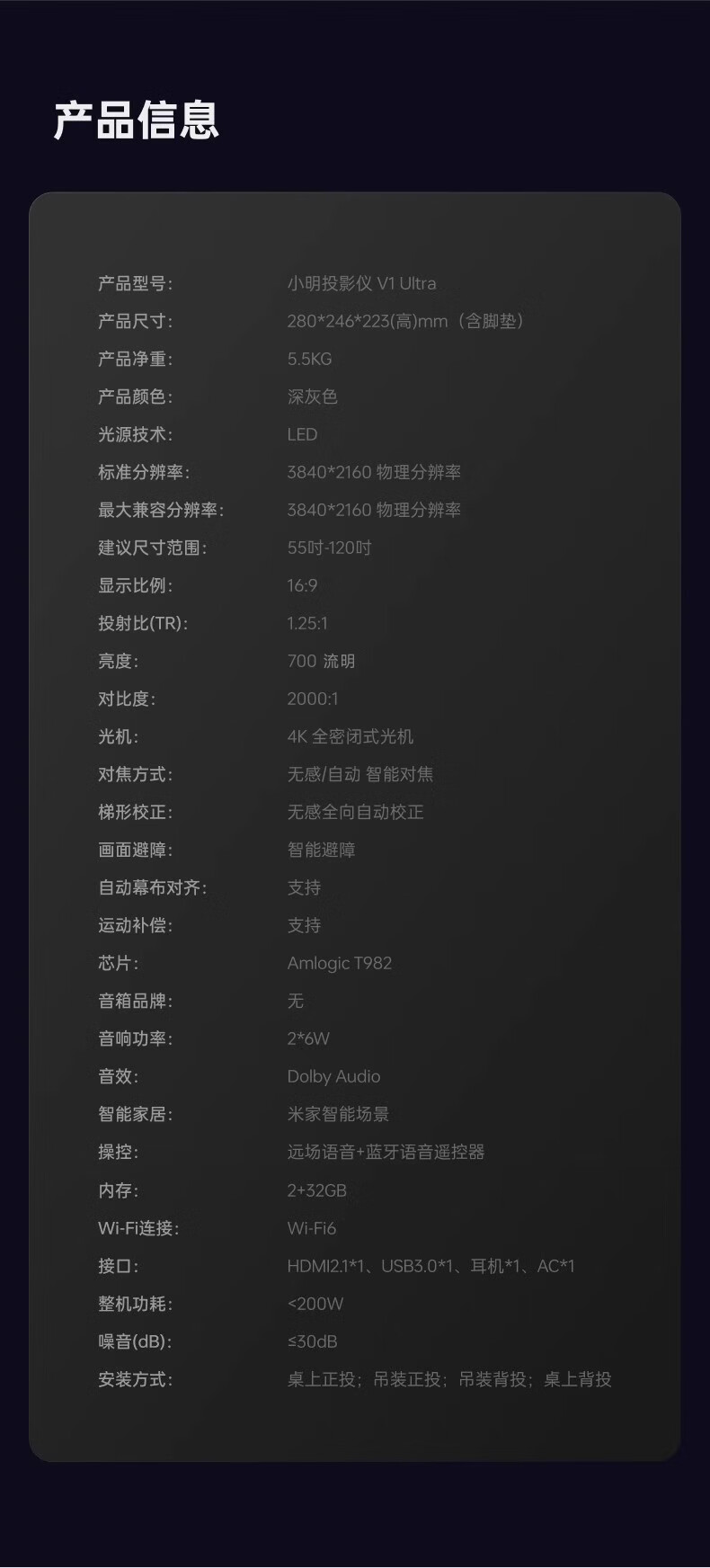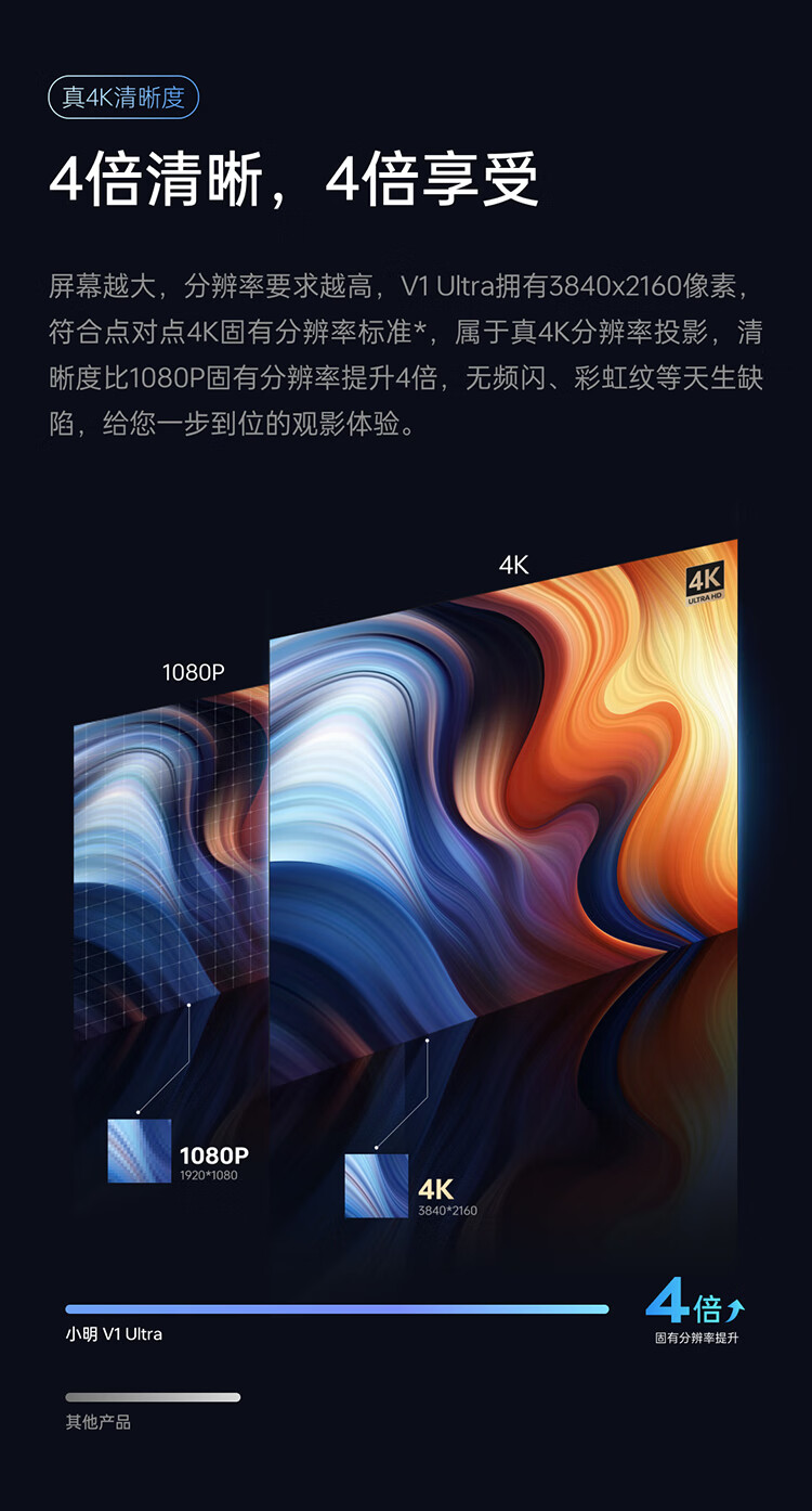 小明 V1 Ultra 4K超高清投影仪家用智能家庭影院游戏投影机(4K分辨率 MEMC运动补偿 全自动校正)