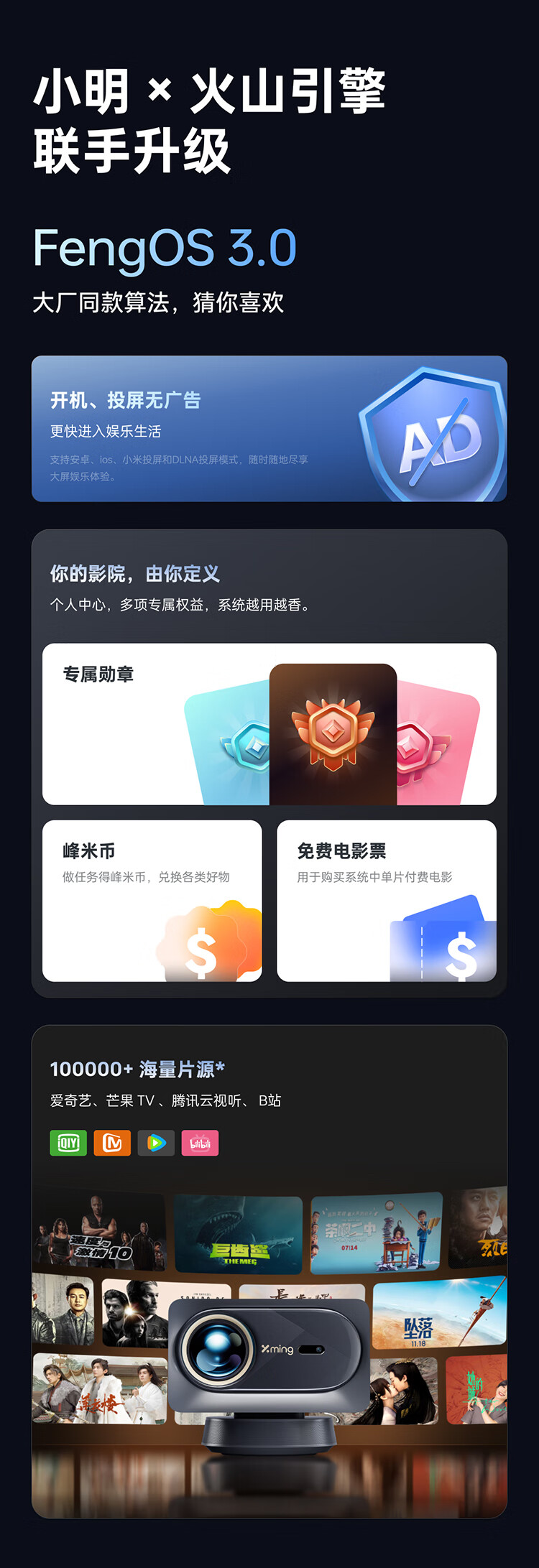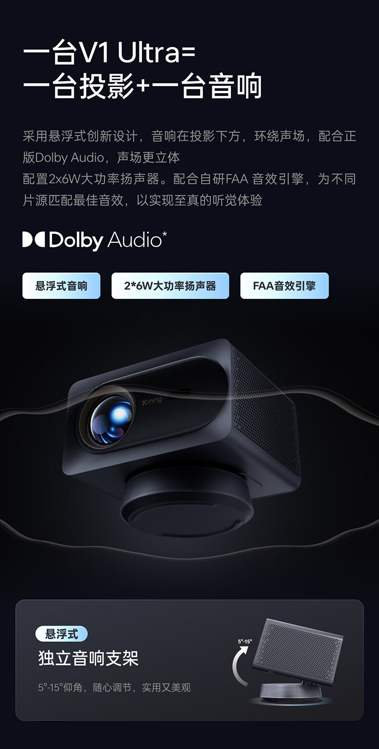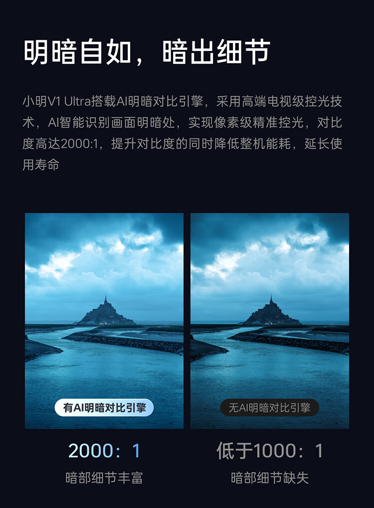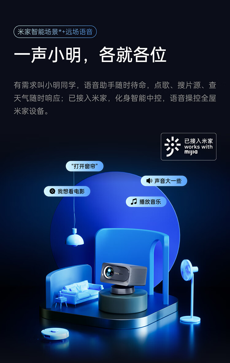 小明 V1 Ultra 4K超高清投影仪家用智能家庭影院游戏投影机(4K分辨率 MEMC运动补偿 全自动校正)