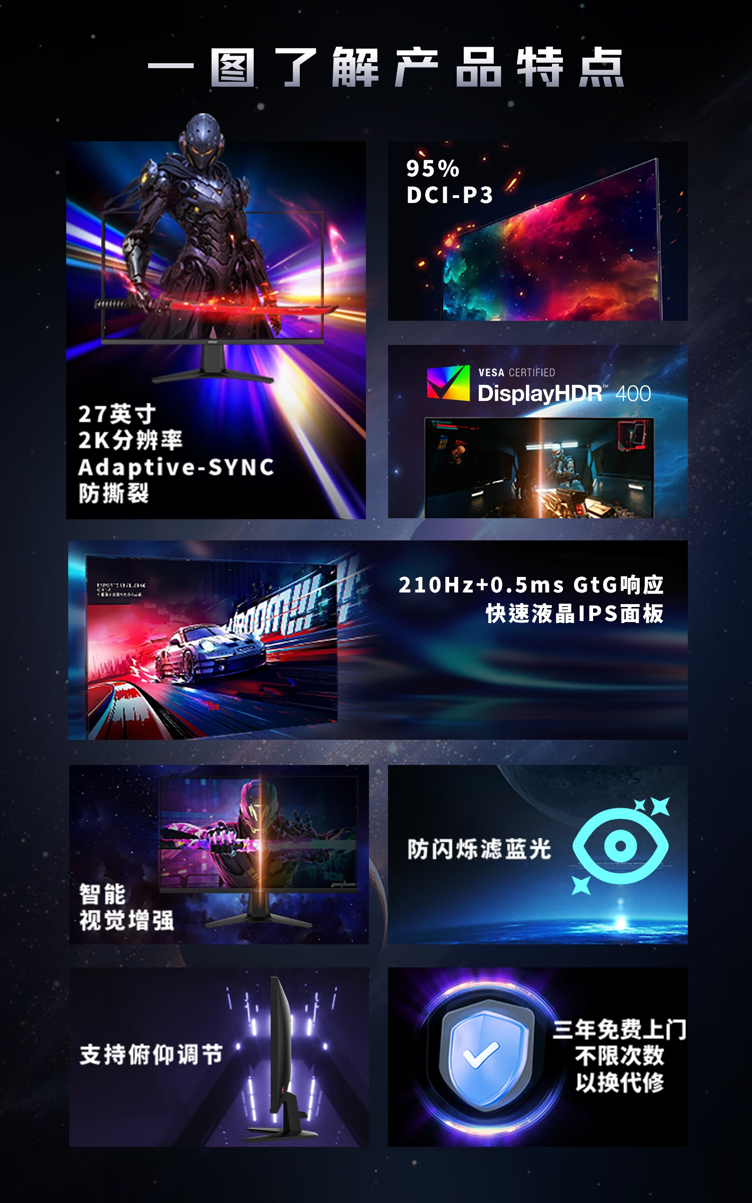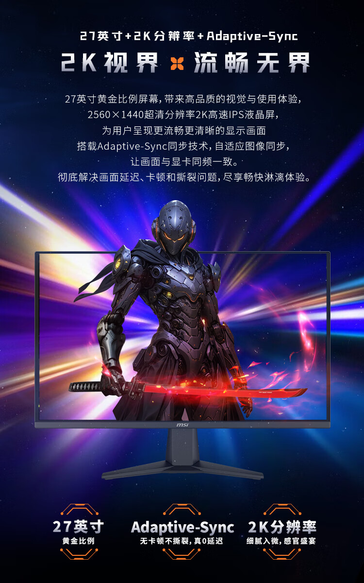 微星(MSI)27英寸2K200hz HDR400 快速IPS 小金刚超频210hz三角洲游戏电竞电脑显示器屏MAG 275QF E21黑刃E21