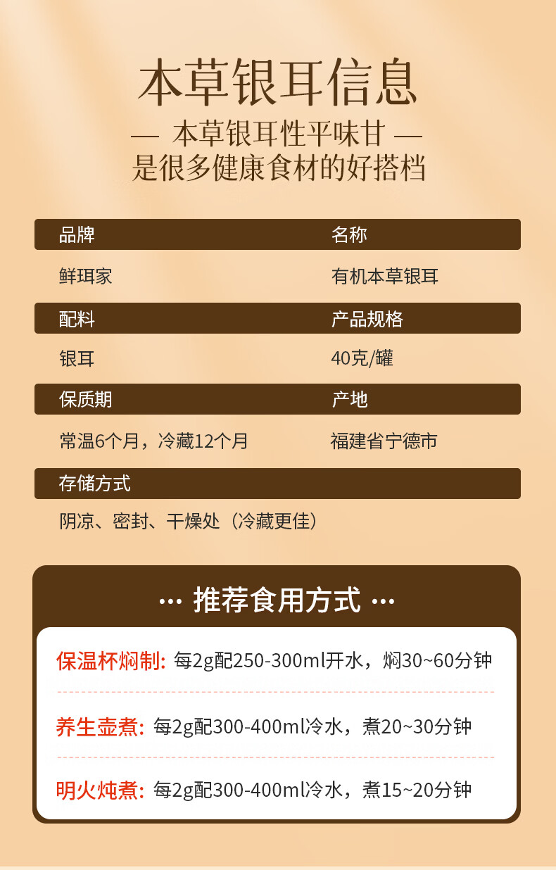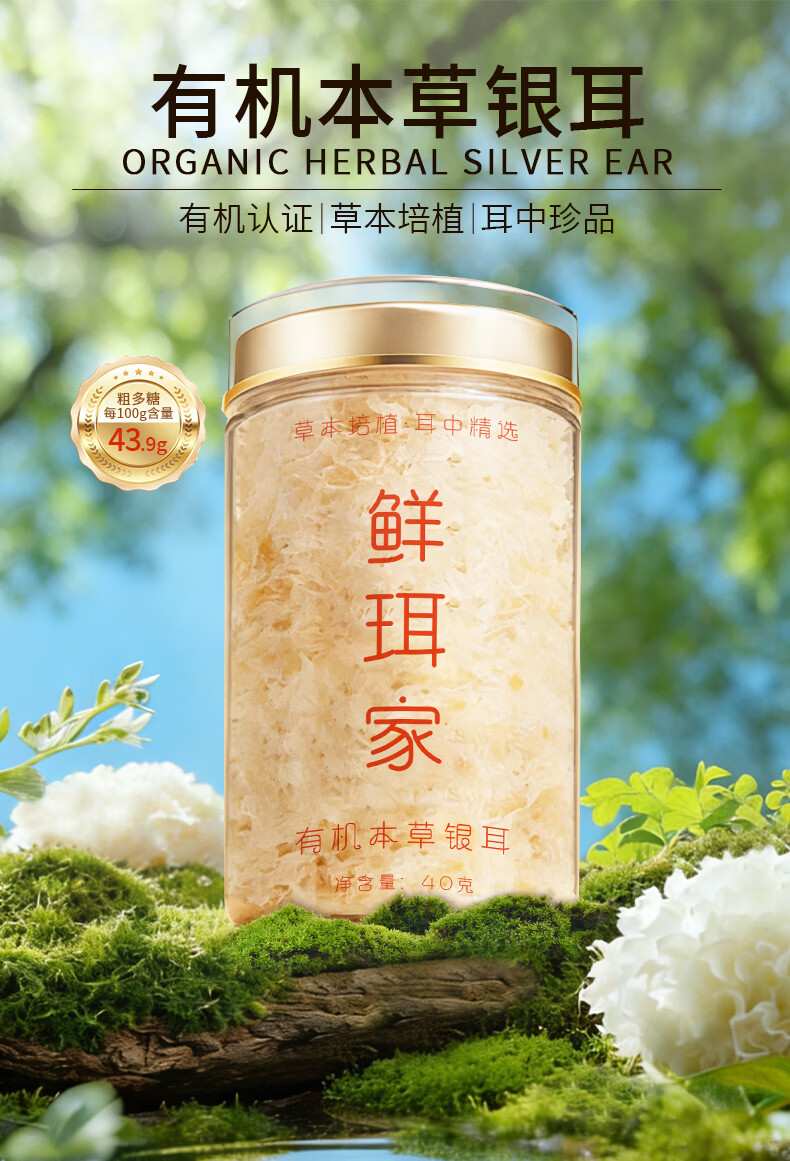 鲜珥家有机本草银耳金罐免洗免煮焖泡即食银耳羹古田雪糯银耳节日礼物 有机本草银耳40g*1罐装