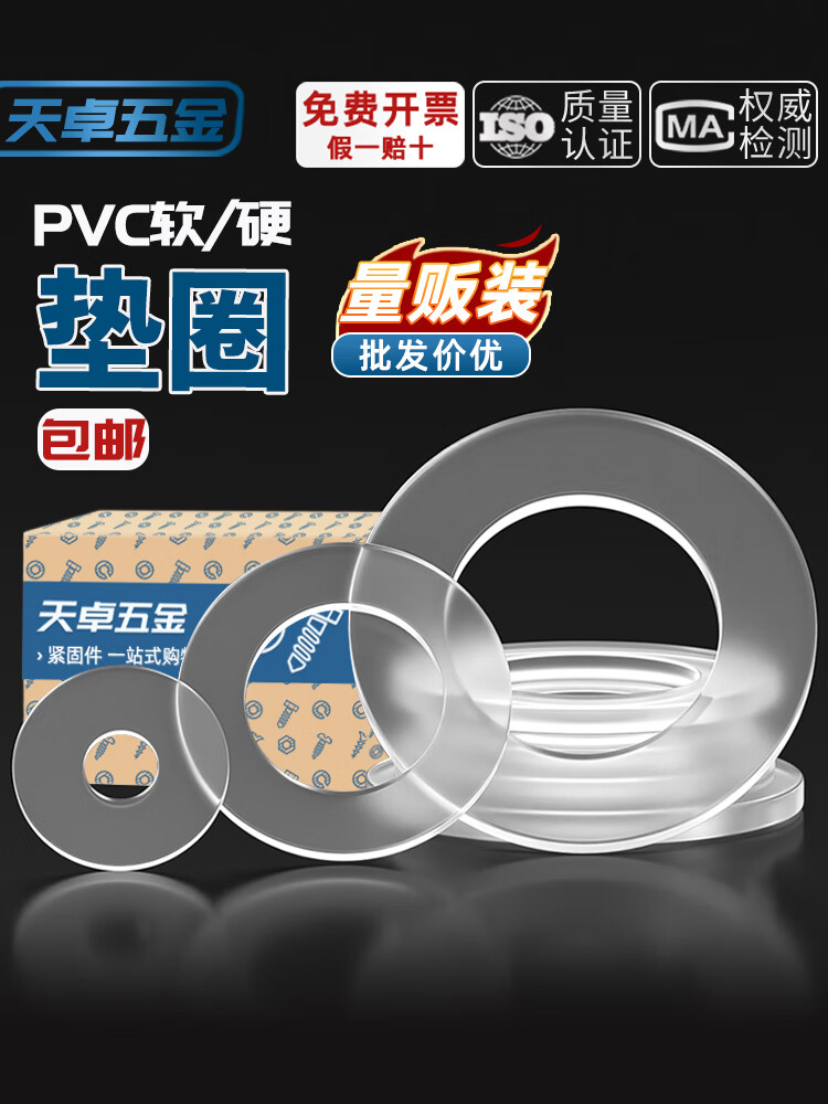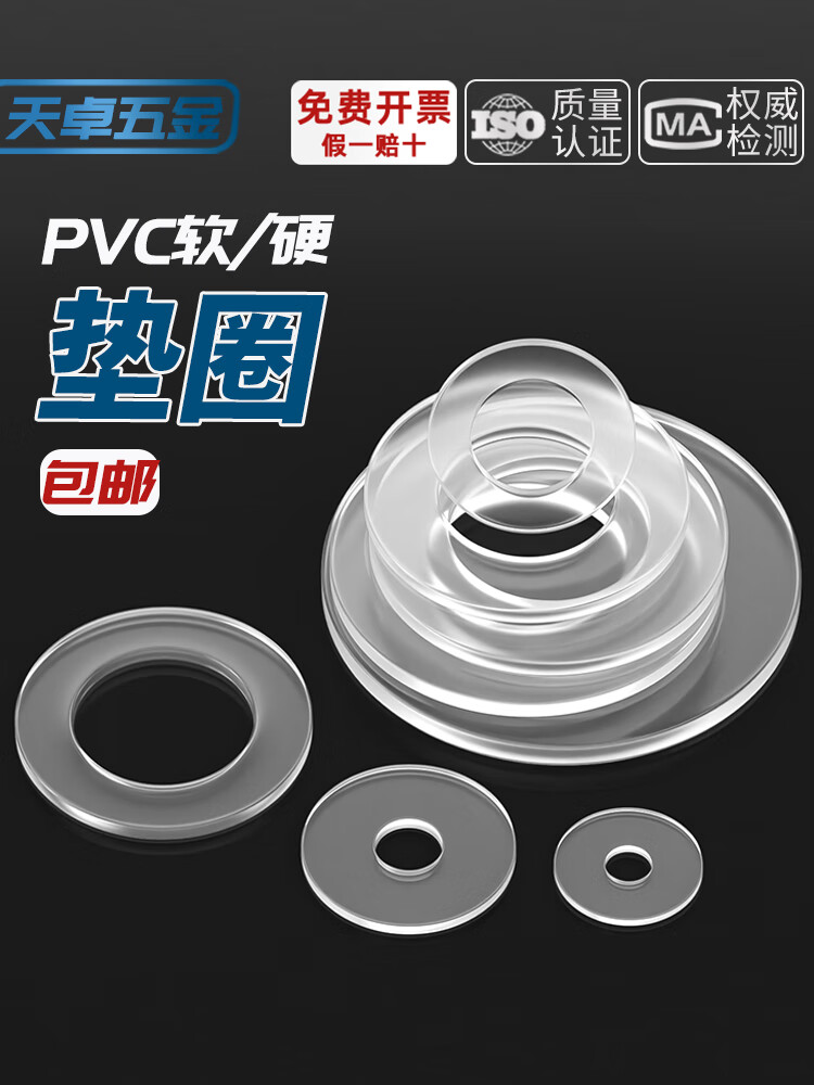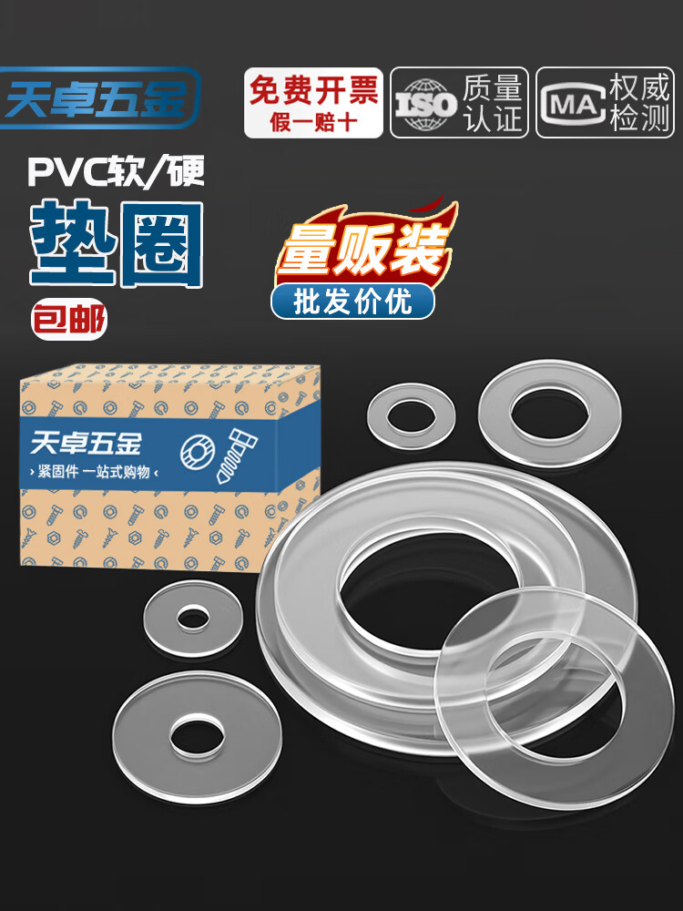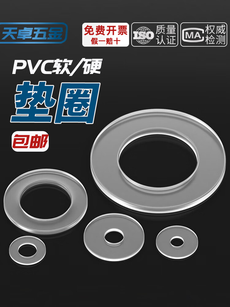 天卓五金耐高温PVC透明软/硬垫片绝缘塑胶垫圈避震防漏密封圆形胶平垫大全 M4*10*0.5【500个】硬
