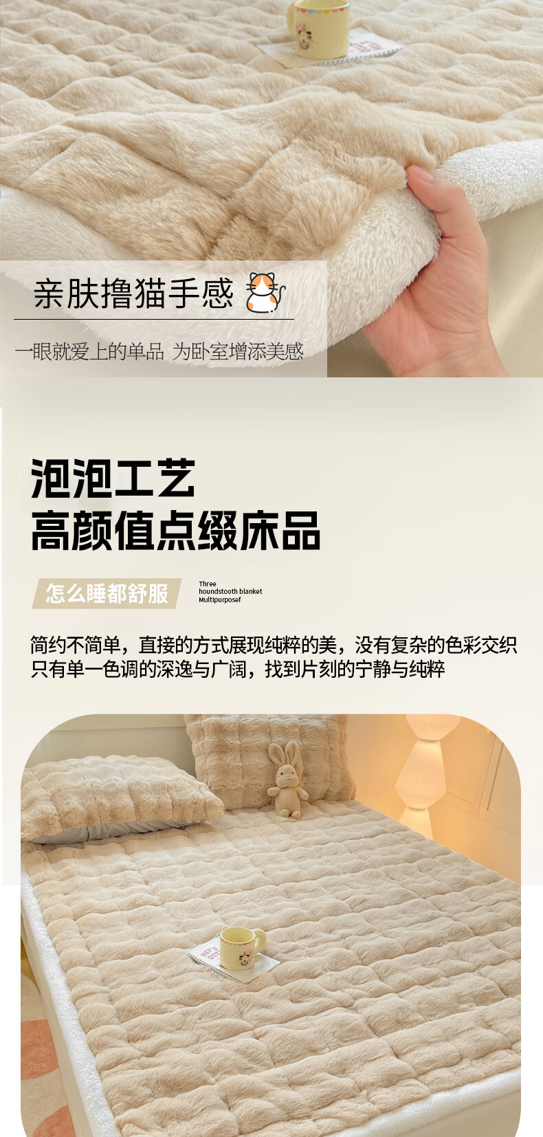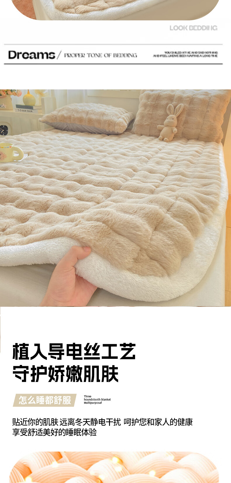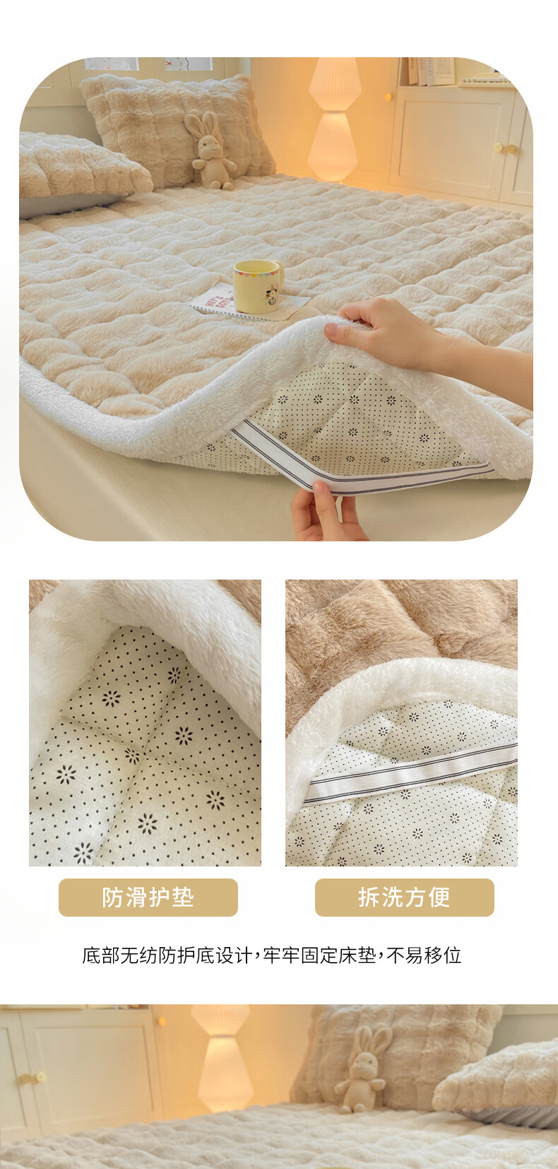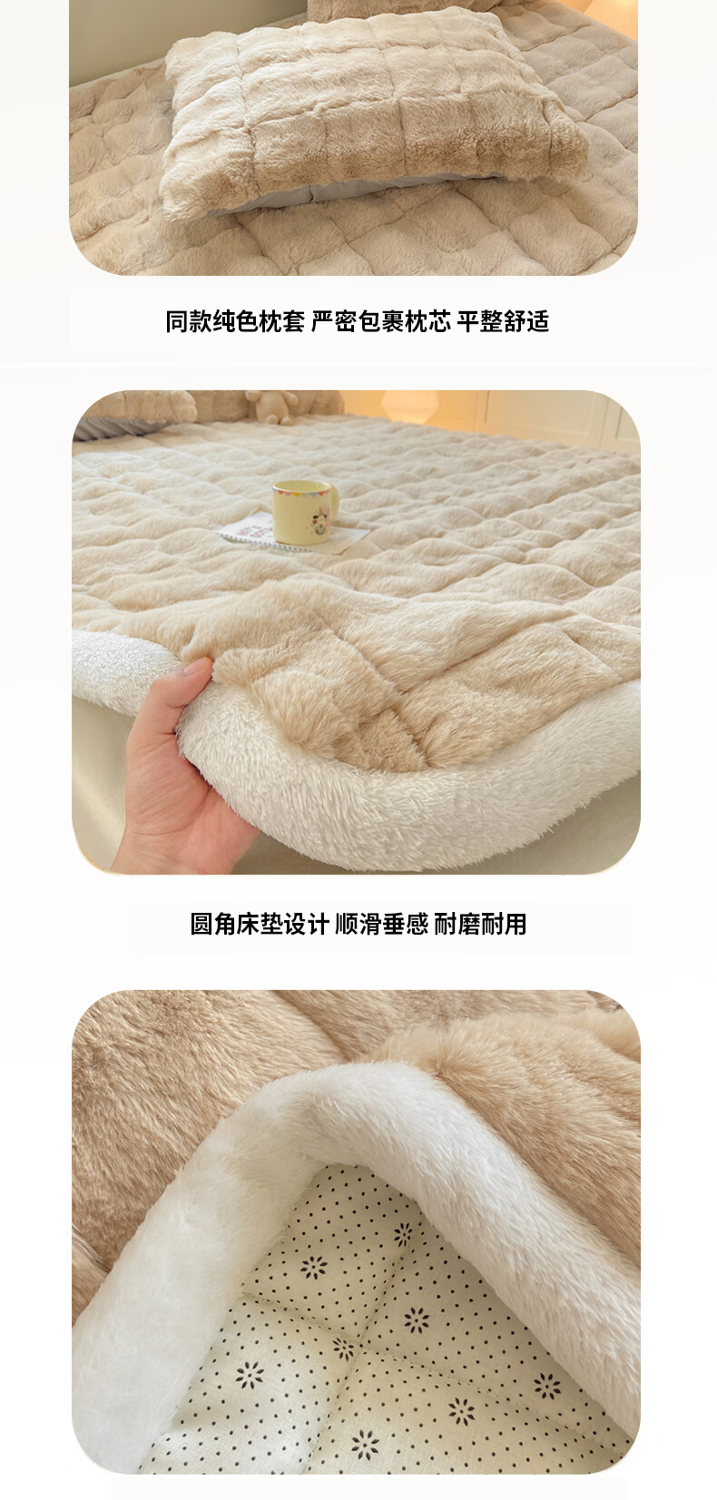 VJE冬季兔毛绒加厚床垫盖被学生宿舍单人珊瑚法兰牛奶绒铺底软褥子 咖色【绒毛加密加厚 锁温保暖】 单床褥150*200cm【适合1.5m床】