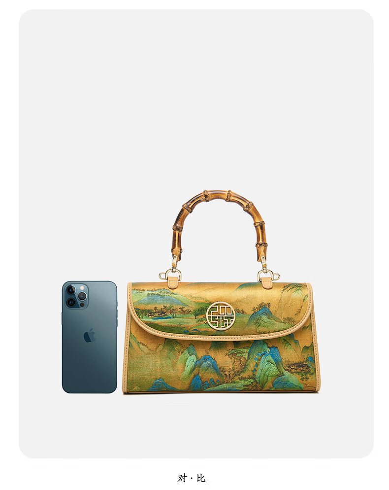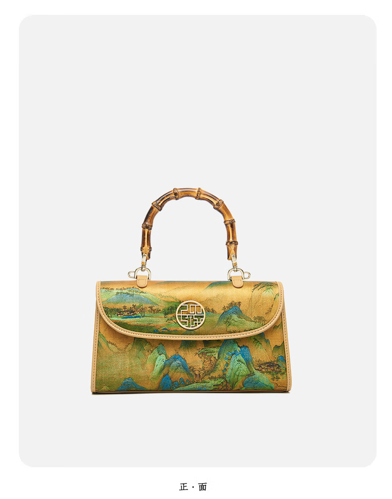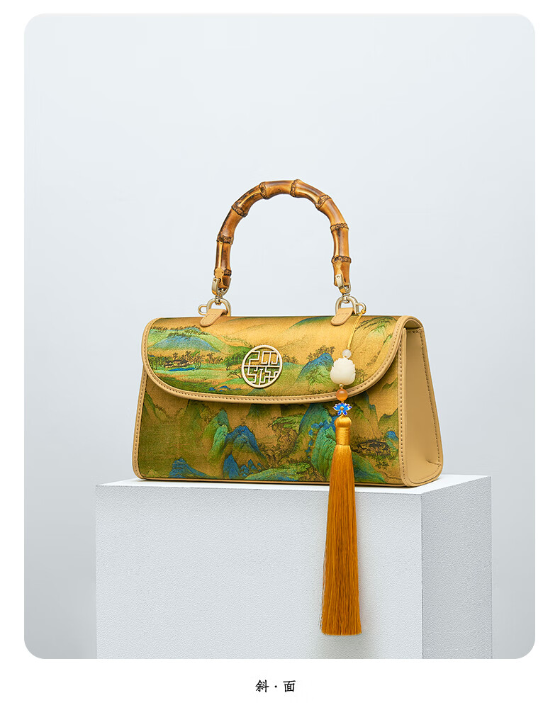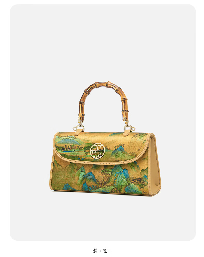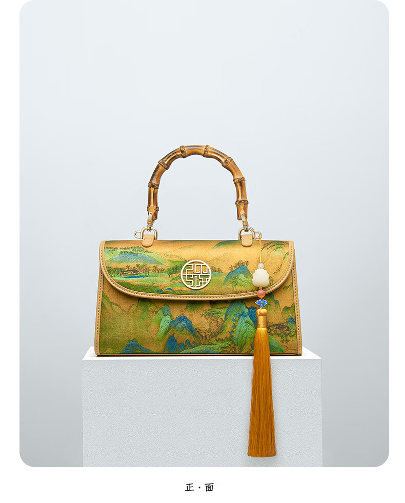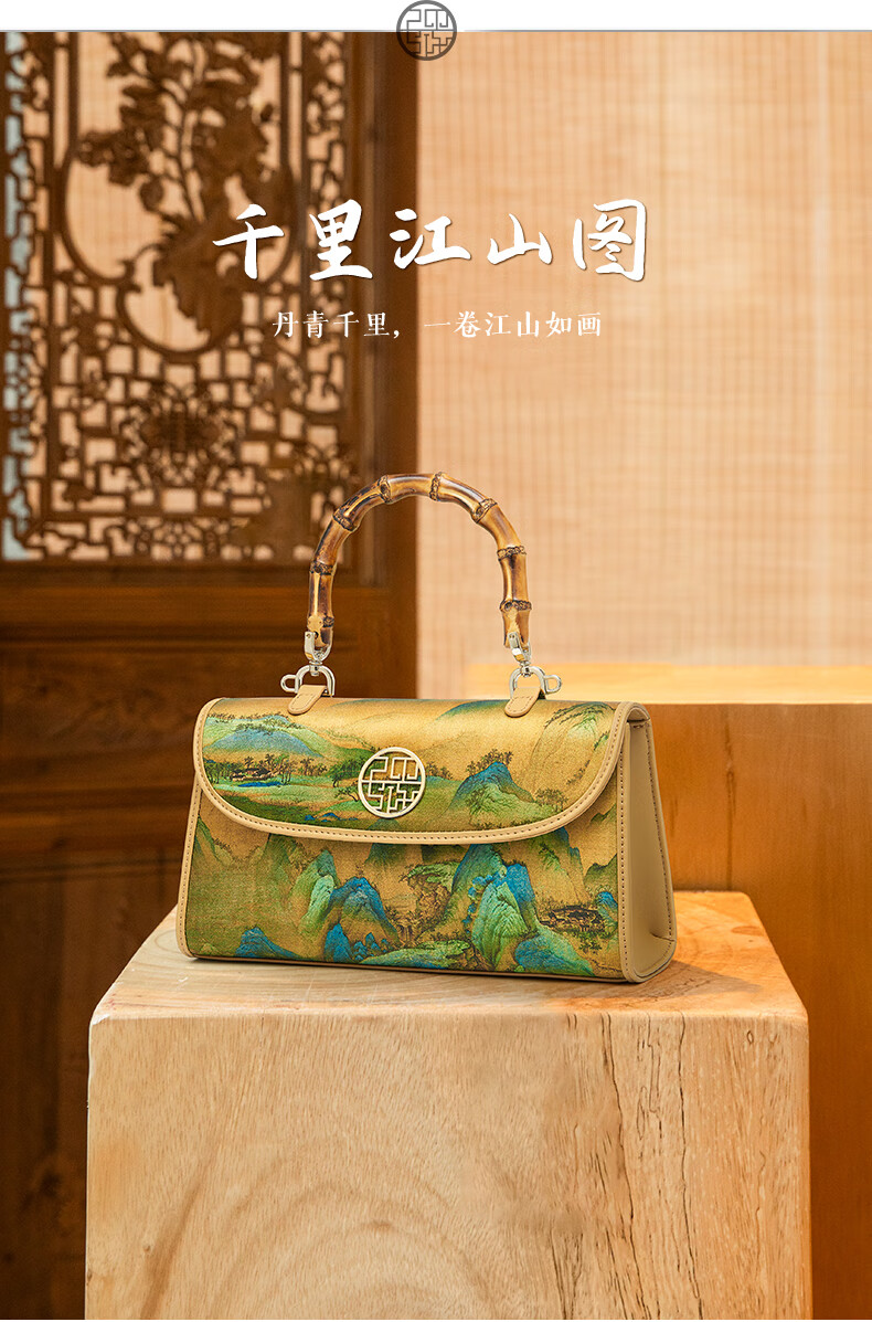 PmSix印花女包送生日礼物妈妈包中国风旗袍包复古竹节包布包大气手提包 浅紫色-桑蚕丝印花-送礼盒
