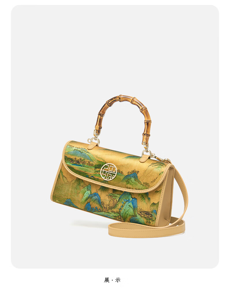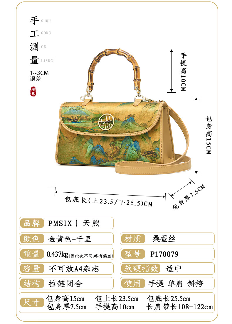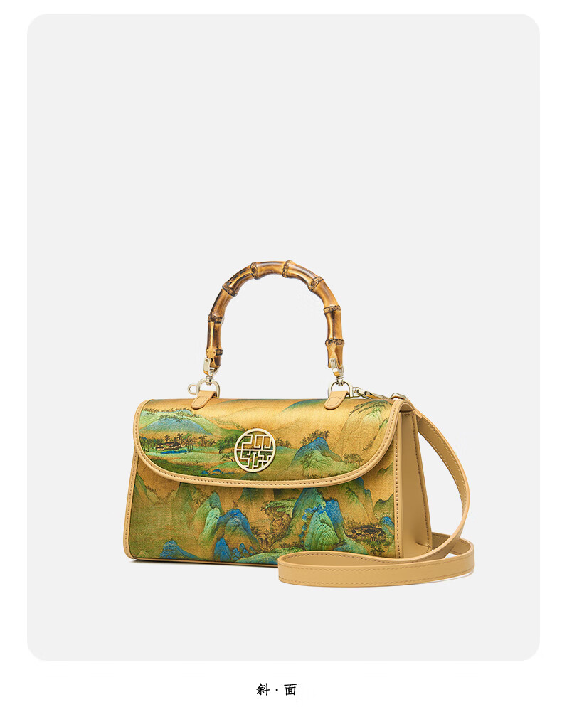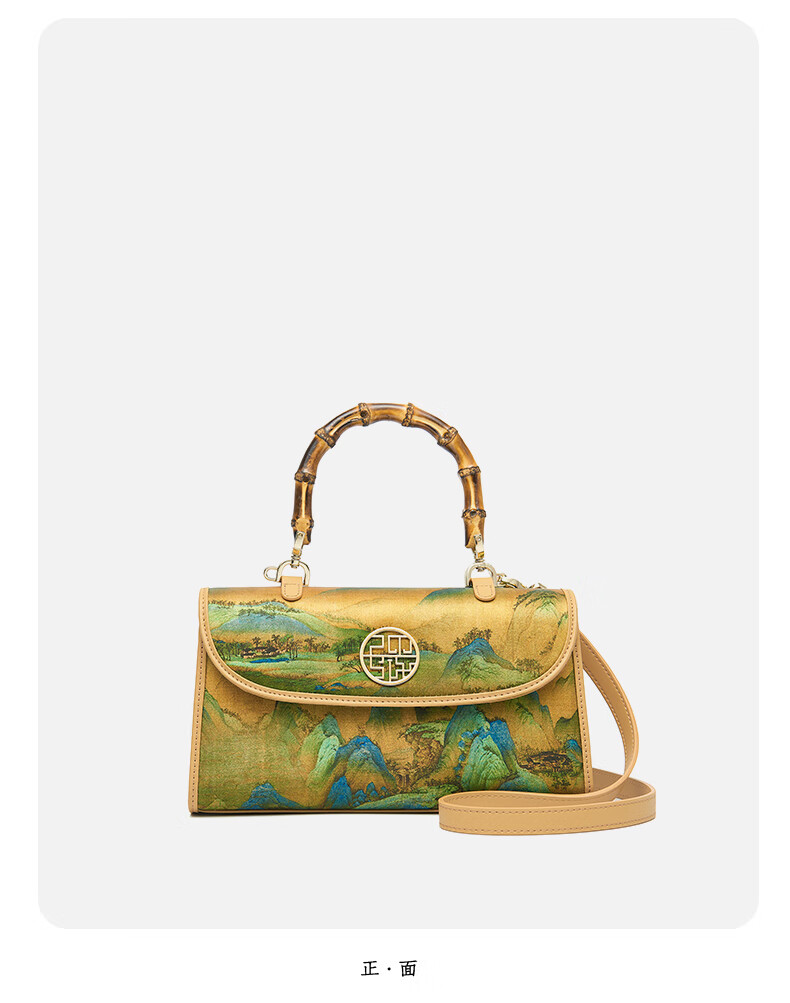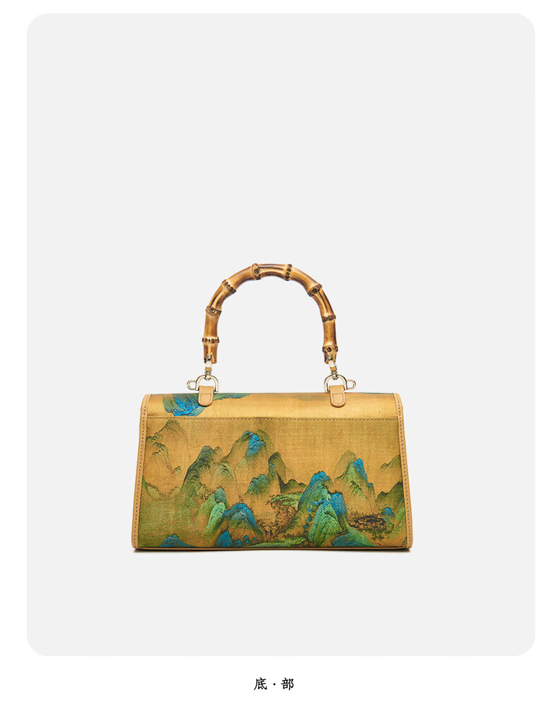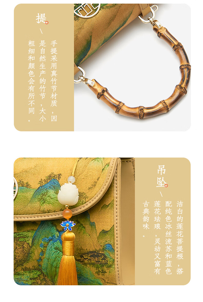 PmSix印花女包送生日礼物妈妈包中国风旗袍包复古竹节包布包大气手提包 浅紫色-桑蚕丝印花-送礼盒