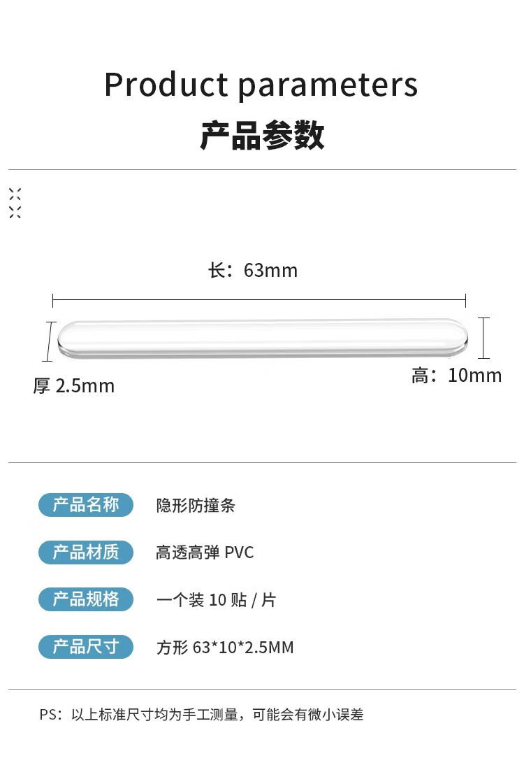 【优选】防撞贴门把手防撞条硅胶防撞垫冰箱门后柜门墙面防碰撞静 长款加厚150*15*2.5MM【4条装】