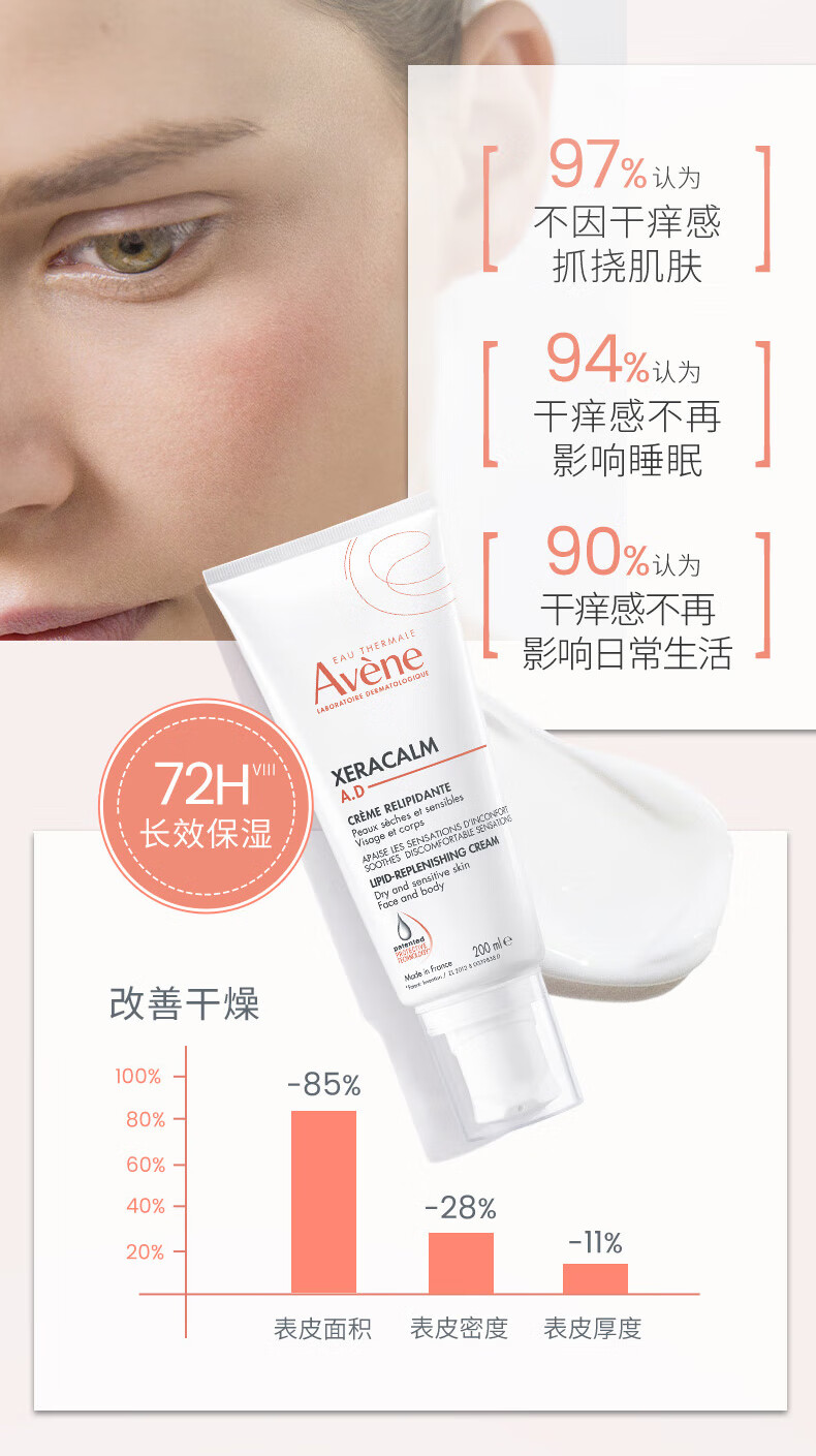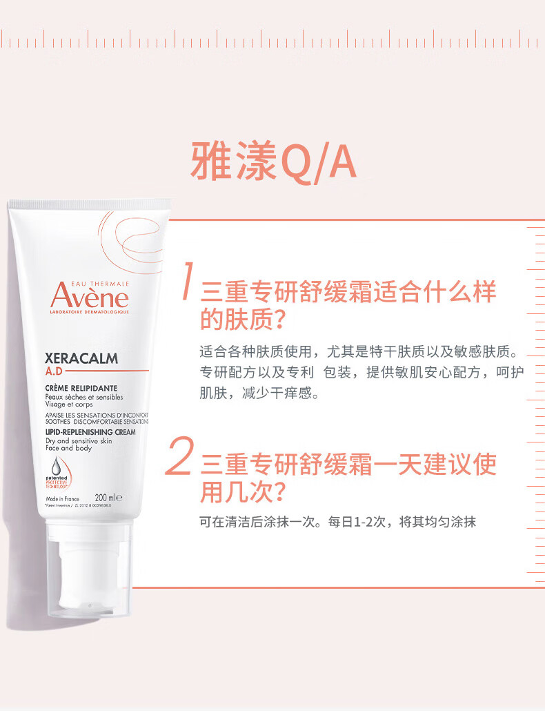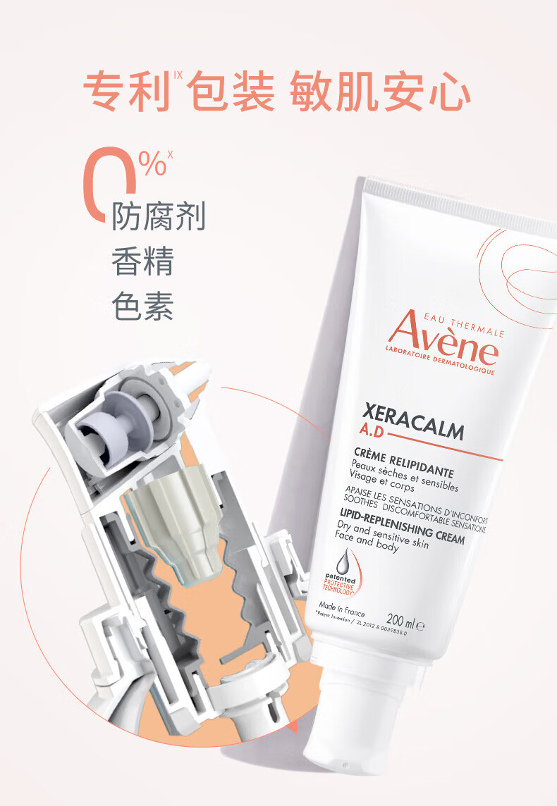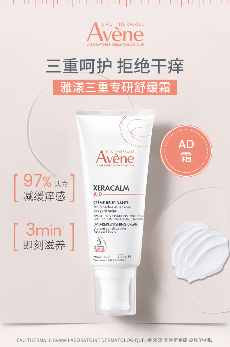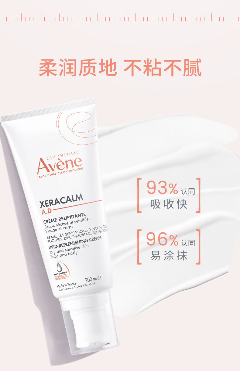 雅漾(Avene)三重专研舒缓霜200ml AD霜保湿滋润舒缓敏肌身体乳润肤乳大白罐