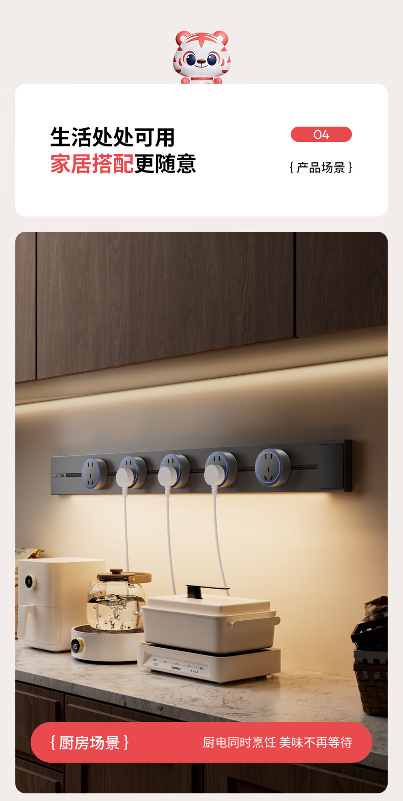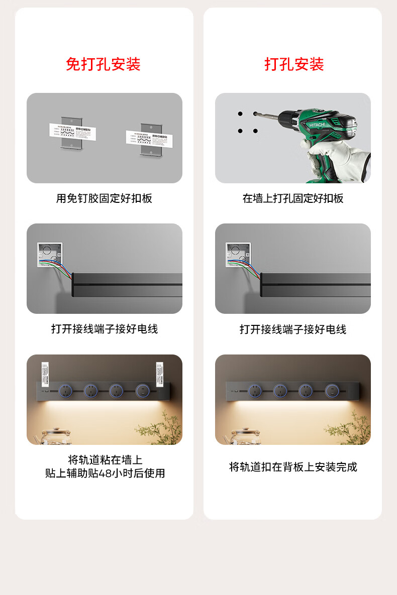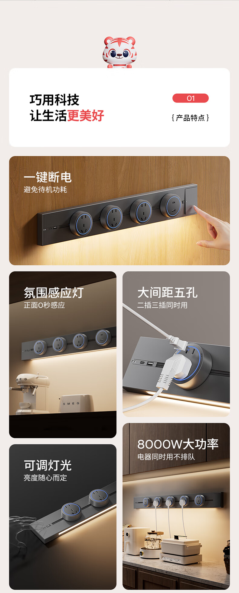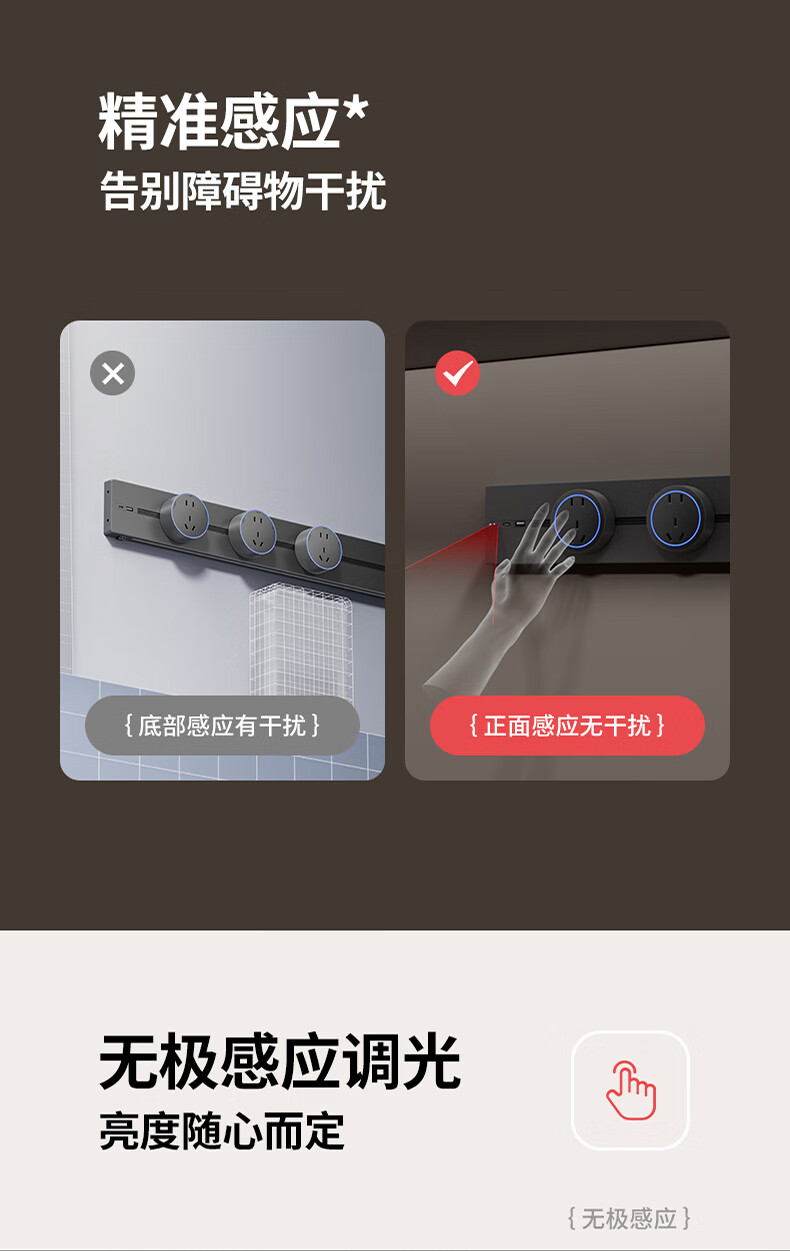 国际电工智能感应灯轨道插座可移动插排壁挂式电力导轨插座UC一体轨道插板 挥手感应轨道 80cm +4个大五孔(蓝灯)
