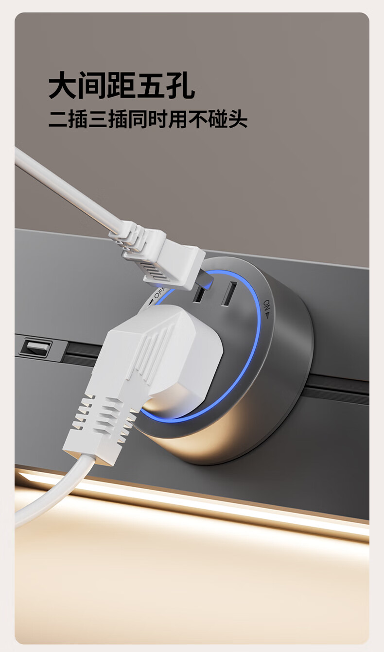 公正牛转带线家用插线板2米3米5米10米排插大功率多插孔电源插10A 蓝白28孔+10米线 2500w