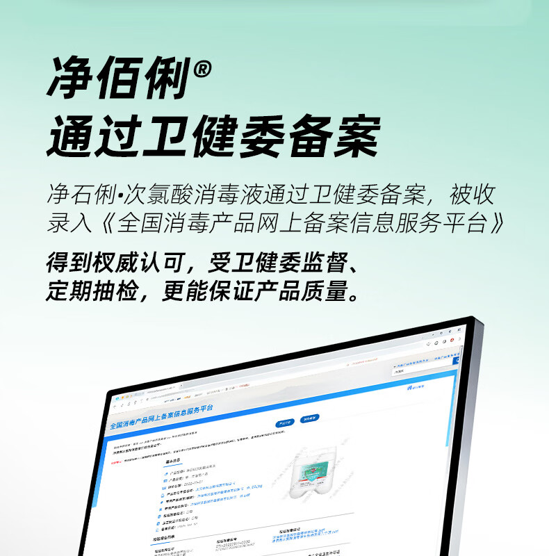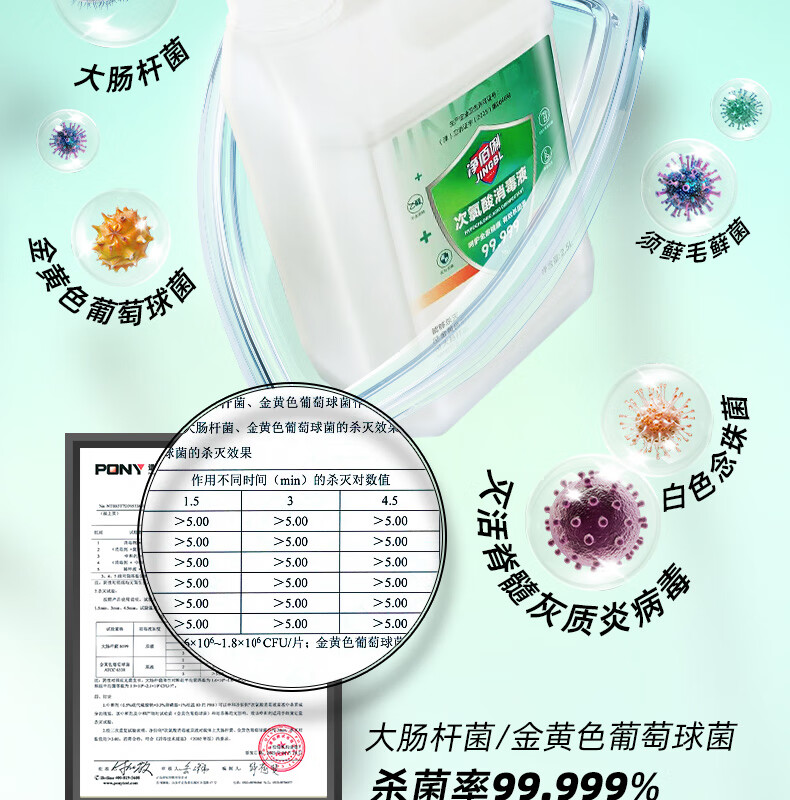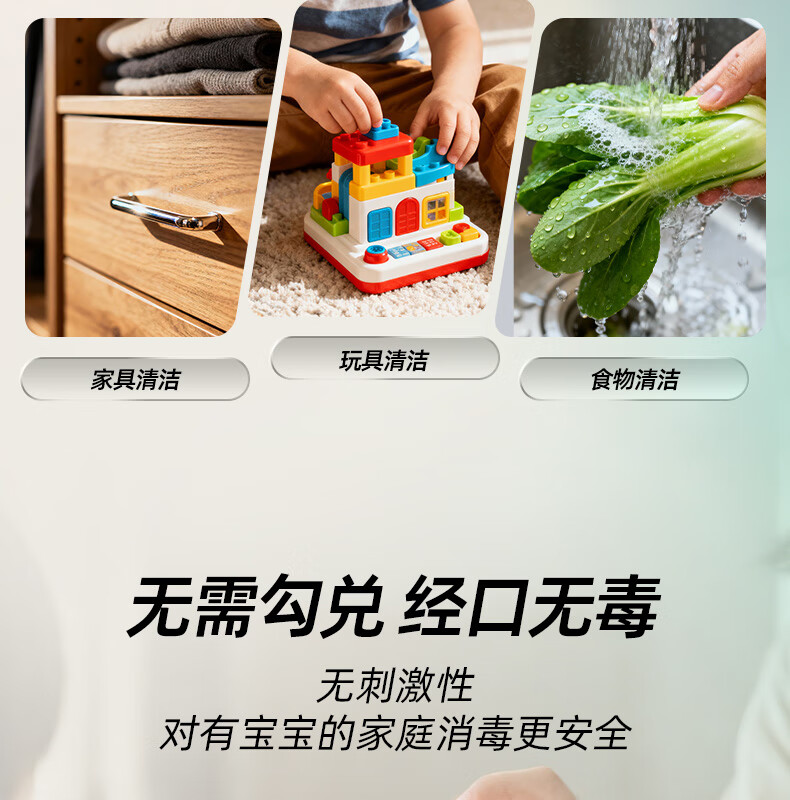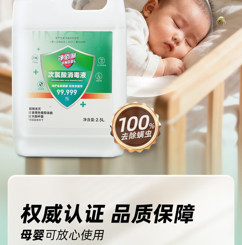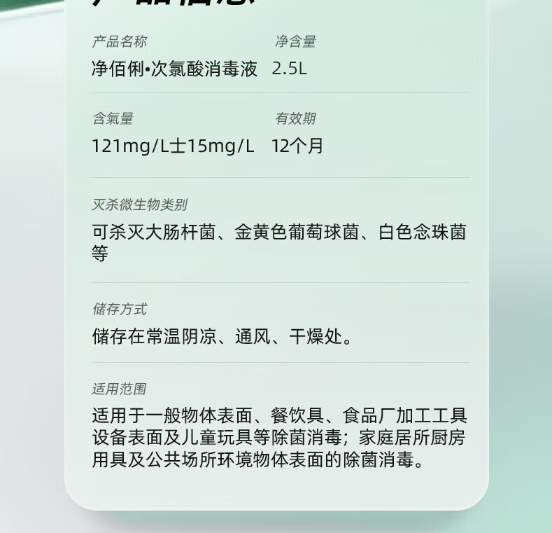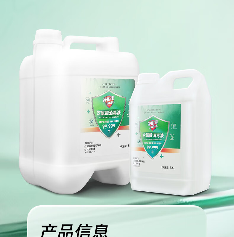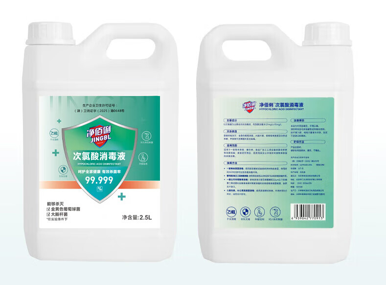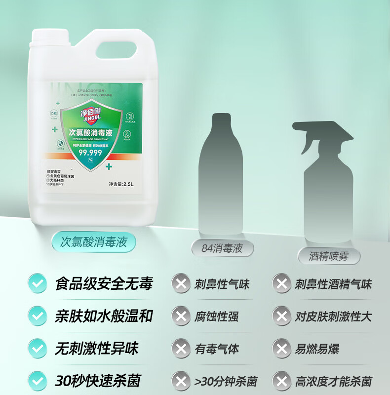 净佰俐次氯酸消毒液2.5L非84无酒精水果蔬菜多种环境坐垫马桶宠物消毒
