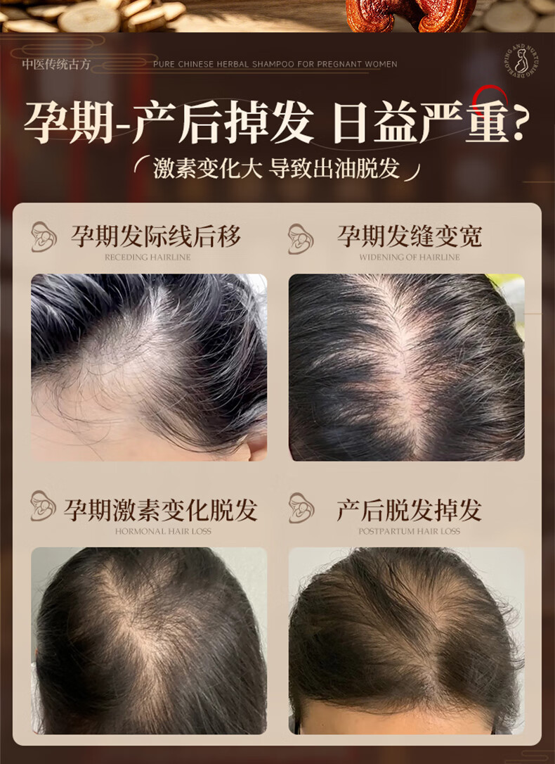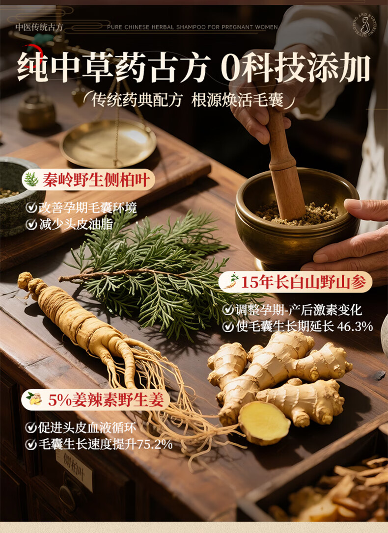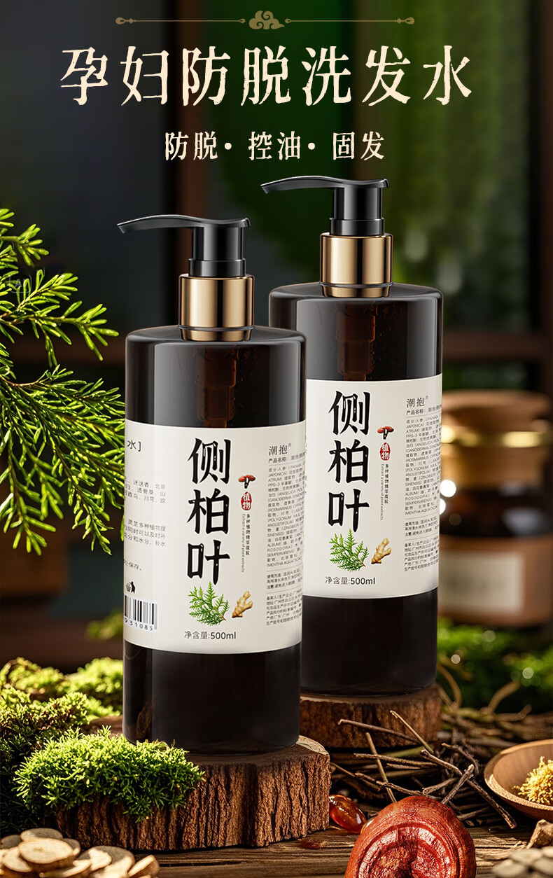 梦若羽防脱发密发增发女士专用洗发水柏叶生姜产后脱发孕妇防断育发 一瓶装 【0硅油|弱酸性配方】纯中药洗发