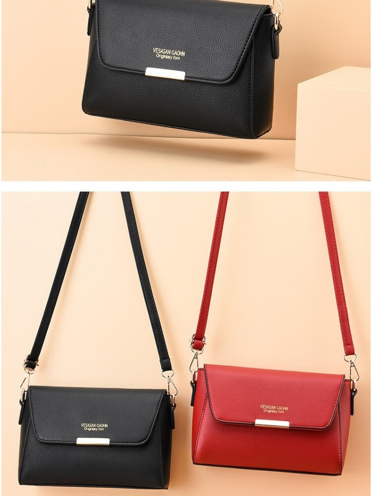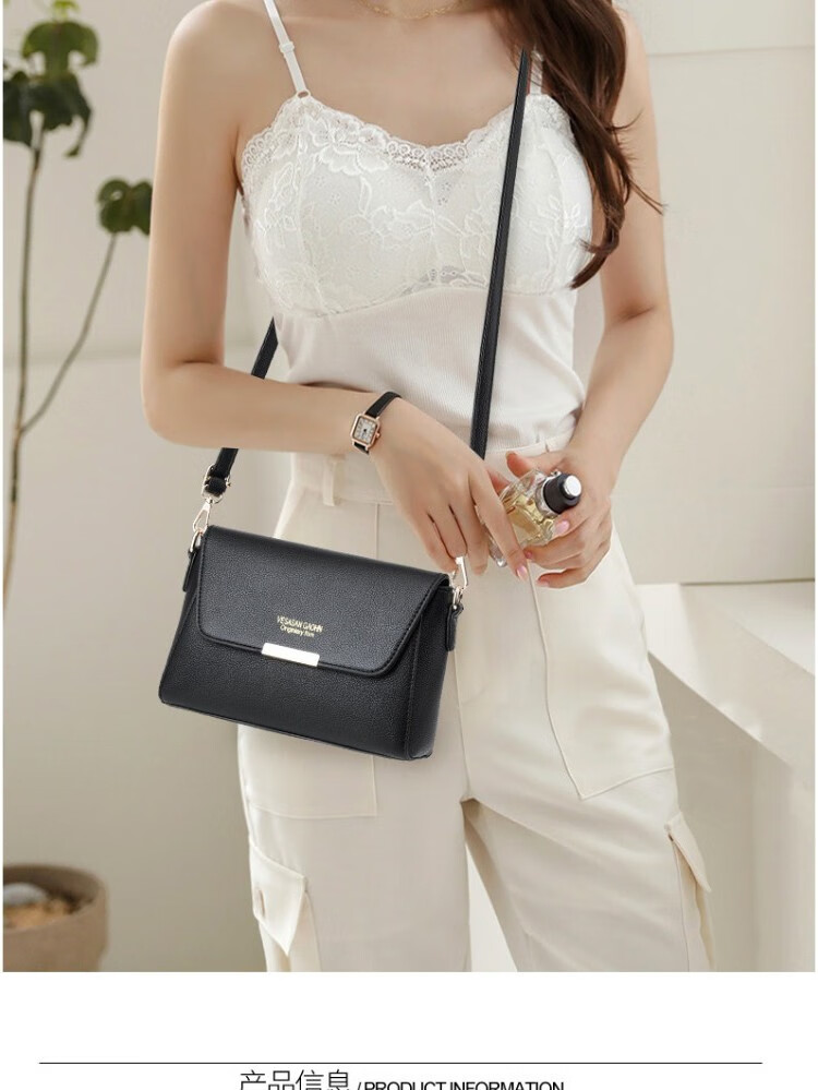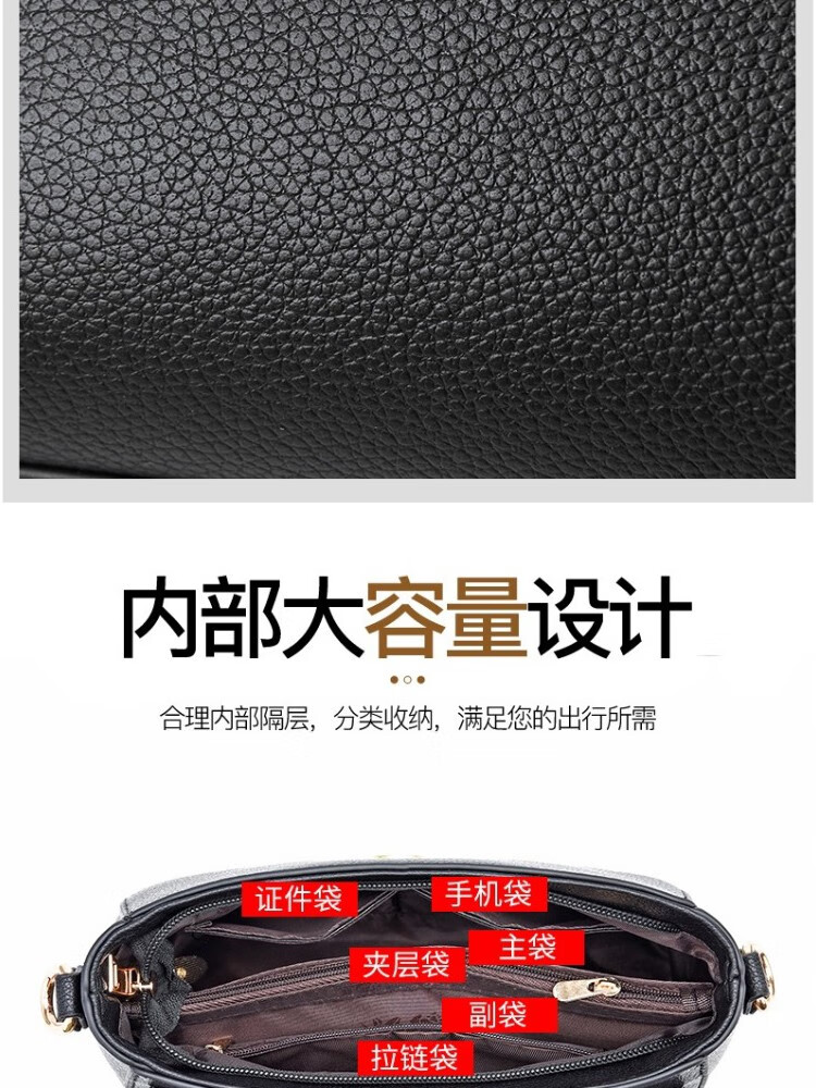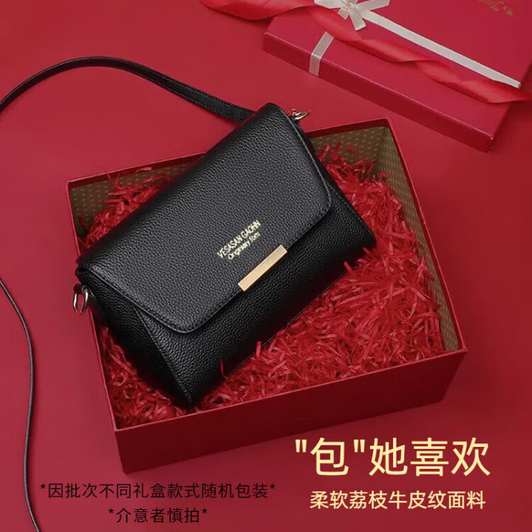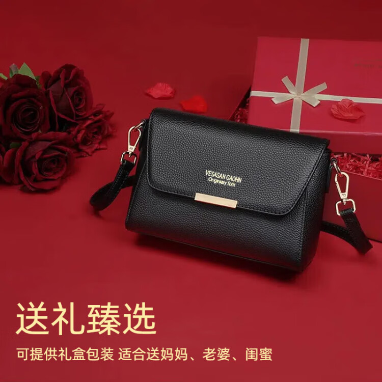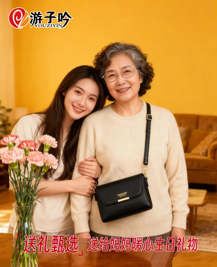 游子吟生日礼物送妈妈包包女包小包包斜挎包2025新款牛皮纹中老年女包 黑色-礼盒包装请拍这个