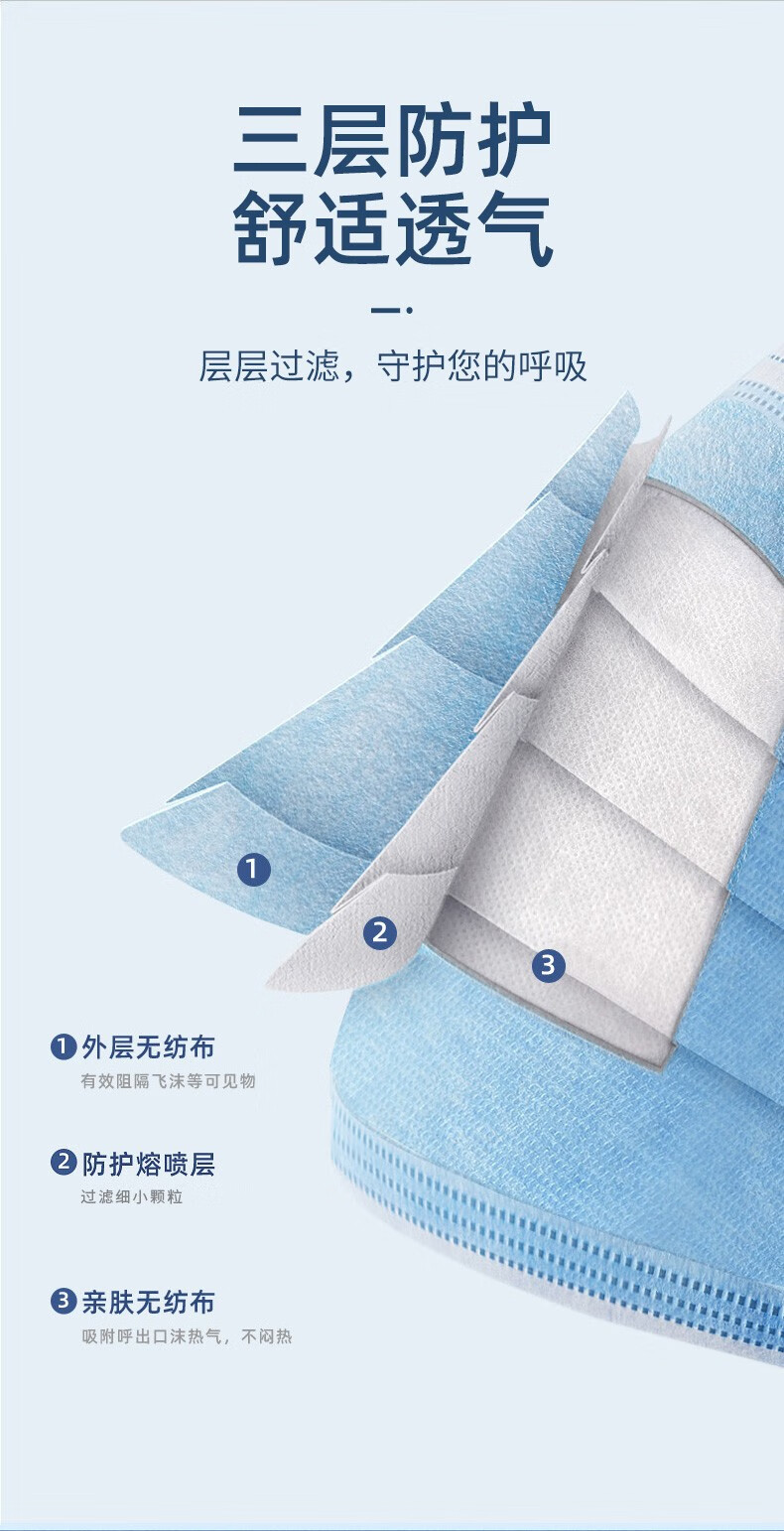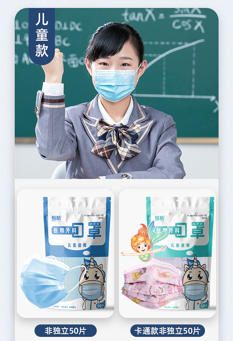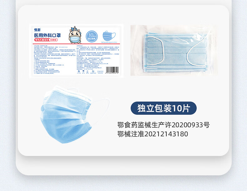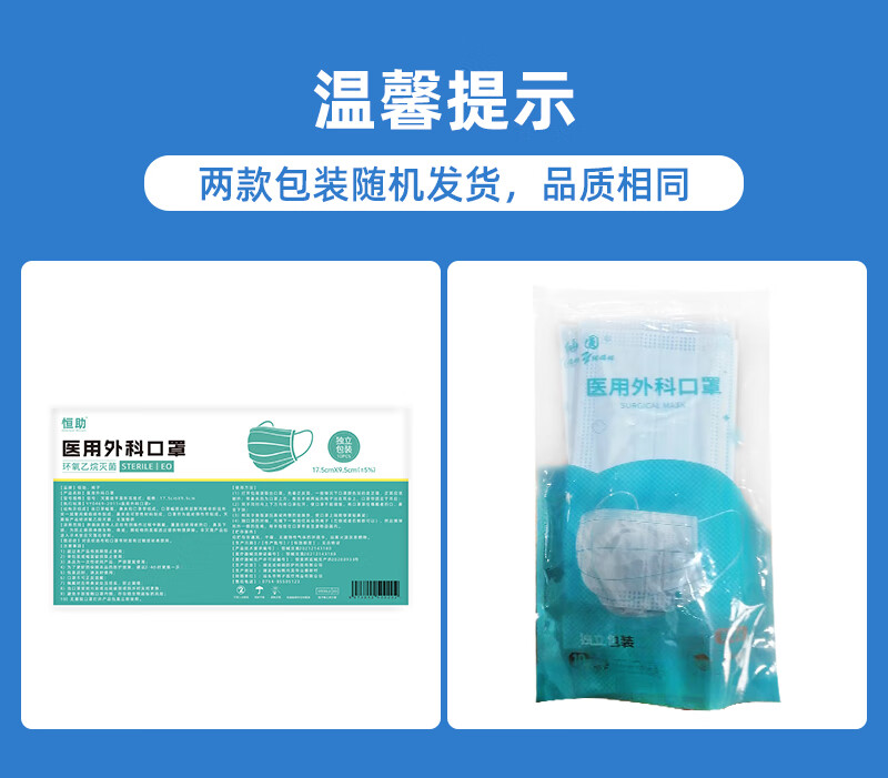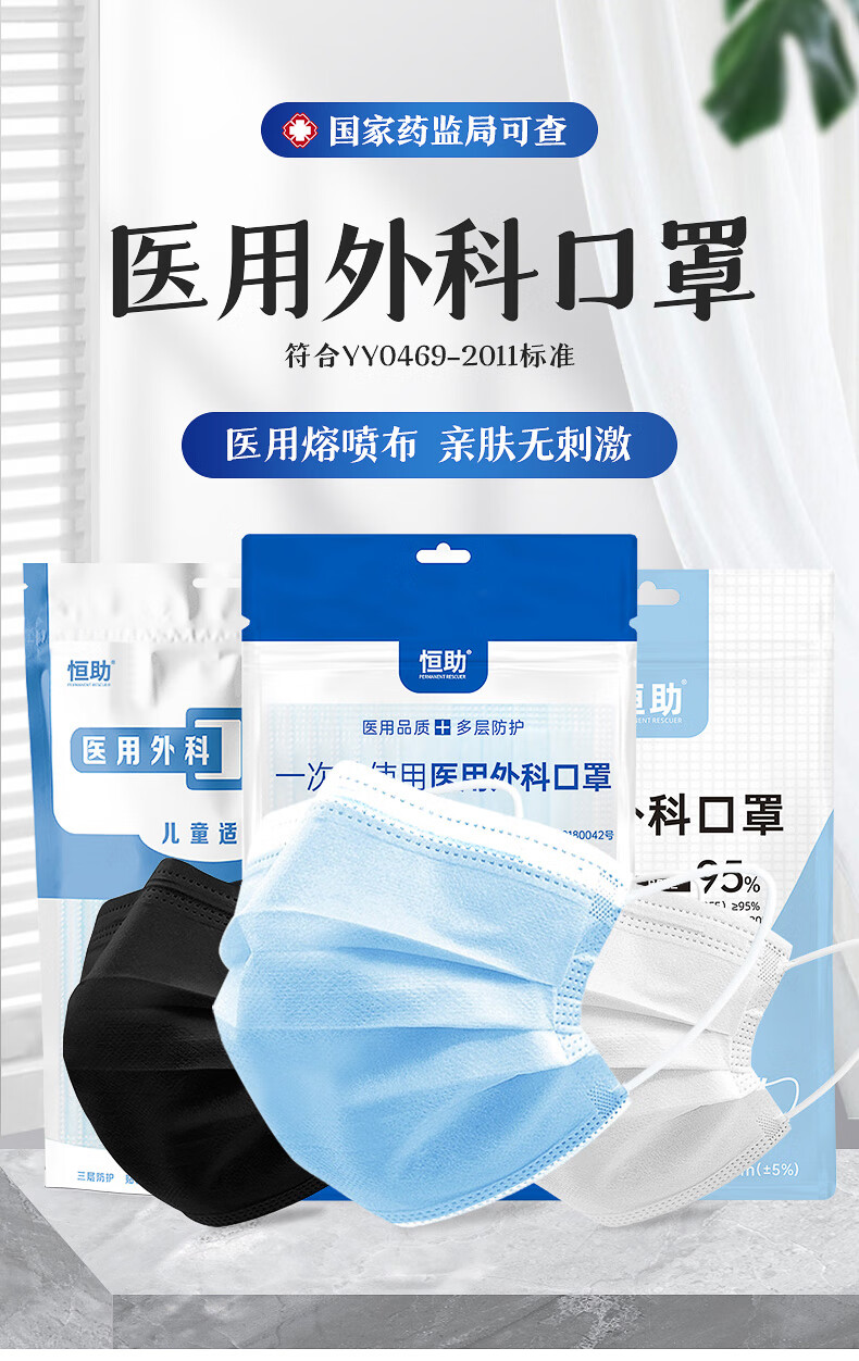 恒助医用外科口罩独立包装一次性医用口罩50片医疗口罩 蓝色600片/独立包装