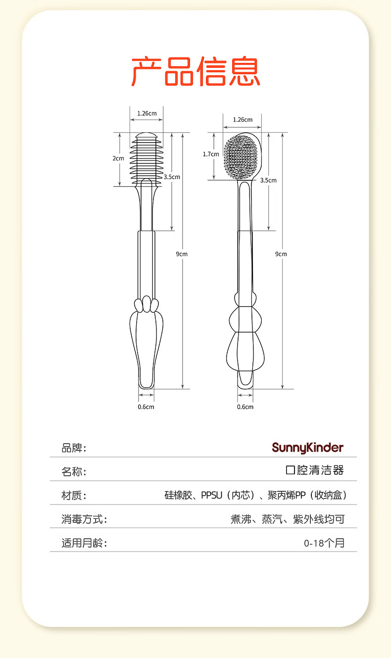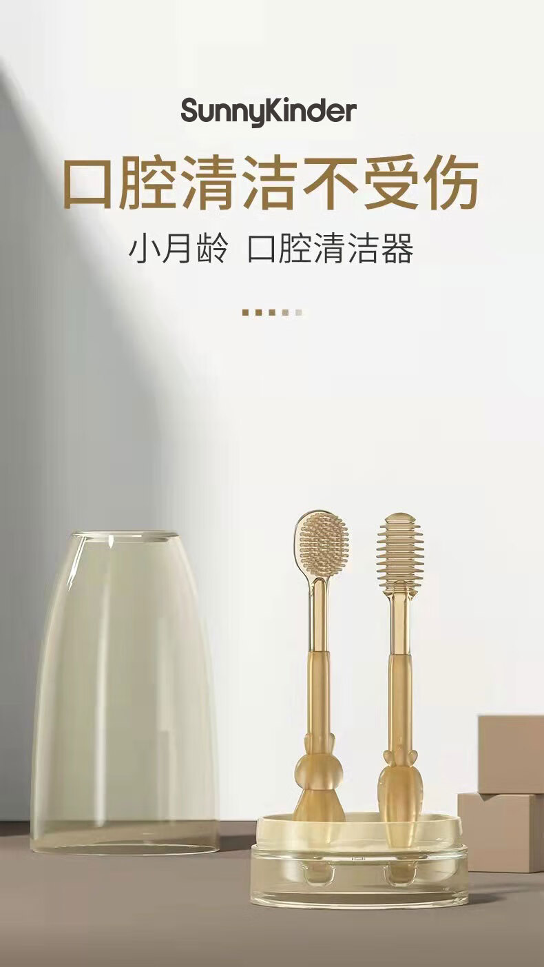 SunnyKinder婴儿牙刷0-18个月口腔清洁器宝宝舌苔刷舌头清洁棒新生儿乳牙牙刷 两只乳牙刷+指套刷SK-T05