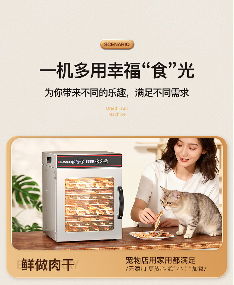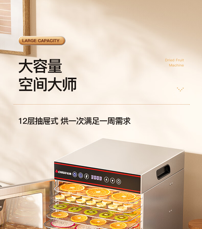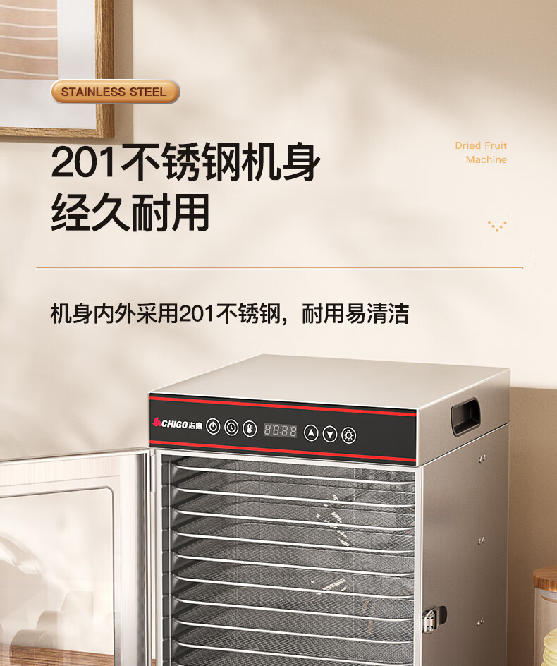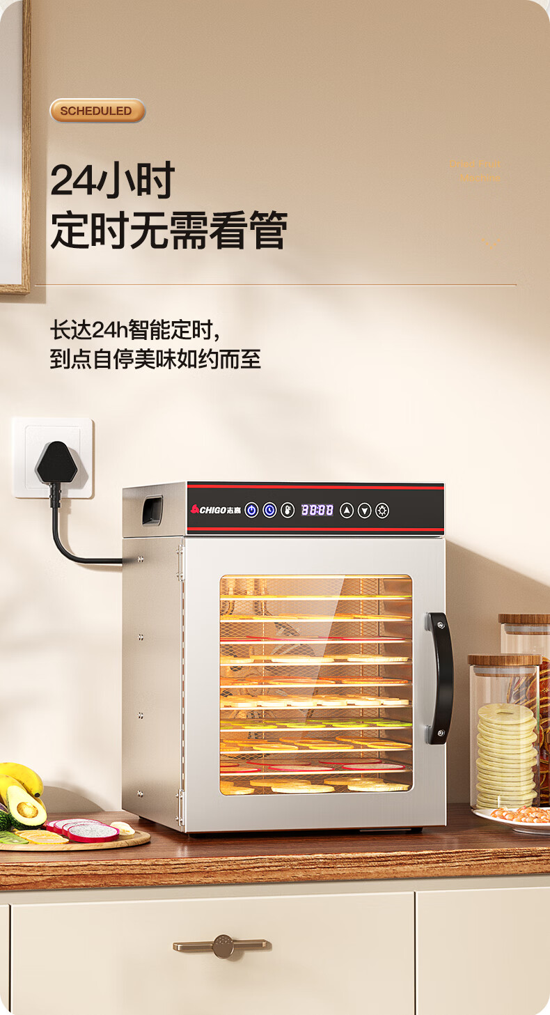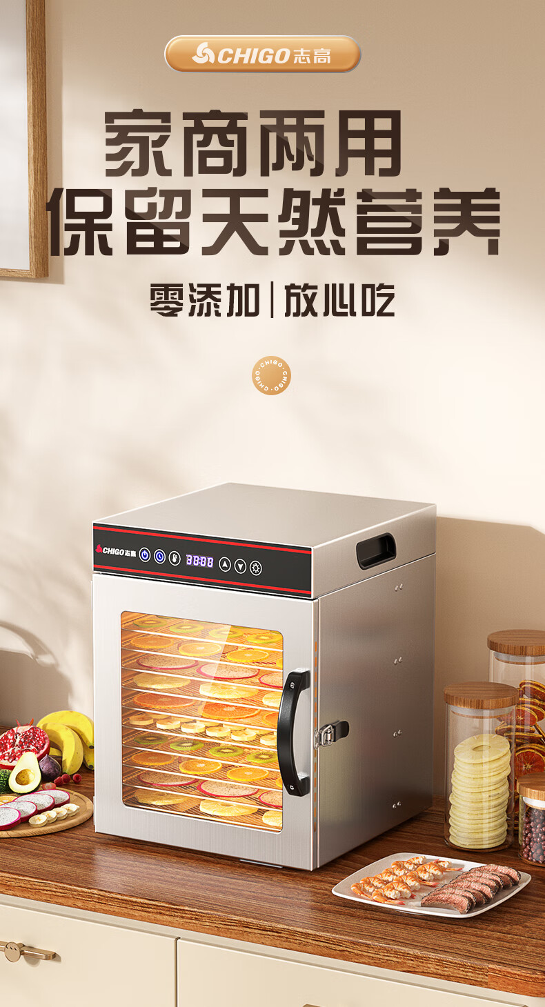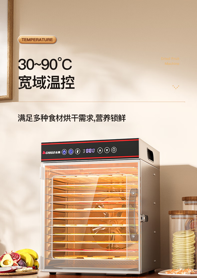 志高(CHIGO) 食品烘干机干果机水果风干机脱水机商用 宠物零食药材肉干蔬菜类风干机果干机家用 冲压款8层【600W】带照明灯
