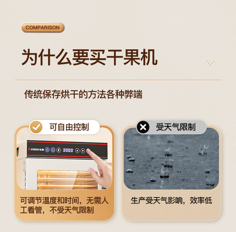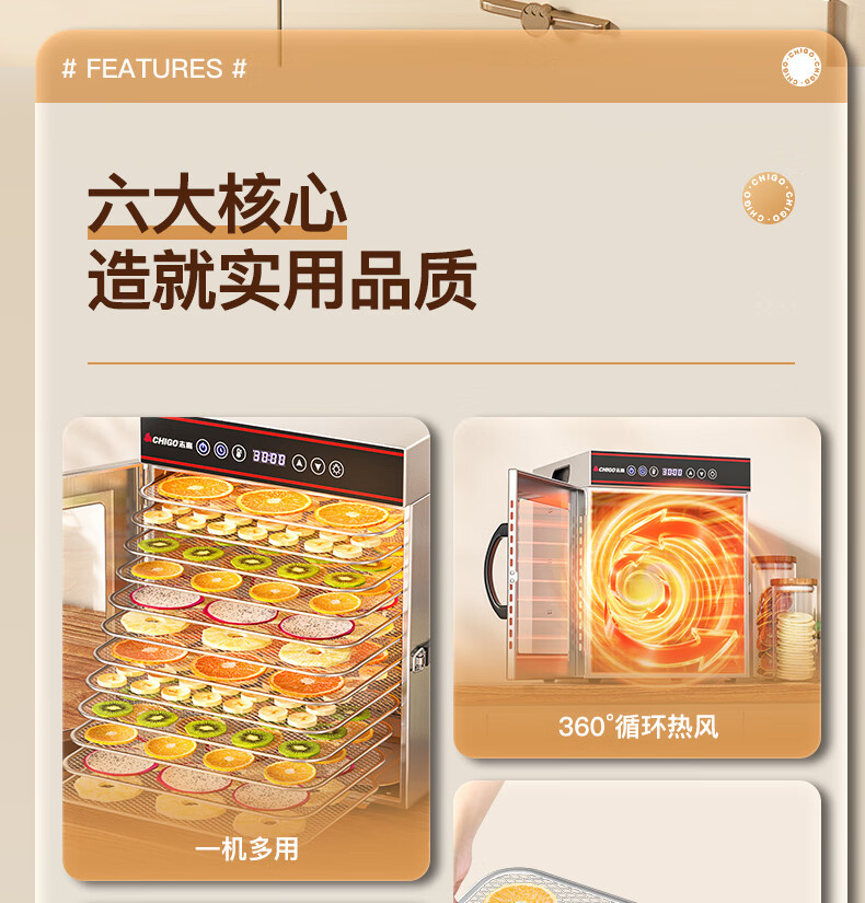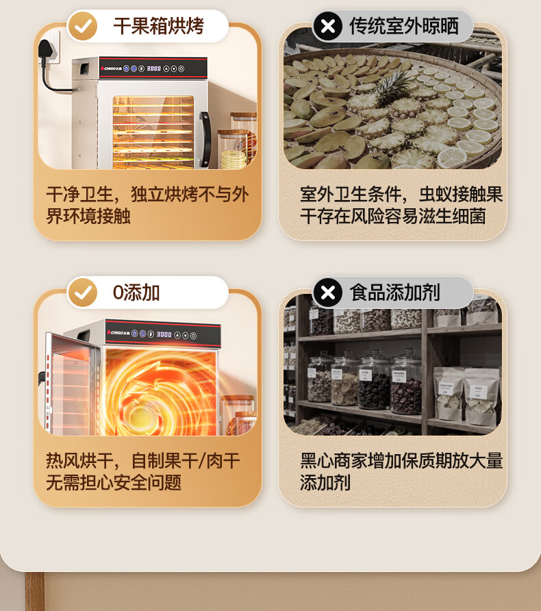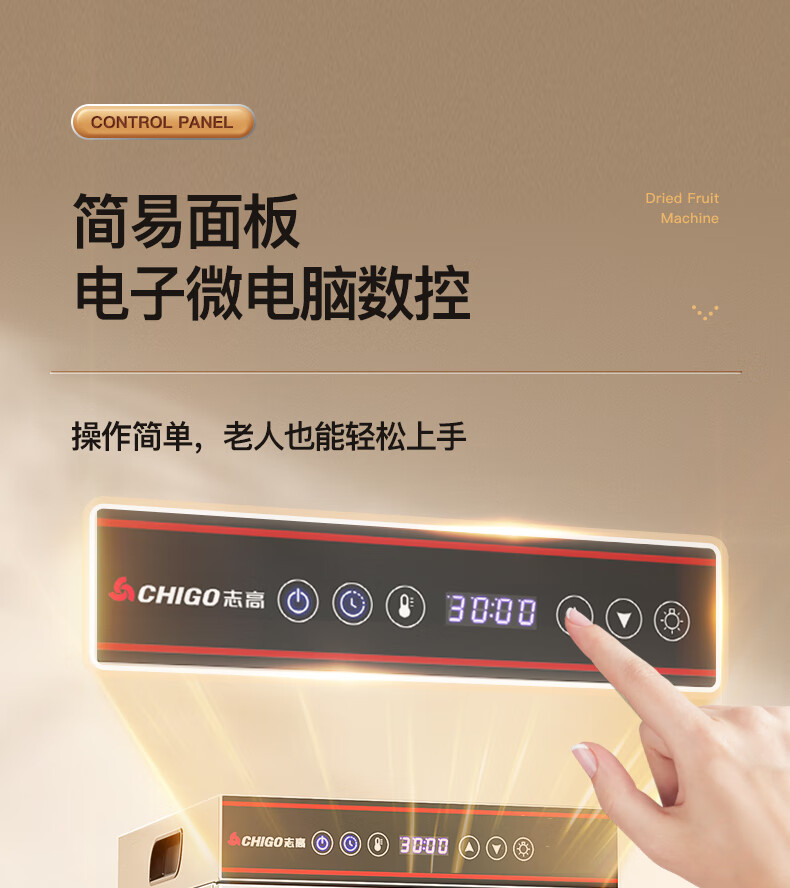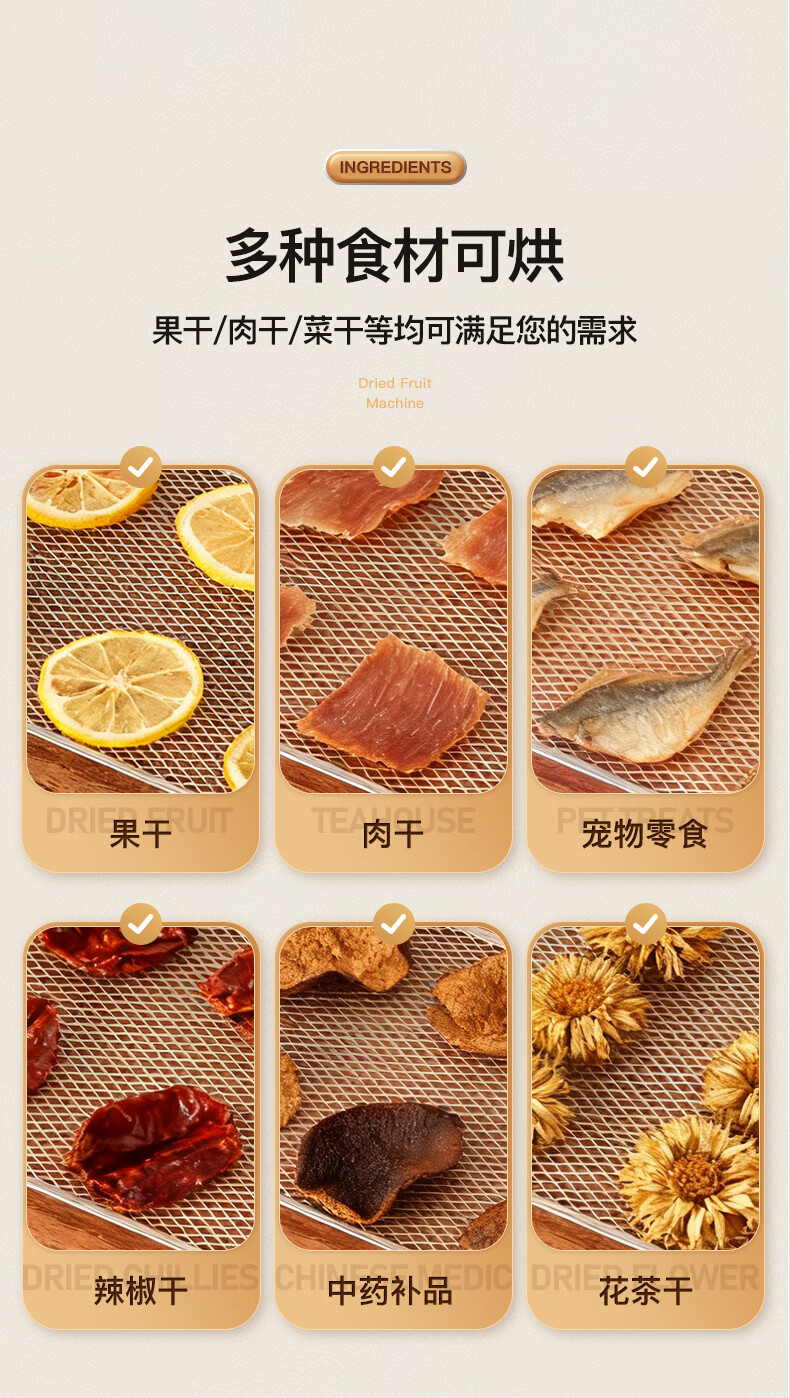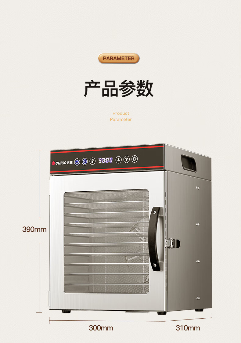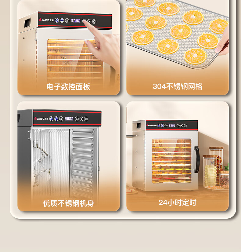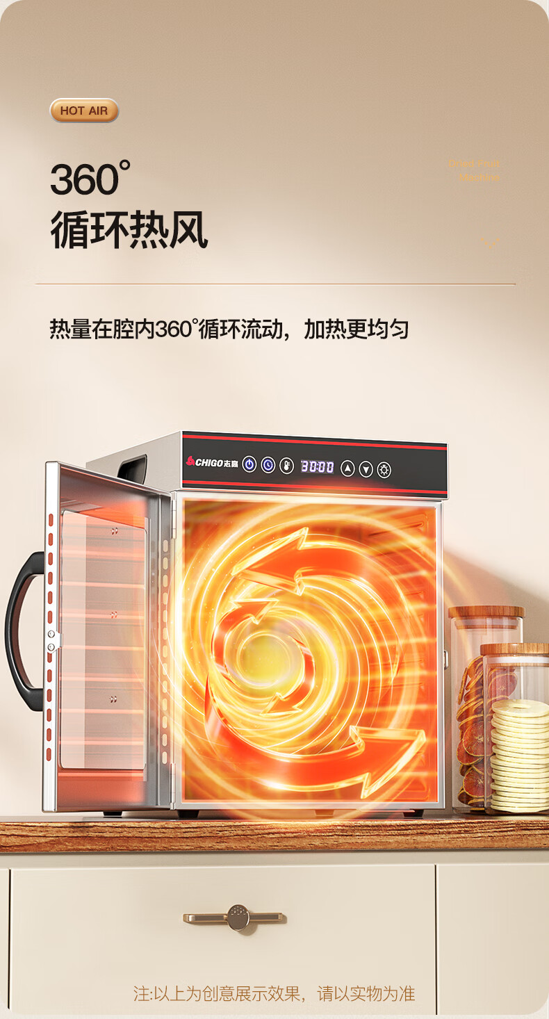 志高(CHIGO) 食品烘干机干果机水果风干机脱水机商用 宠物零食药材肉干蔬菜类风干机果干机家用 冲压款8层【600W】带照明灯