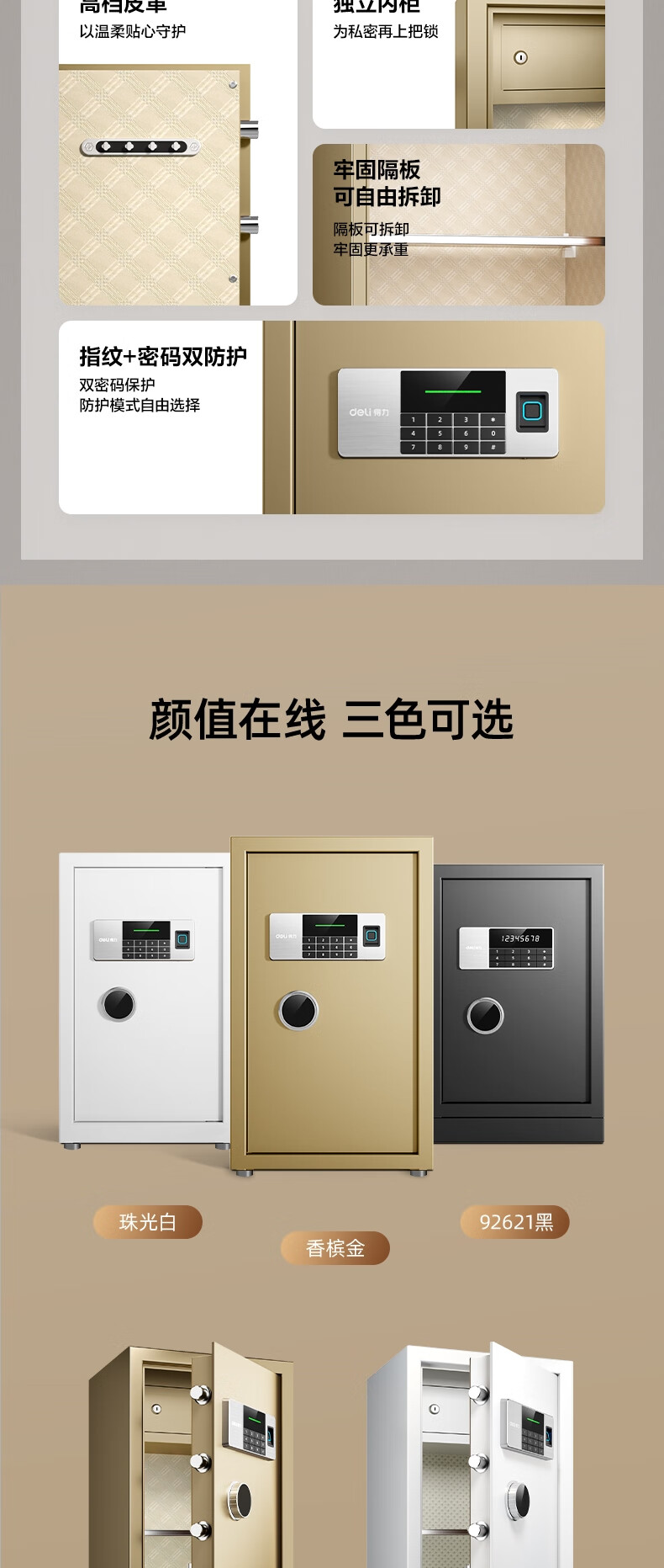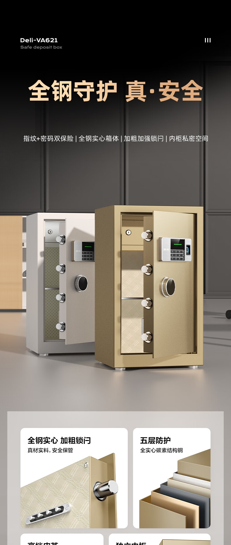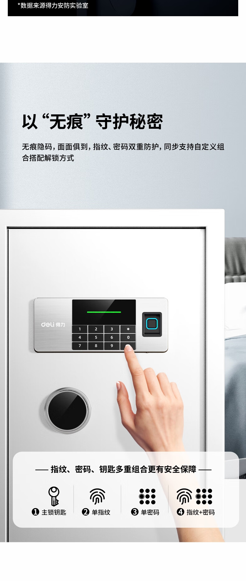 得力保险柜 家用办公指纹密码保险箱小型财务专用保密箱防盗可入墙入柜保管柜 60cm钻石白 曜臻系列