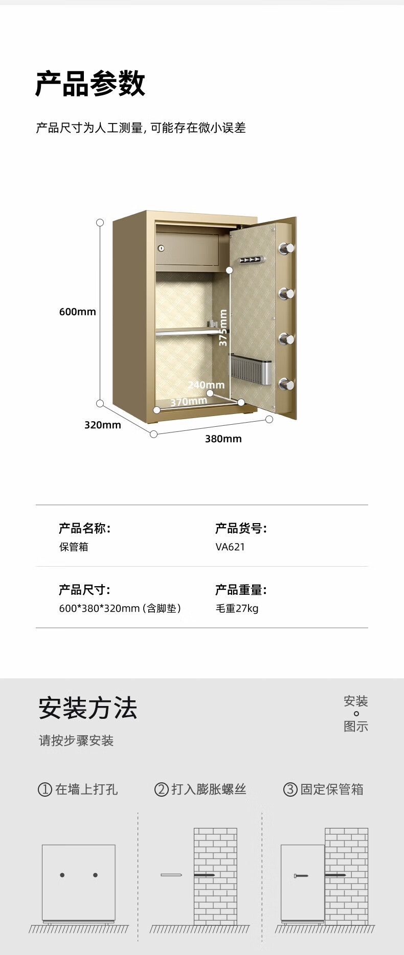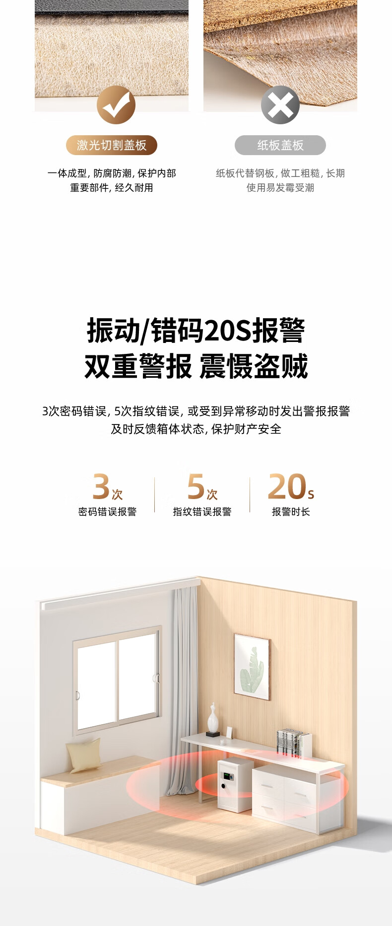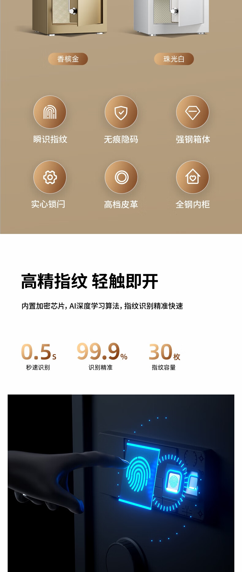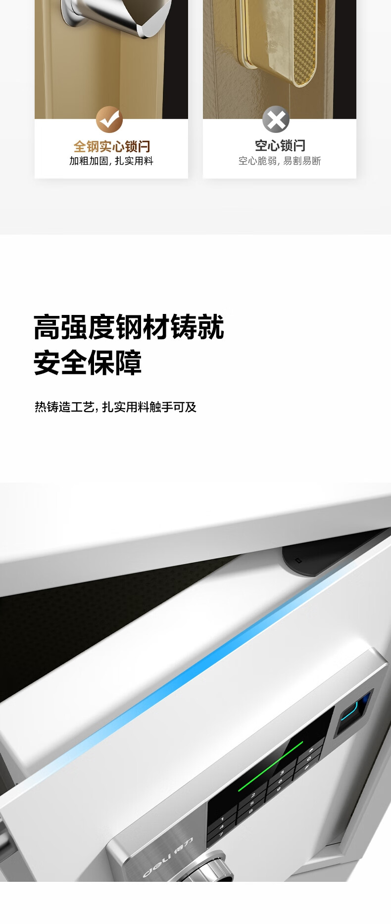 得力保险柜 家用办公指纹密码保险箱小型财务专用保密箱防盗可入墙入柜保管柜 60cm钻石白 曜臻系列