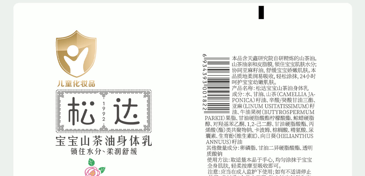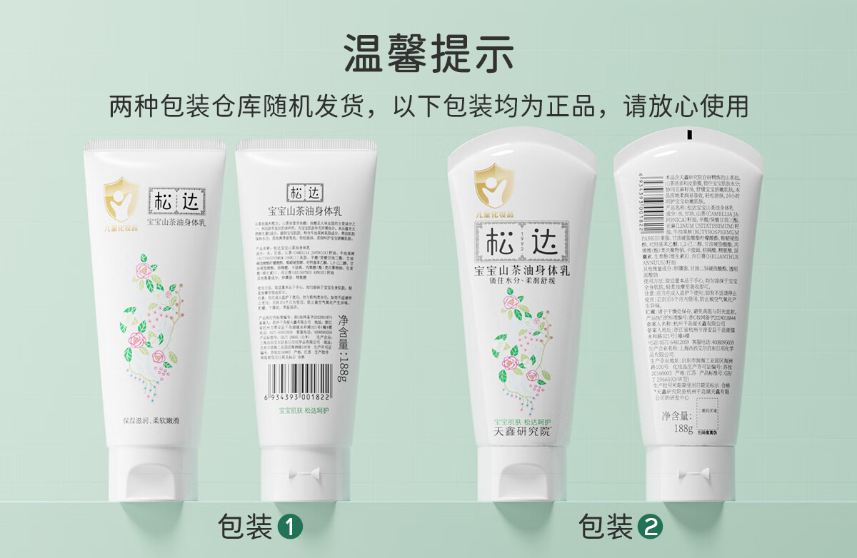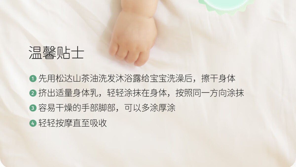 松达宝宝身体乳保湿婴儿润肤乳儿童滋润护肤全身补水山茶油乳 【2瓶更划算】宝宝身体乳188g