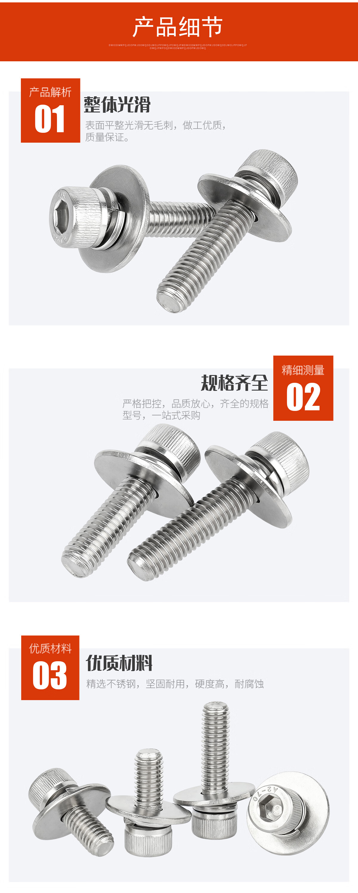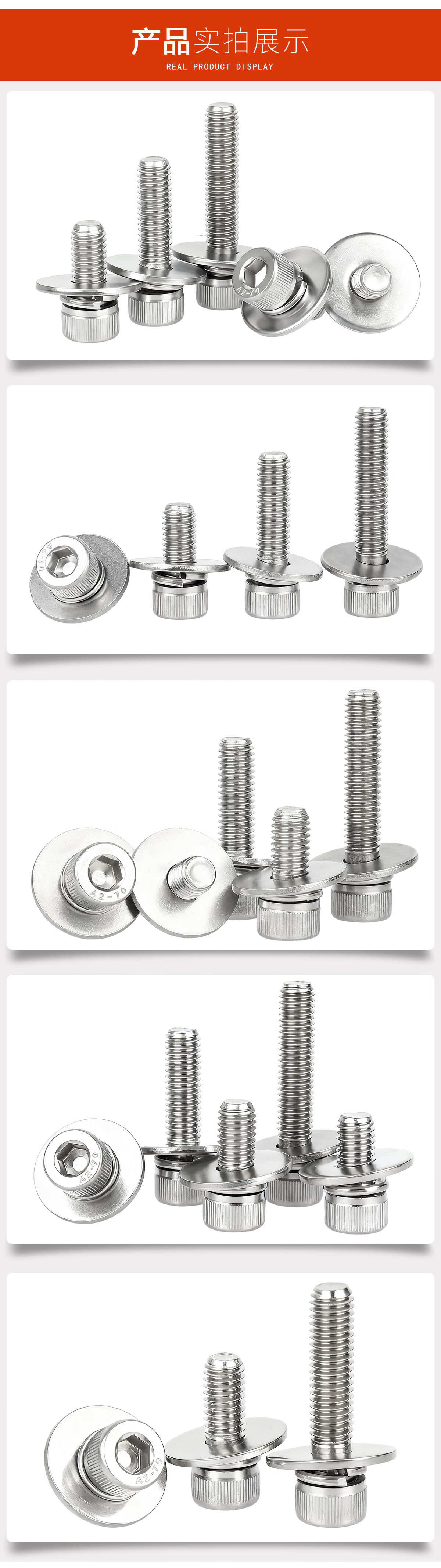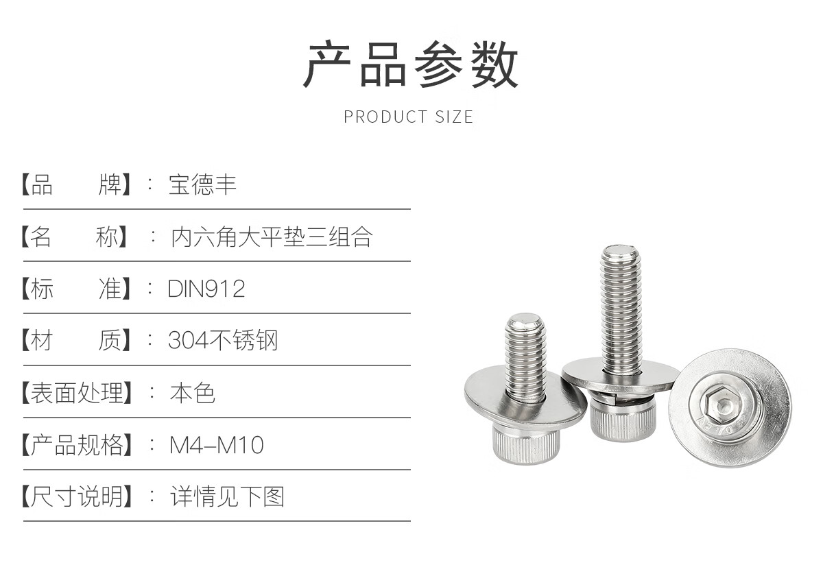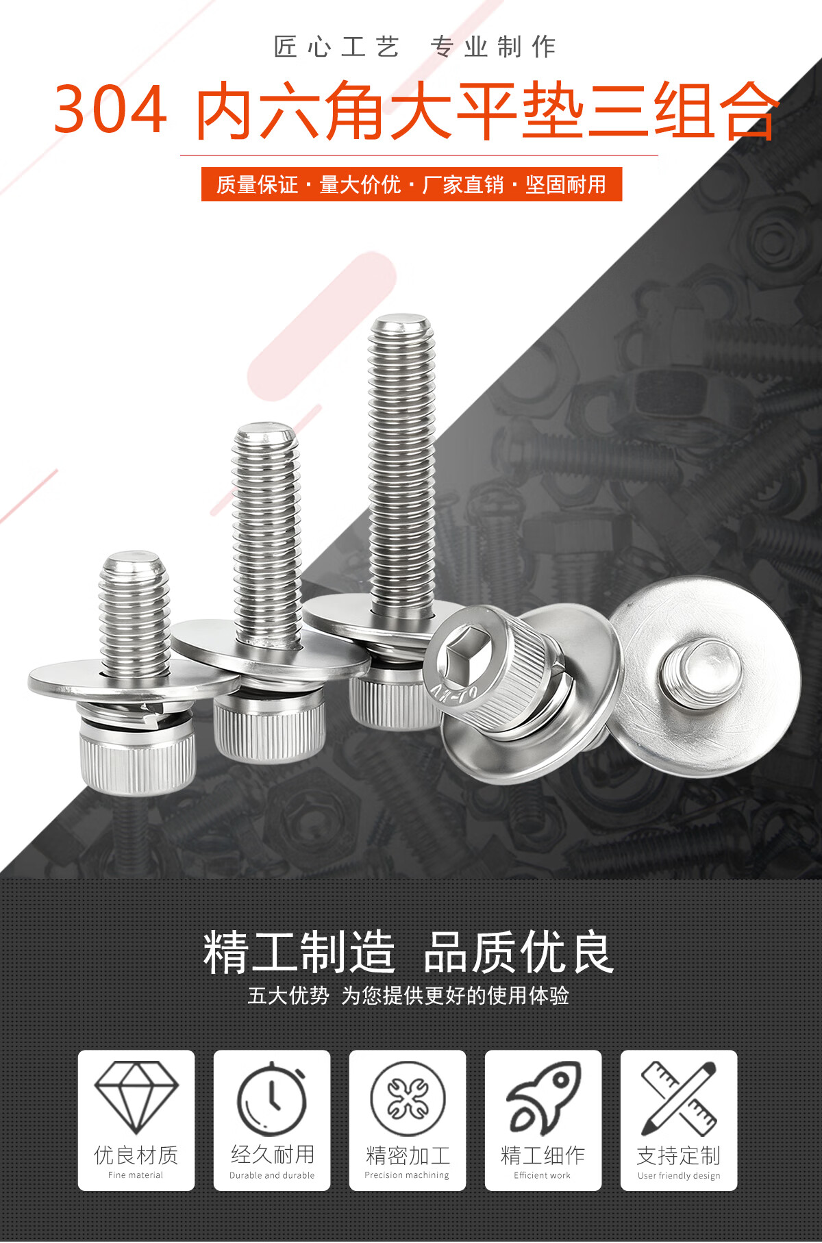 宝德丰304不锈钢杯头内六角加大平垫三组合螺丝钉圆柱头套装螺栓M2-M12 M6x12x18[10只]
