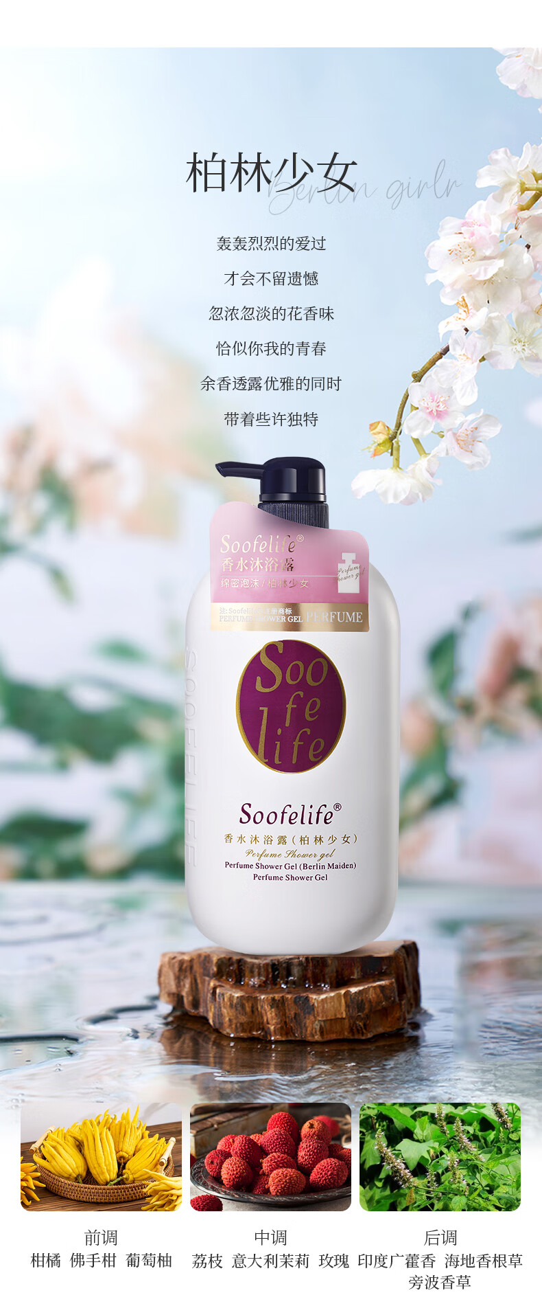 SOOFELIFE舒芬妮香水沐浴露1000ml持久留香滋润保湿香氛美肌沐浴露 【柏林少女】香水沐浴露1000ml*1