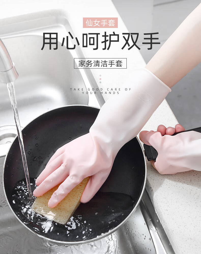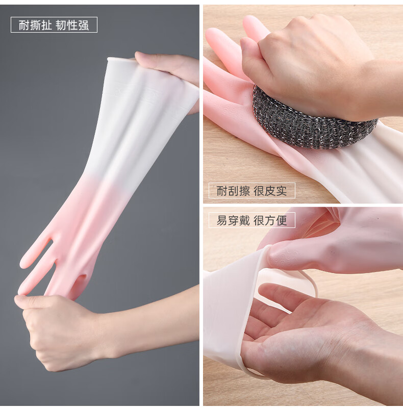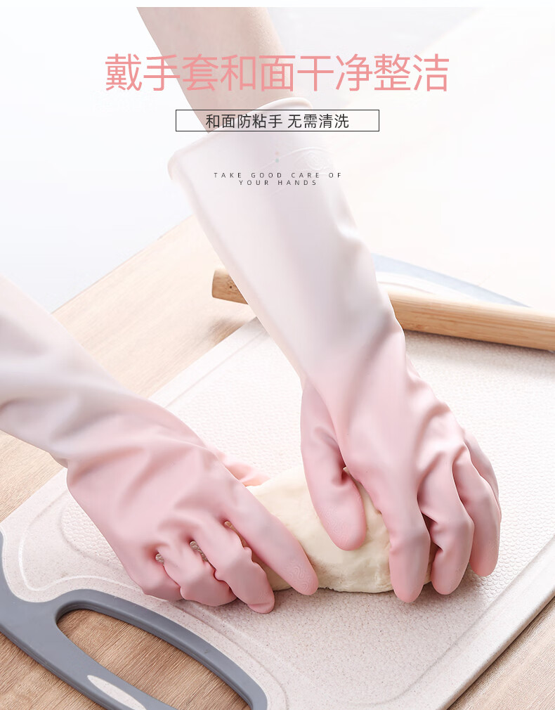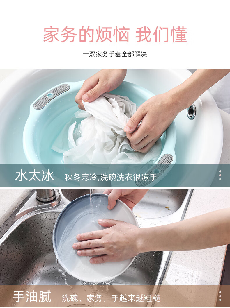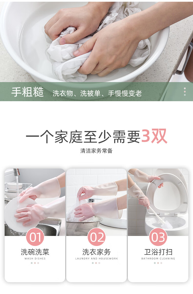 手套洗碗家务厨房耐用女防水橡胶加厚冬季型洗衣衣服乳胶家用 3双-颜色随机