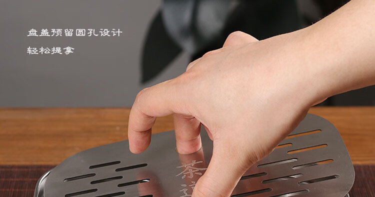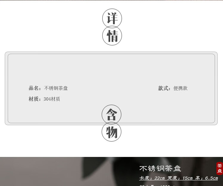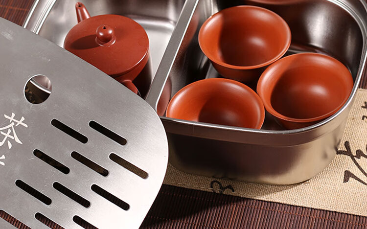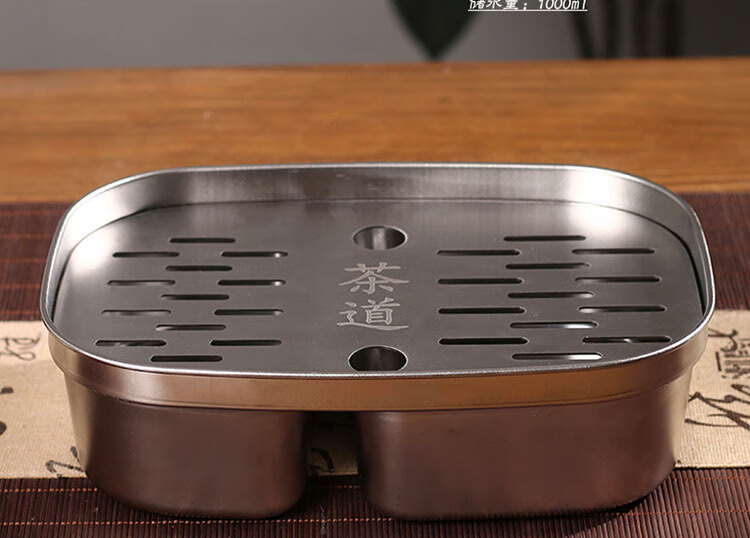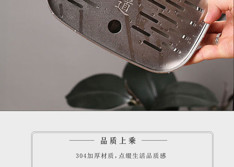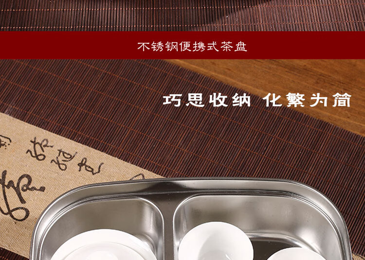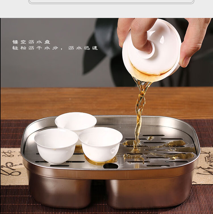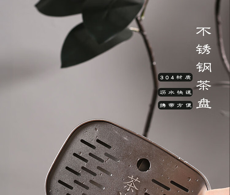 贝净洁304不锈钢工夫茶盘储水盘家用户外便携茶托盘茶具全套旅游干泡台 304不锈钢便携茶盘