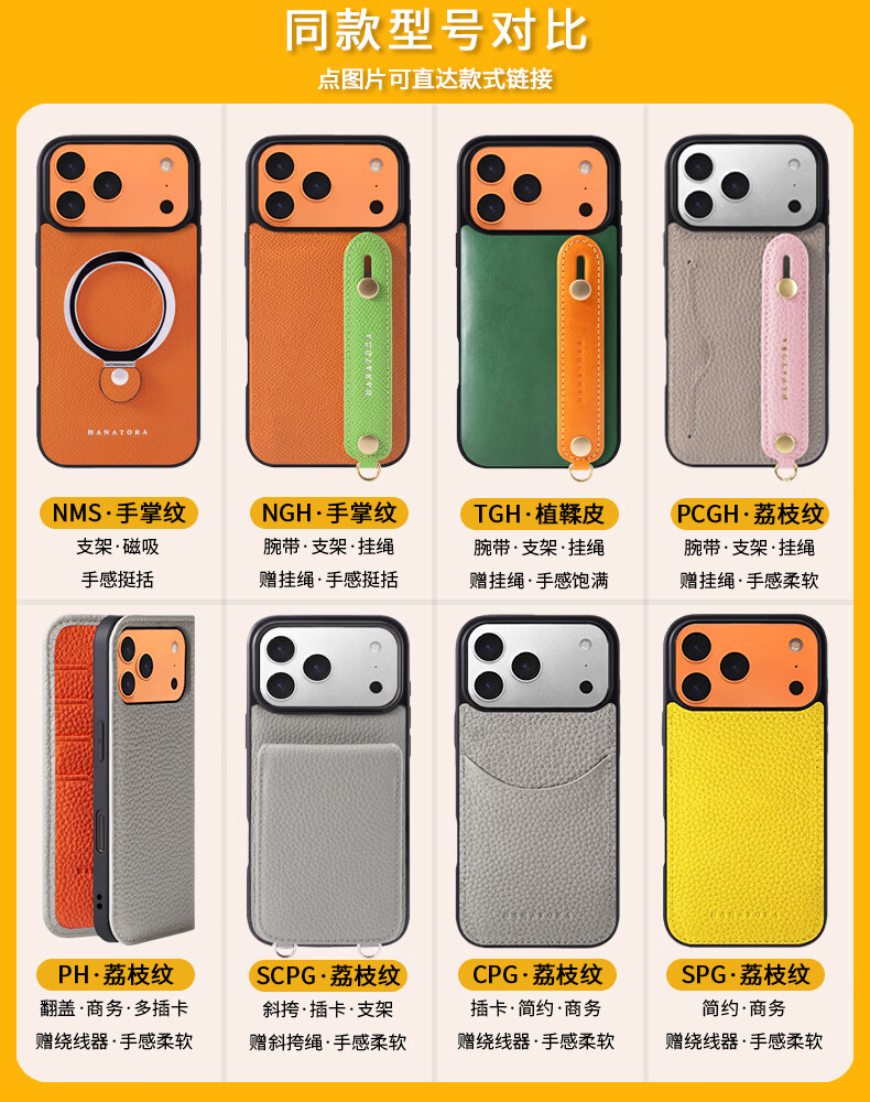 花虎(HANATORA)苹果17/16/15Promax手机壳新款日式真皮iPhone15/14pro高端全包防摔腕带挂绳带支架卡包男女款Air 【黑色】配挂脖绳 iPhone 16 Pro Max