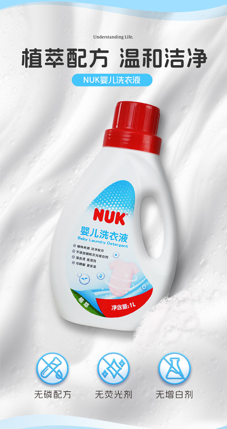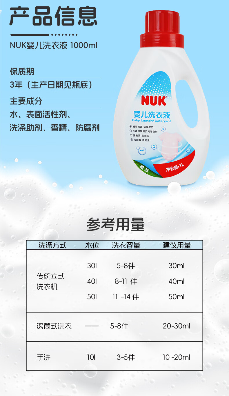 NUK婴儿洗衣液宝宝儿童新生儿专用内衣裤奶渍温和清洗去污渍无残留 【超值囤货装】婴儿洗衣液1L*3