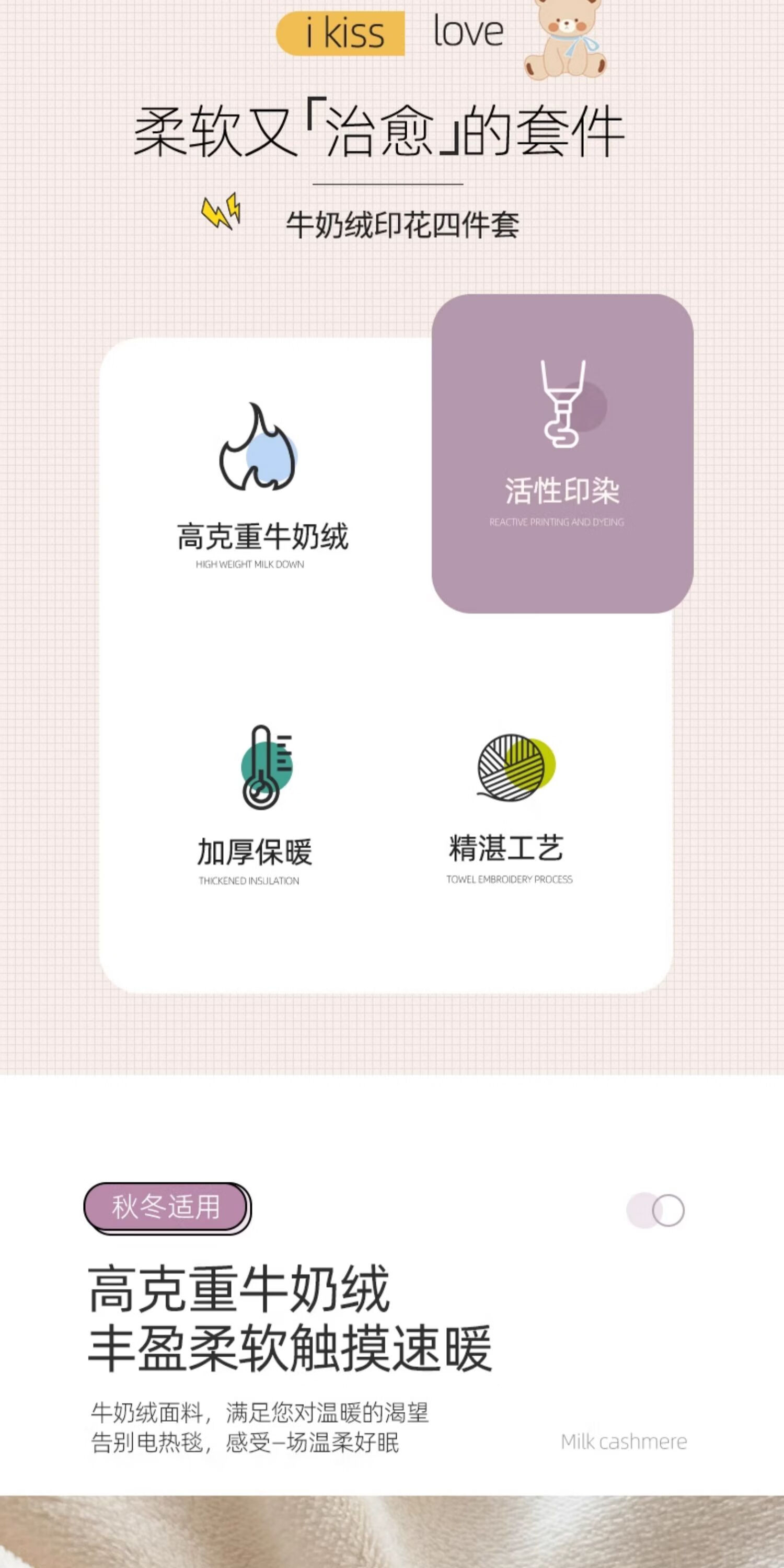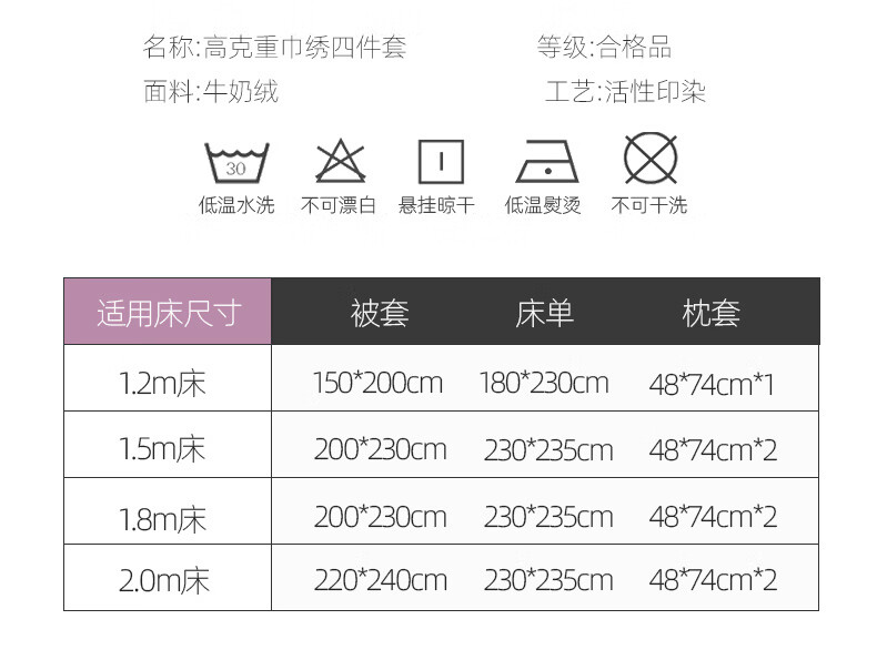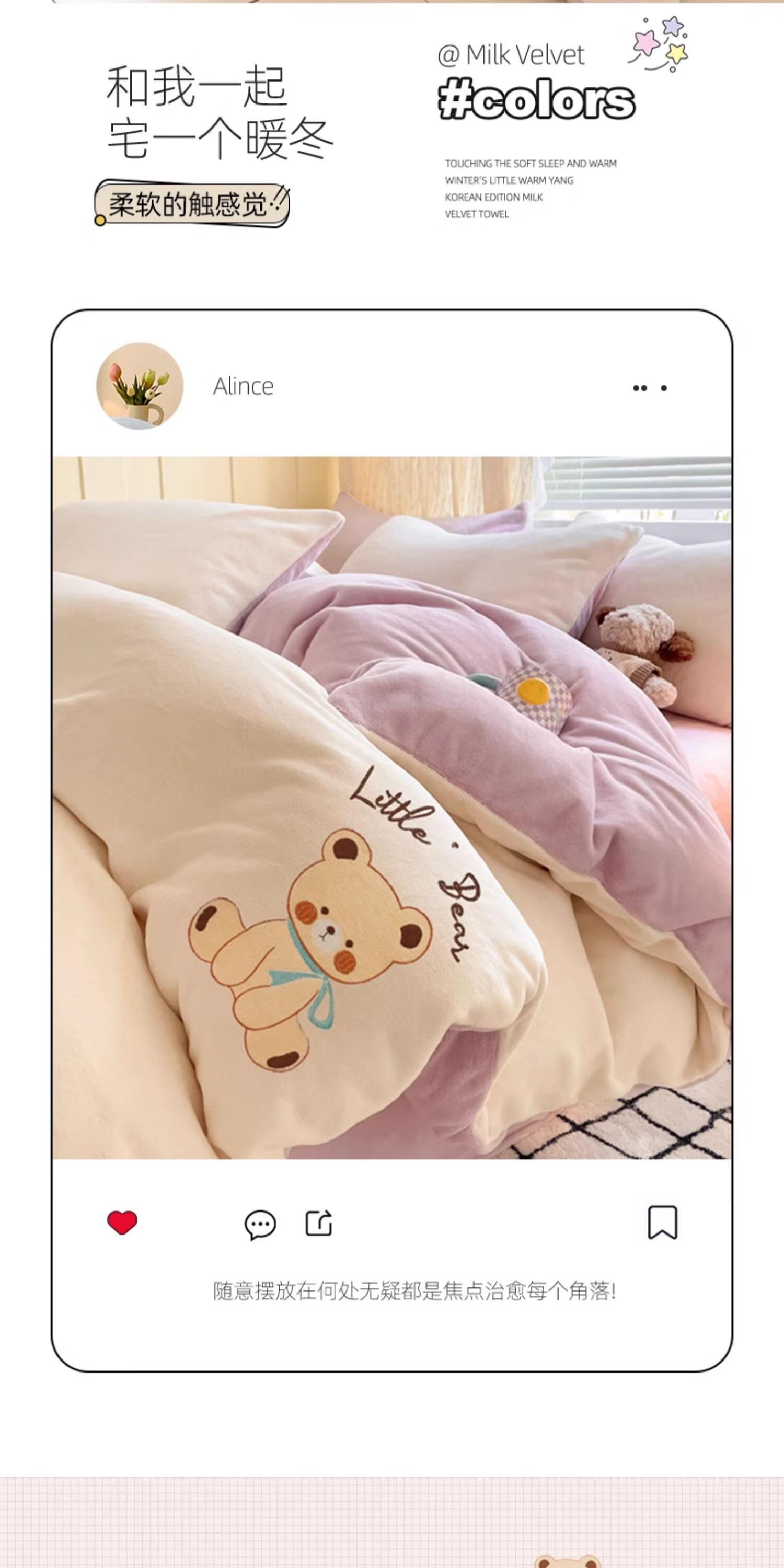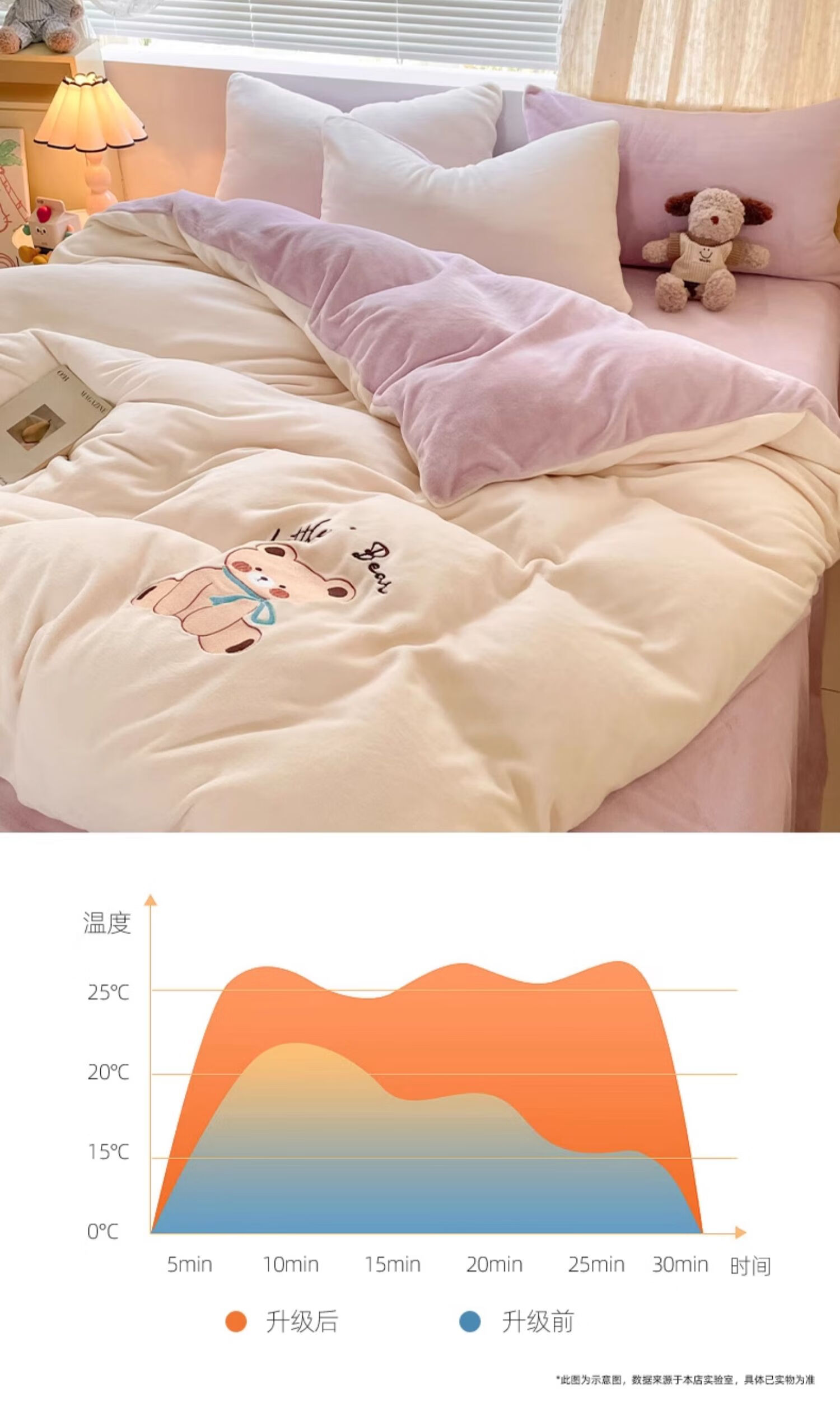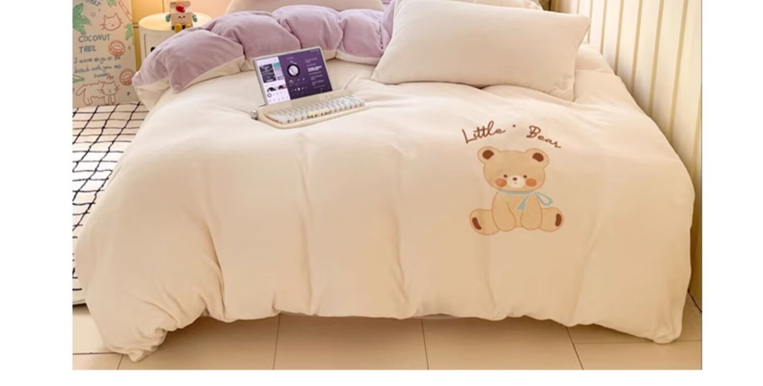 高睿牛奶绒四件套床上加厚毛绒珊瑚绒水晶绒双面被套法兰绒床单三件套 刺绣小熊-奶油米【抗菌抑菌丨加绒加厚丨亲肤细腻】 床单款 (被套220*240cm) 2.0m四件套