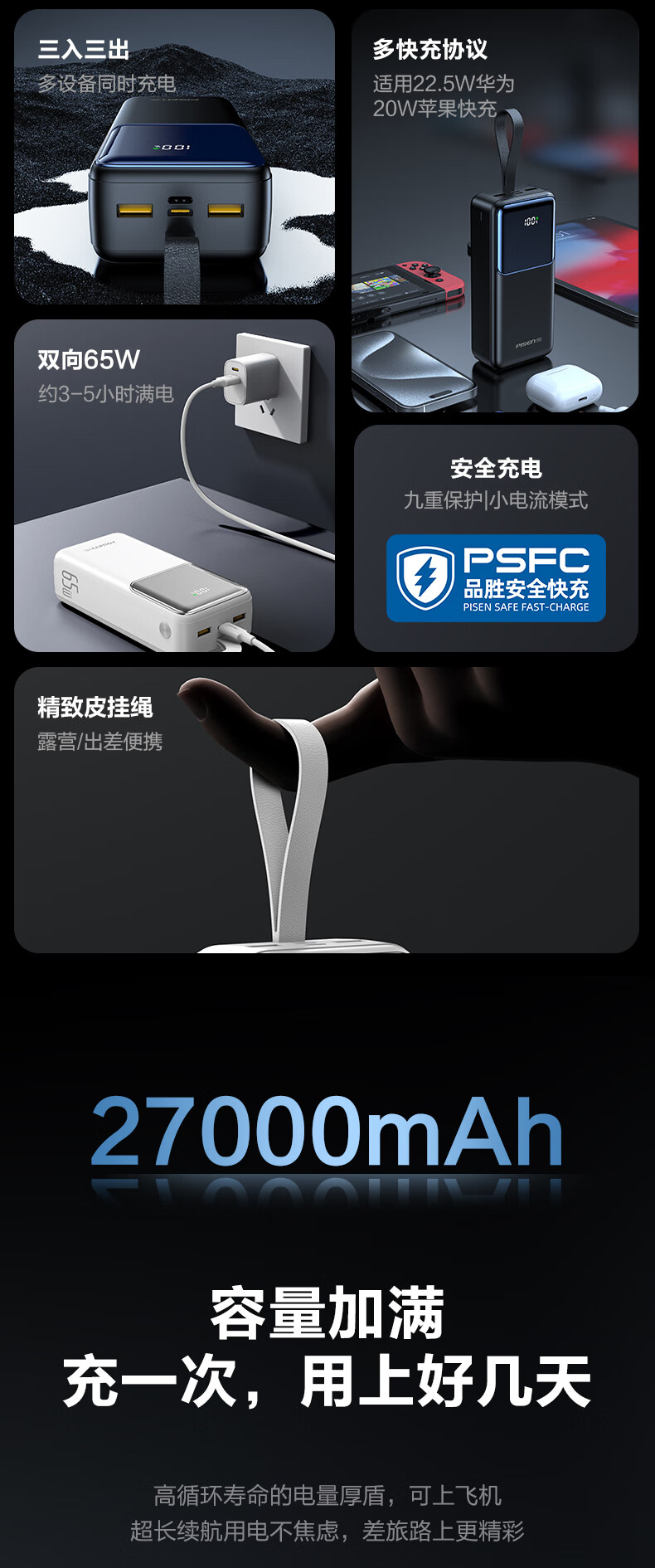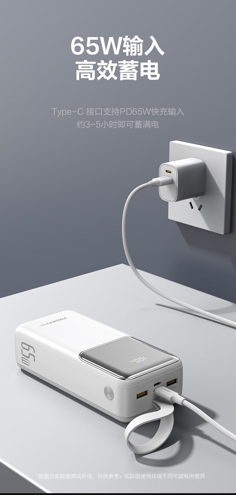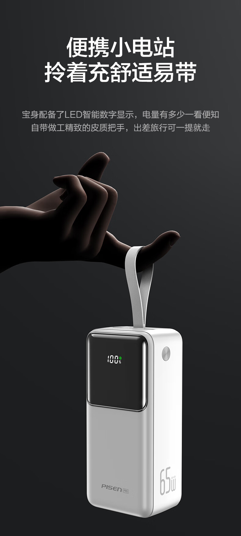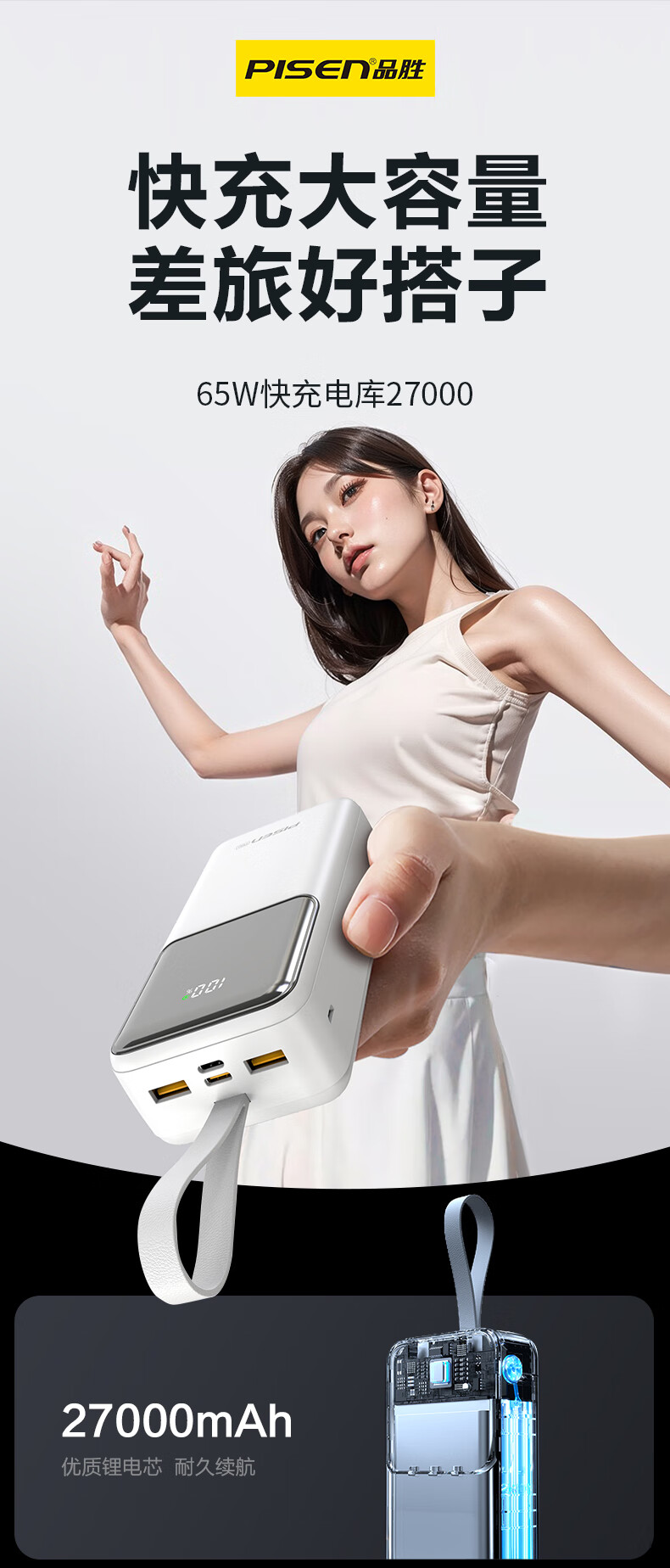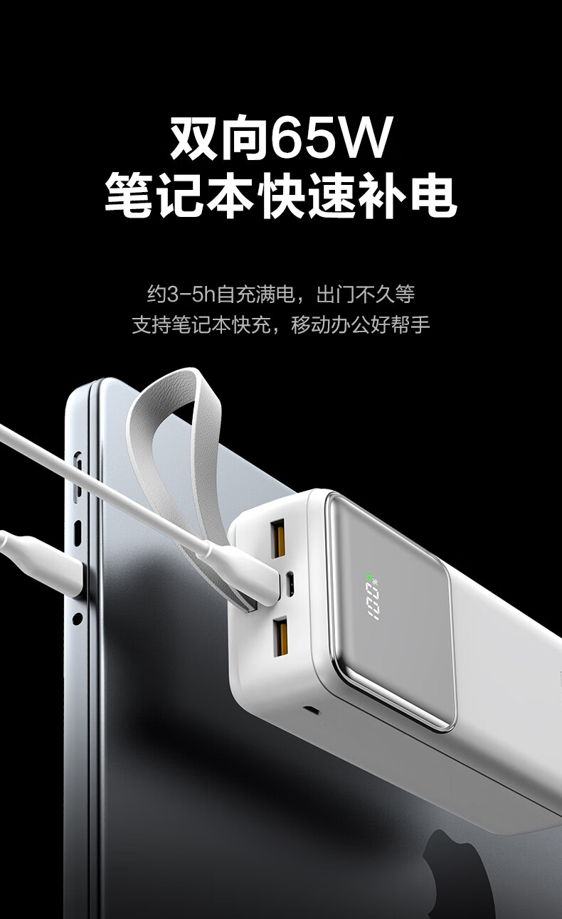 品胜(PISEN)3C认证充电宝65W可上飞机双向快充27000mAh大容量便携移动电源苹果17promax华为小米笔记本电脑 白色【65W快充|27000毫安】