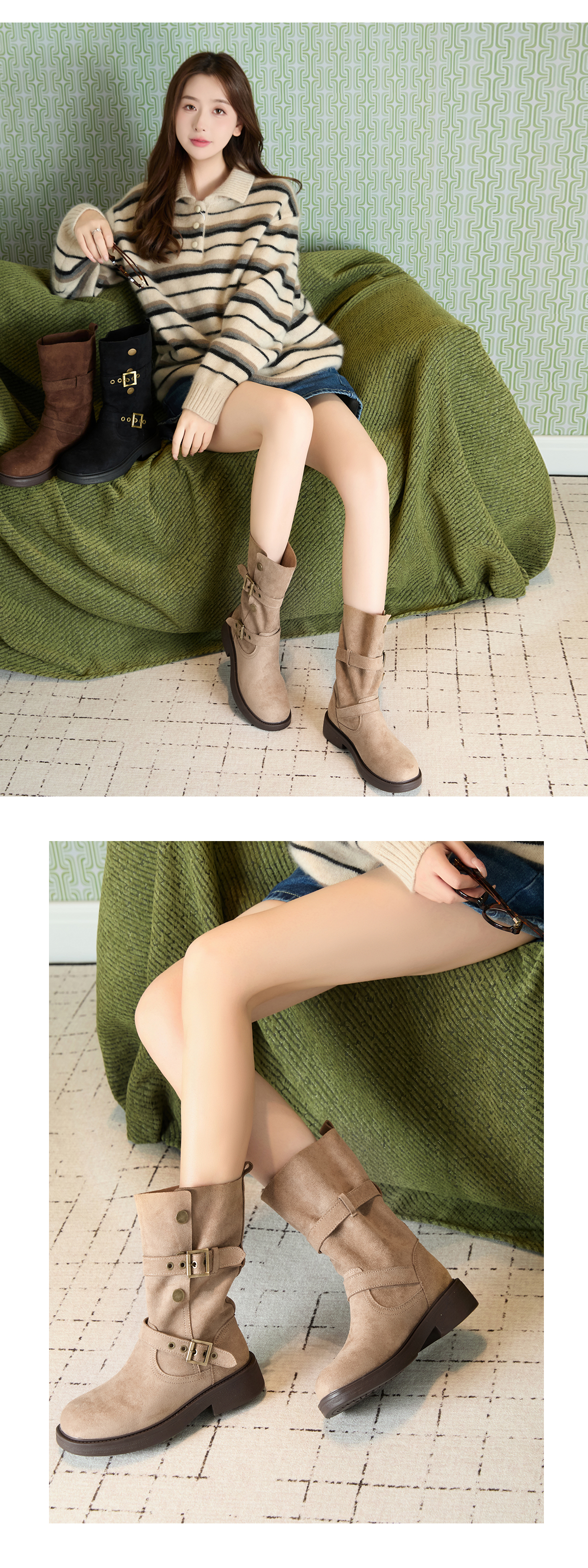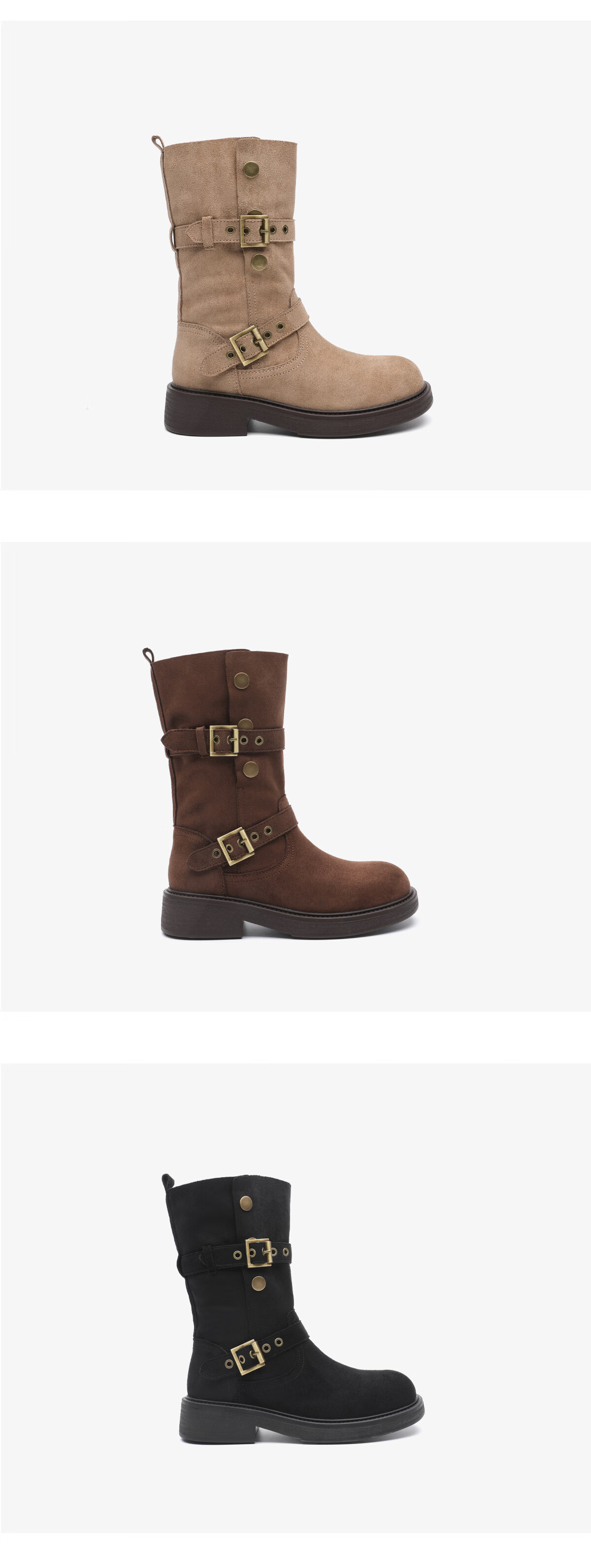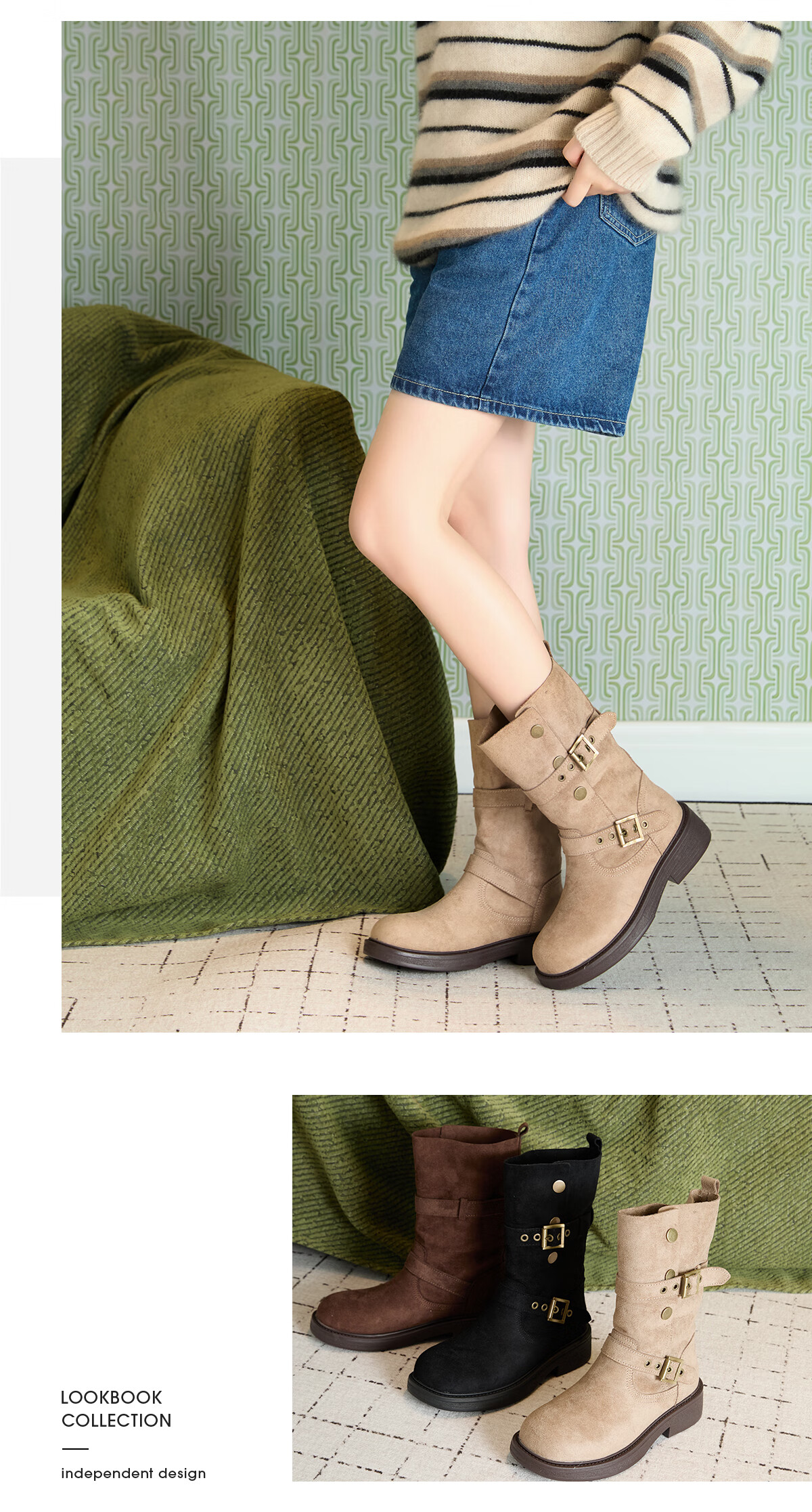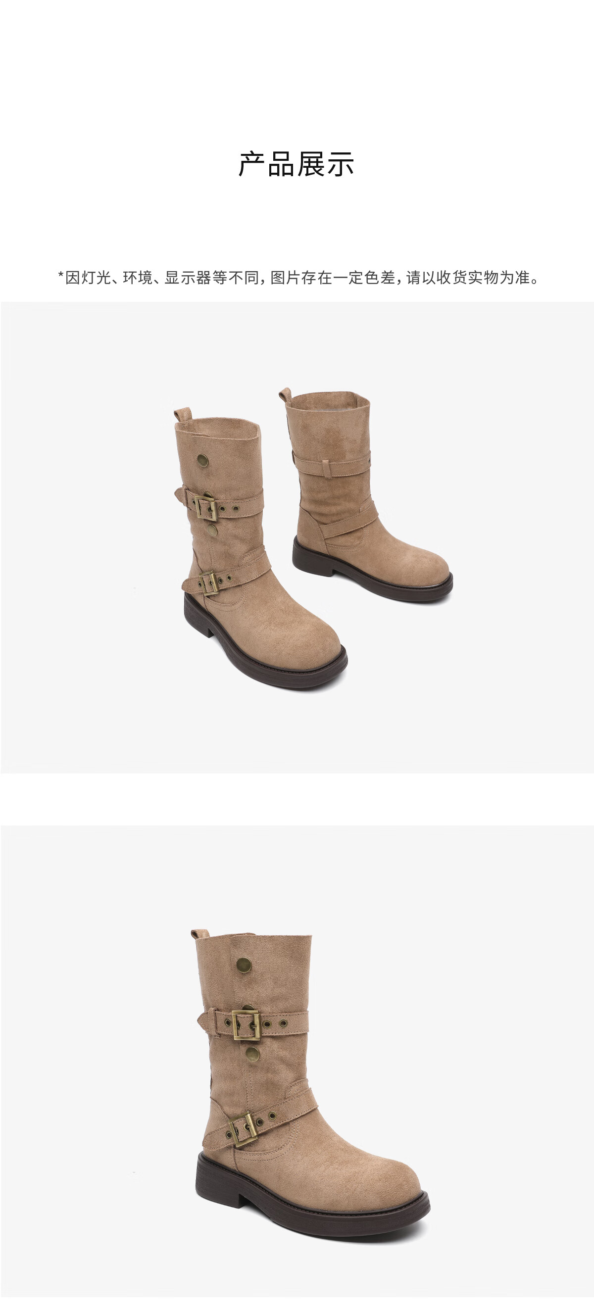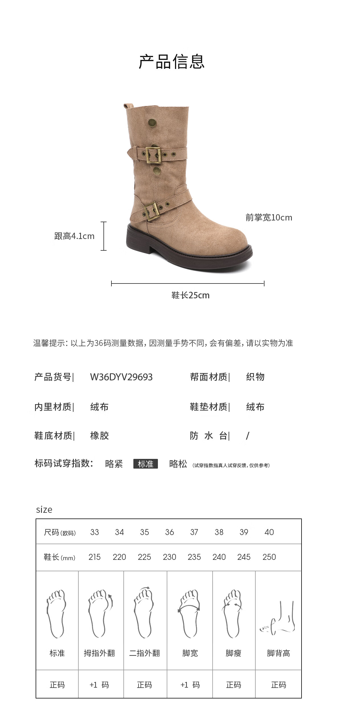 月芽儿马丁靴女2025新款秋冬加绒保暖织物鞋英伦风复古中筒靴子 绒里黑色01T 36