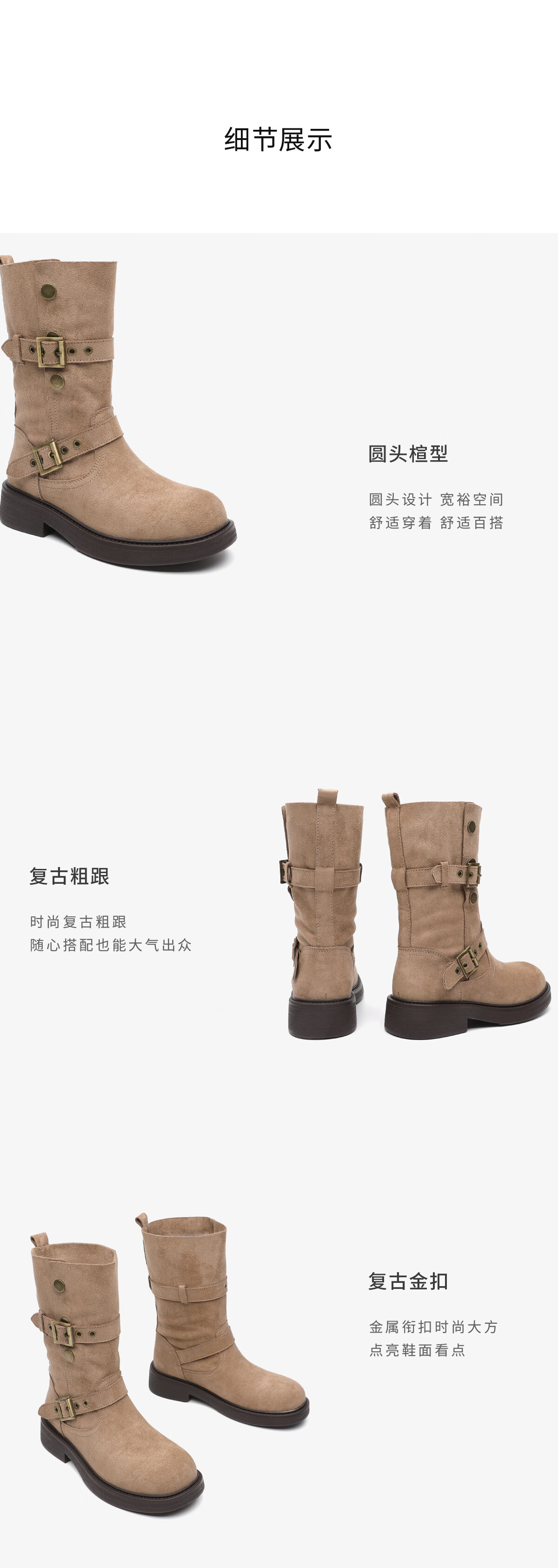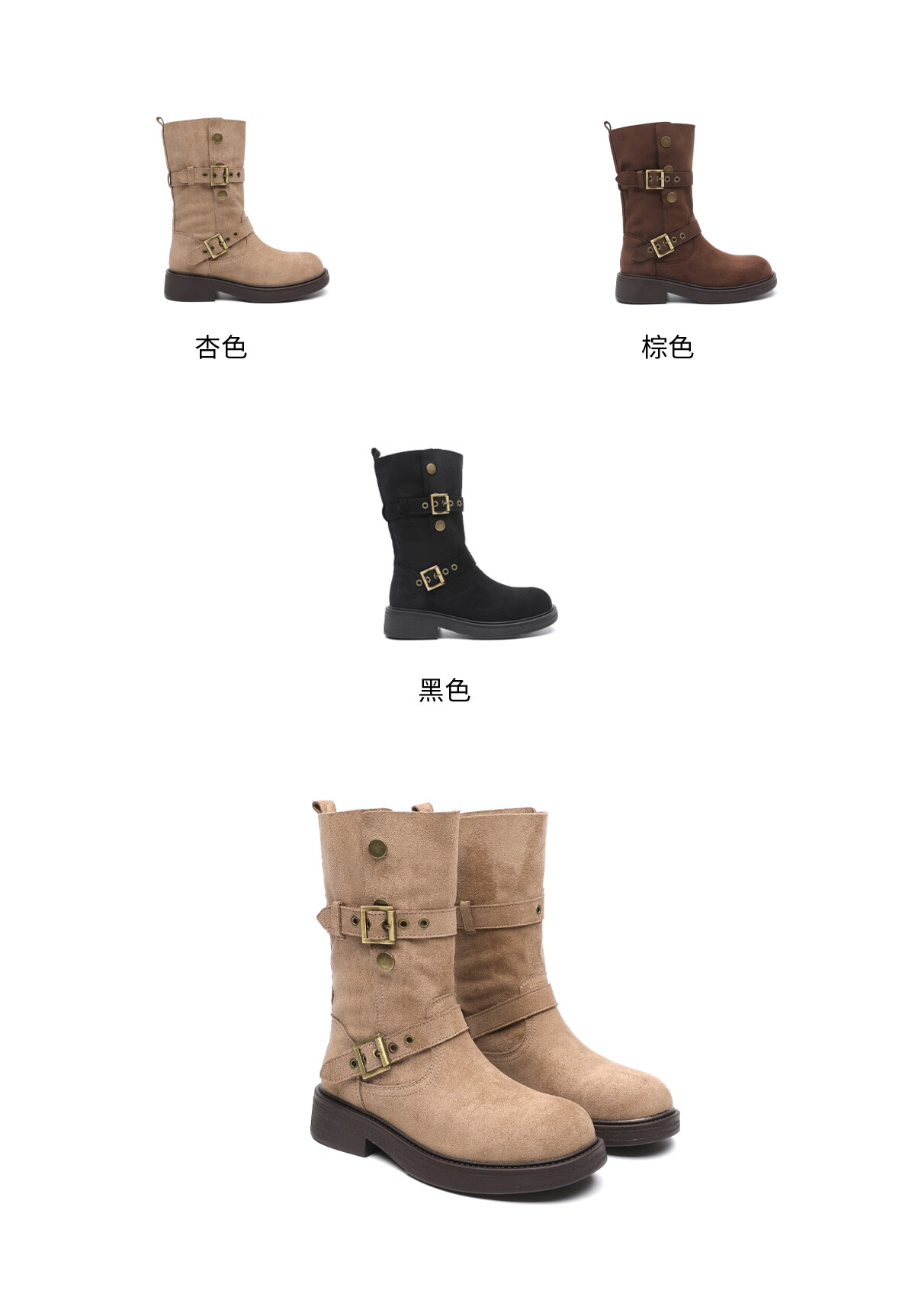 意尔康女靴雪地靴女士加绒加厚保暖棉鞋舒适百搭东北抗寒中筒靴子 土黄色 加绒 38