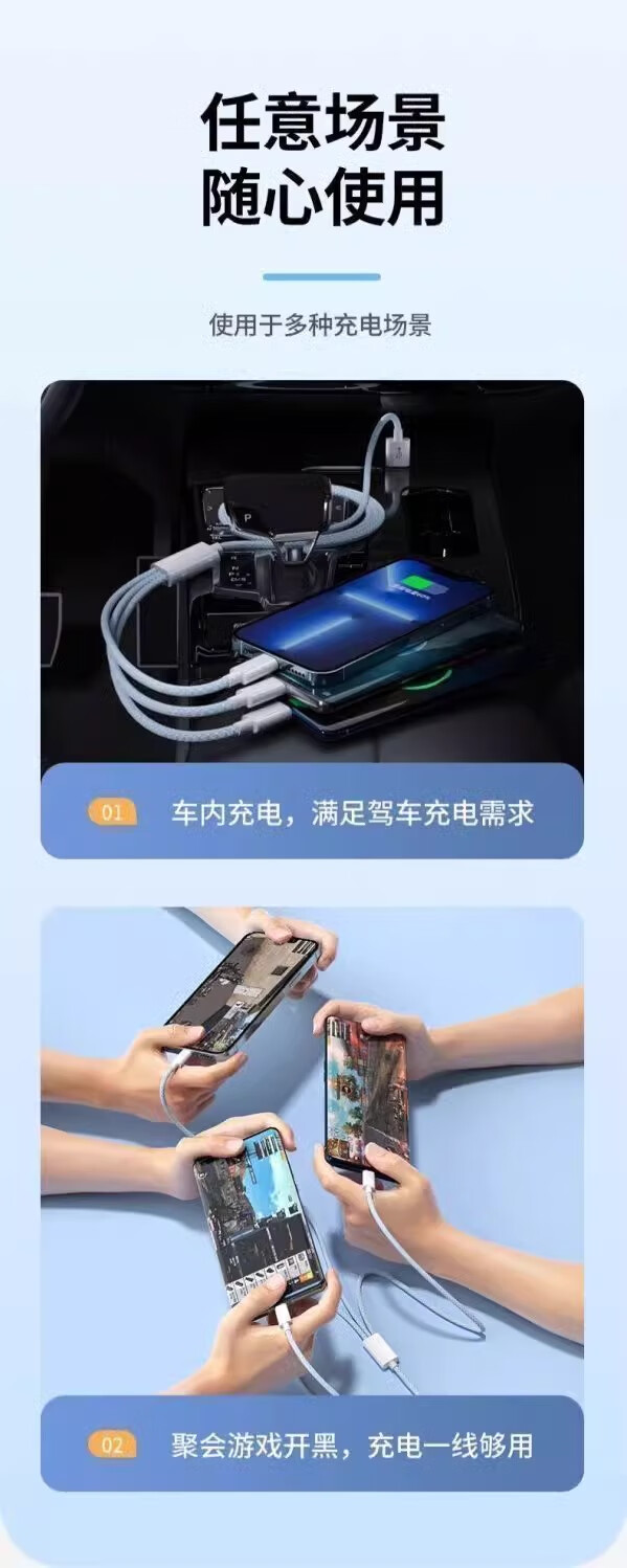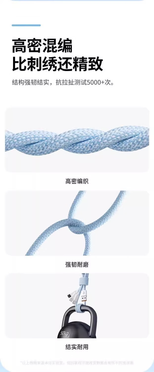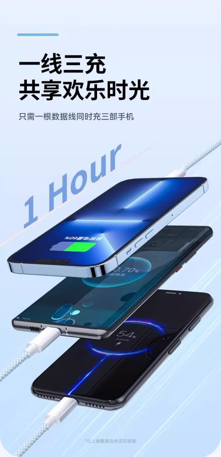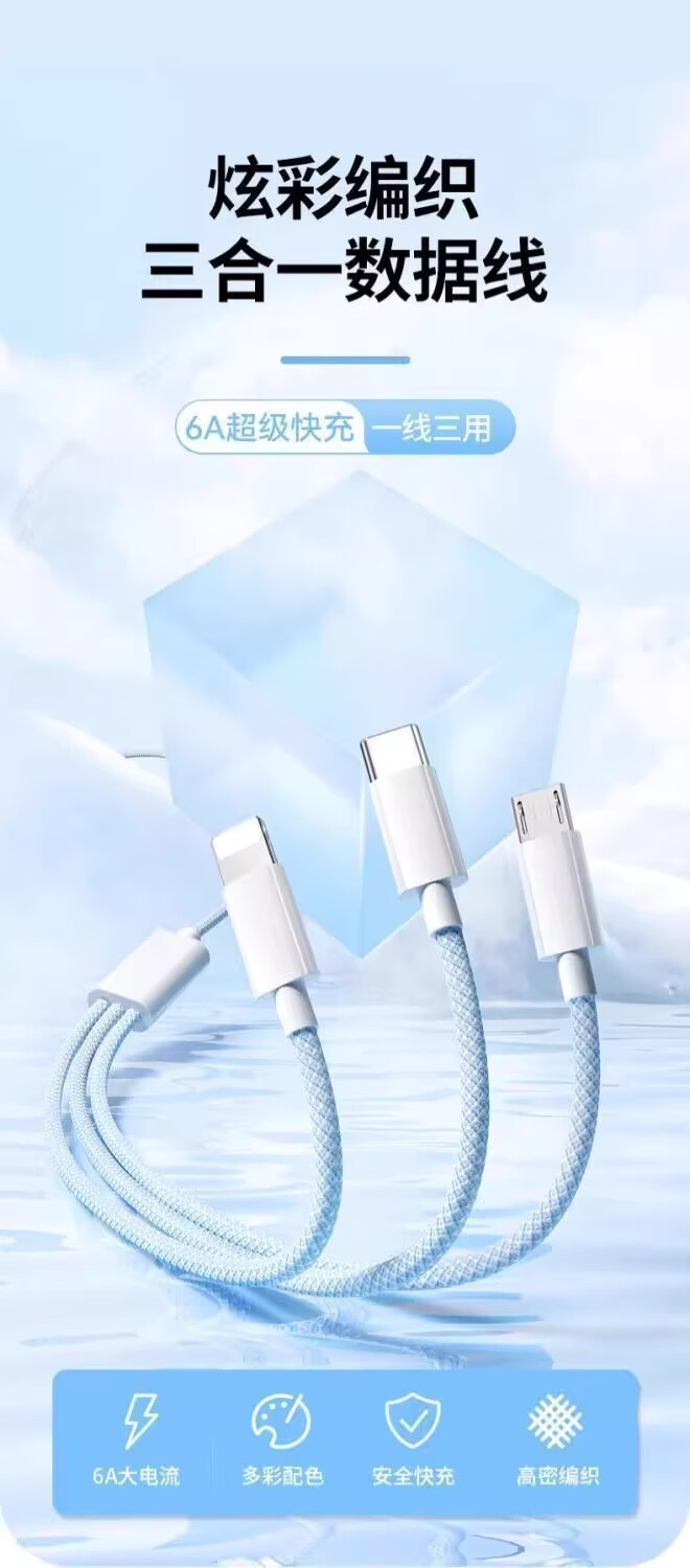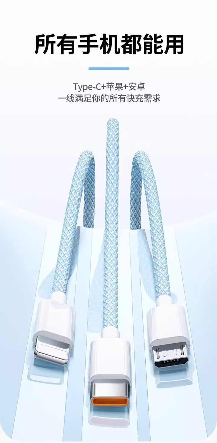 三合一编织数据线适用苹果安卓华为一拖三充电器线车载多头p60手机平板usb多功能vivo通用加长 1.2米【三合一硅胶白色】120w超级快充