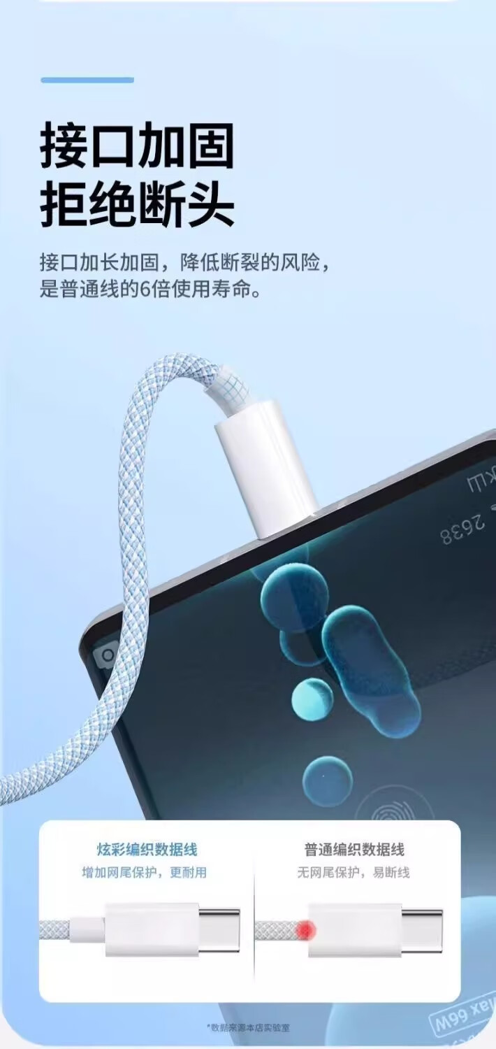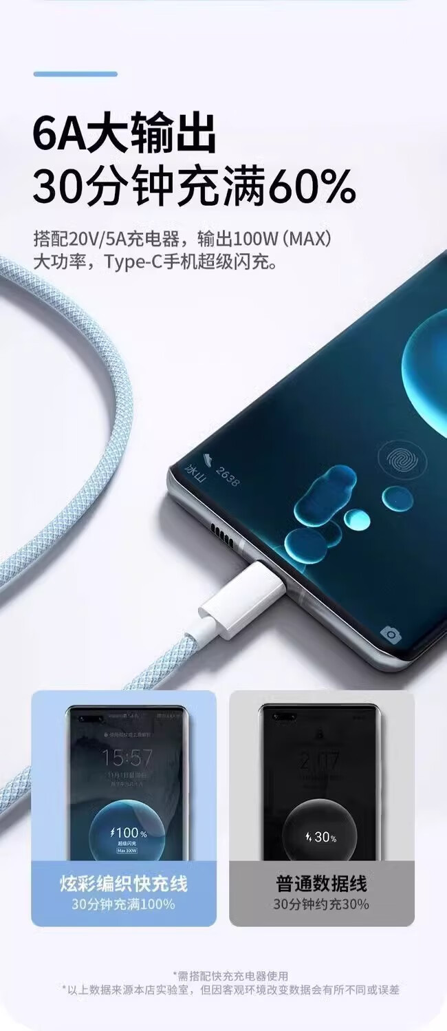 山泽Type-C数据线100W超级快充线6A适用华为Pura70/Mate60/50荣耀66W小米vivo安卓手机车载充电线1米