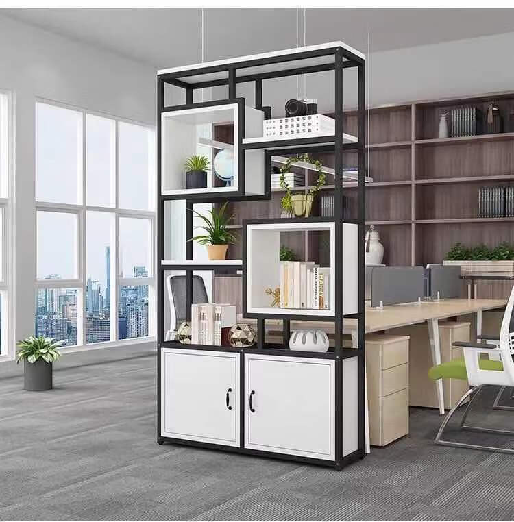 倘然之家办公室屏风隔断置物架铁艺落地花架装饰架餐厅客厅玄关展示架书架 加厚方管黑架+白板 现货 80长*30宽*200高(cm)