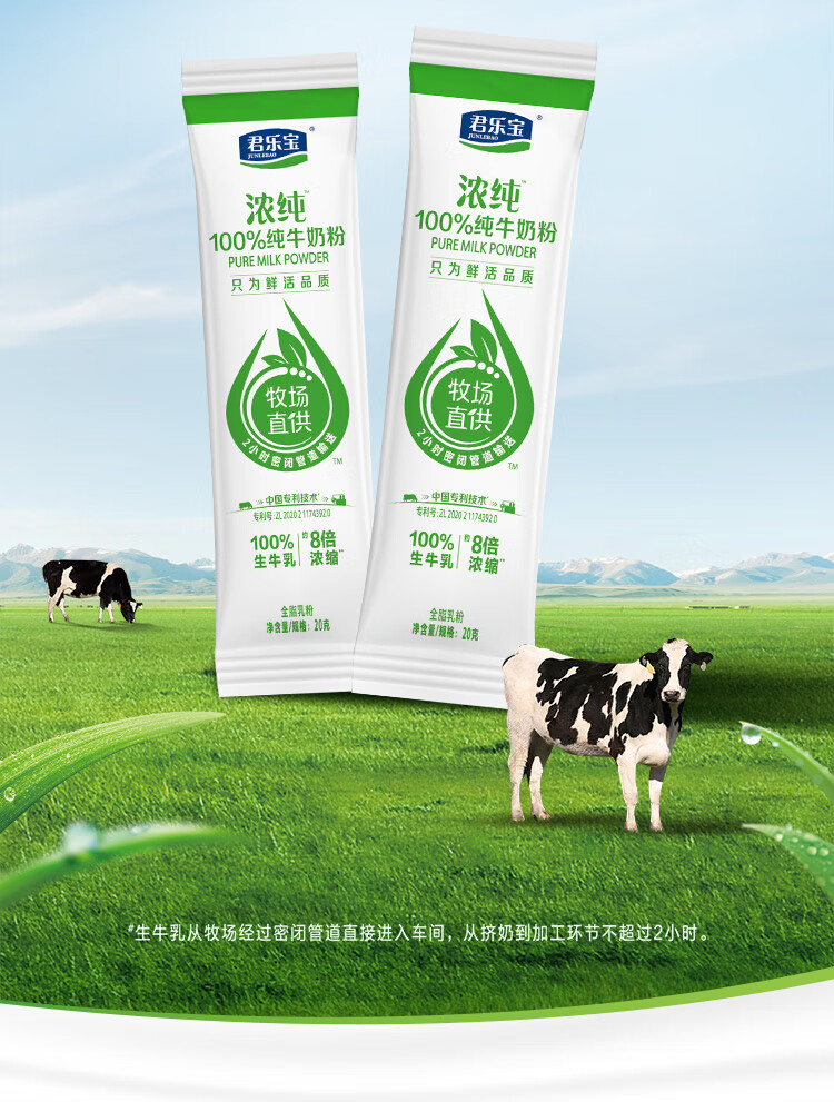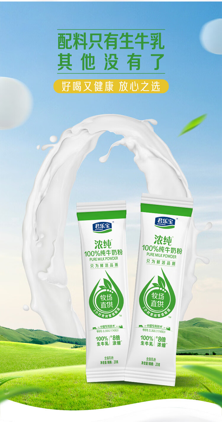君乐宝浓纯纯牛奶粉成人100%生牛乳高钙高蛋白男女全家奶粉 浓纯100%生牛乳20克*30条