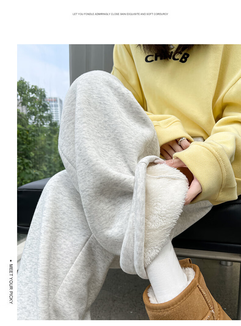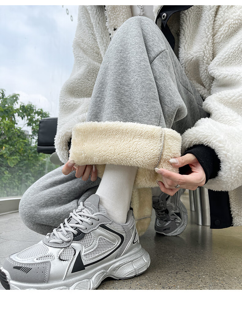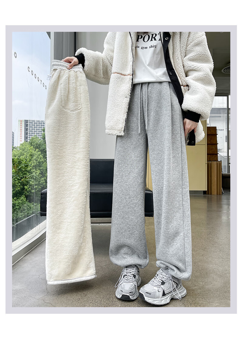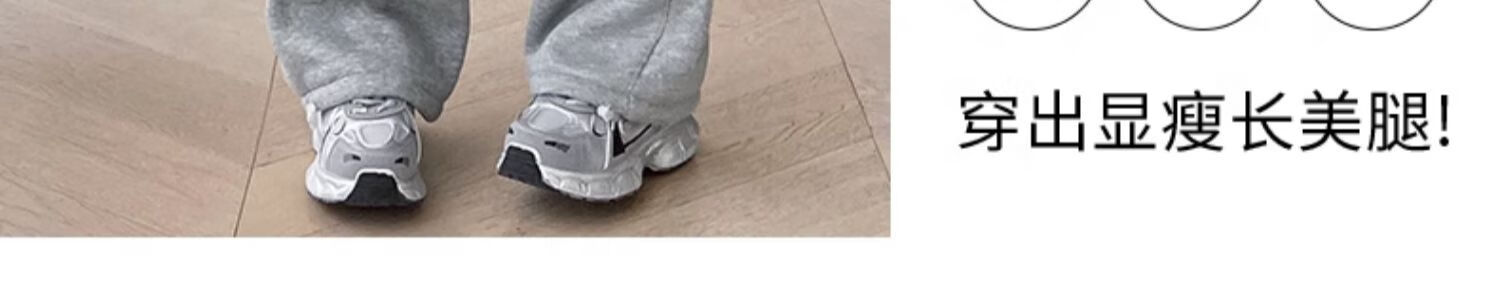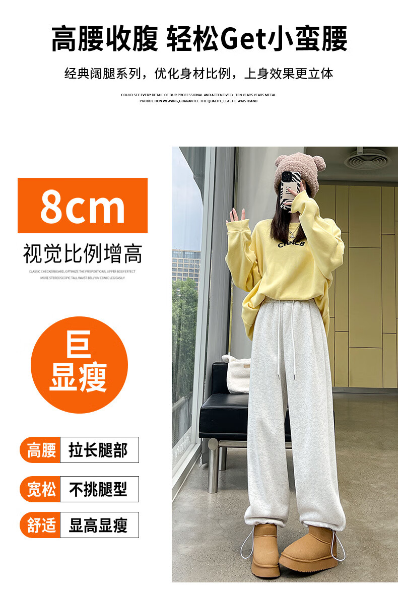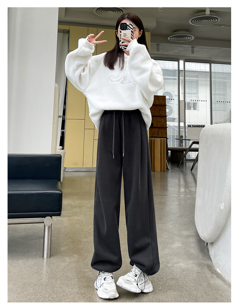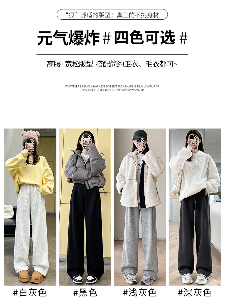 相伊恋人灰色休闲运动裤女春夏季25新款高腰宽松阔腿裤美式小个子束脚卫裤 浅灰色【加长-羊羔绒】 M 码【适合101-110斤】