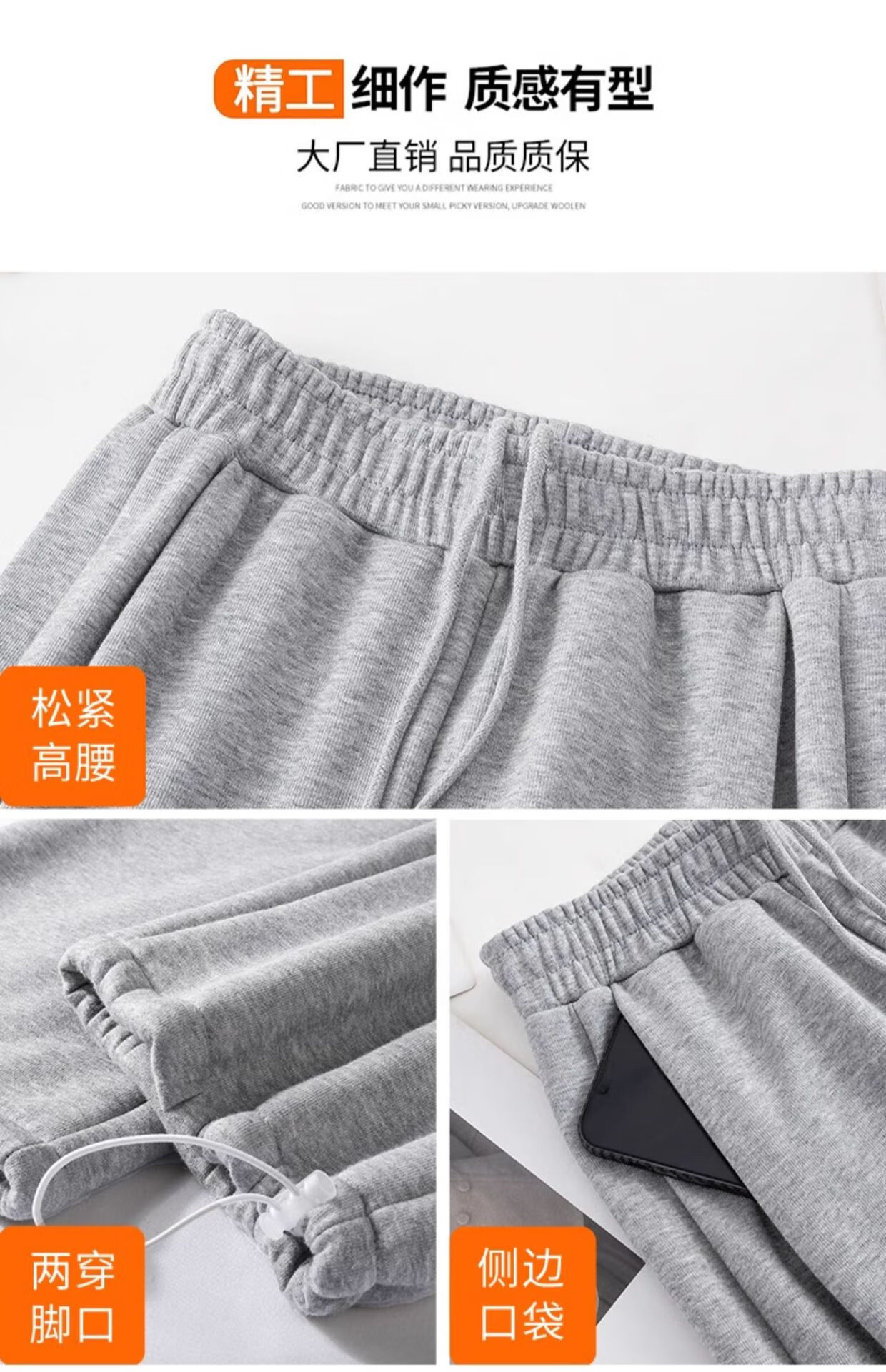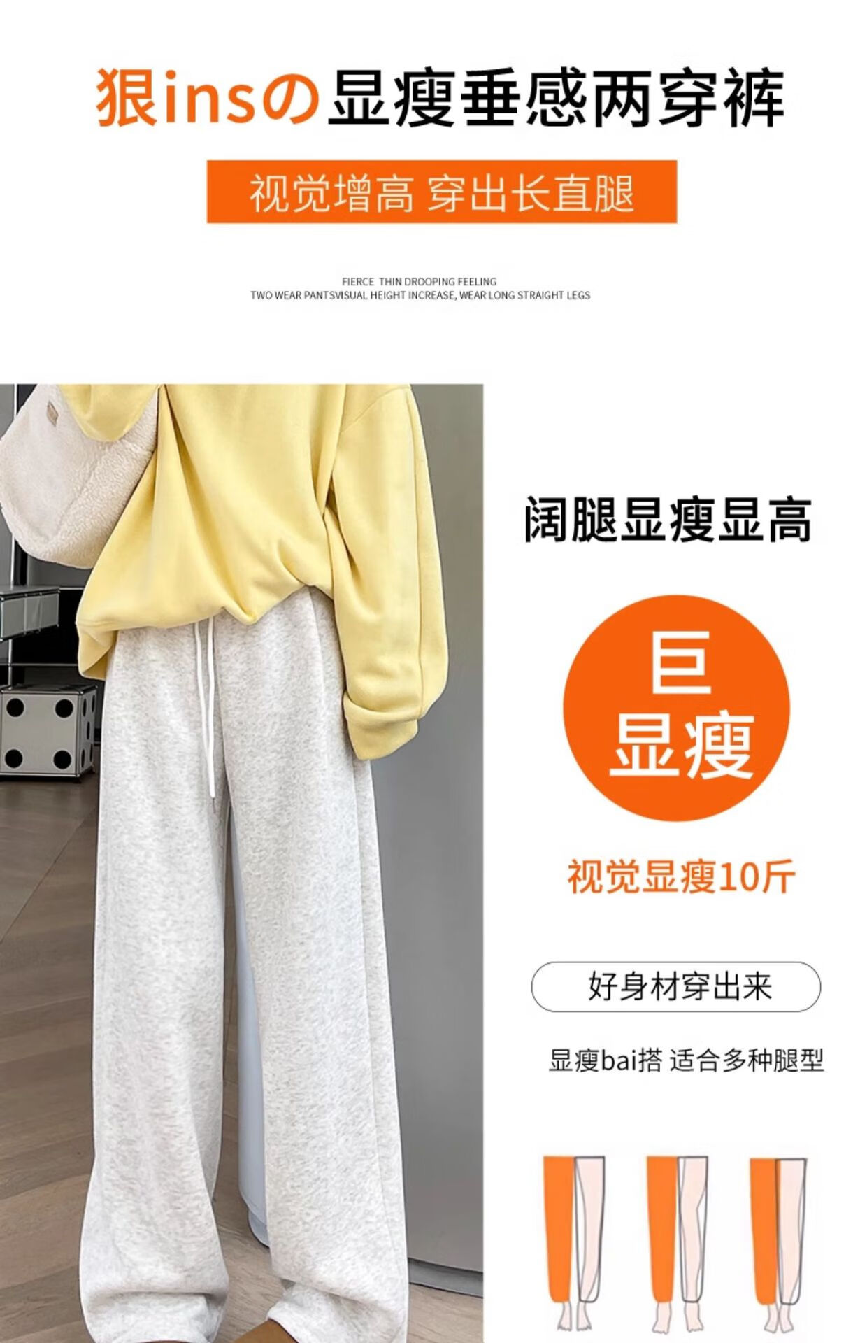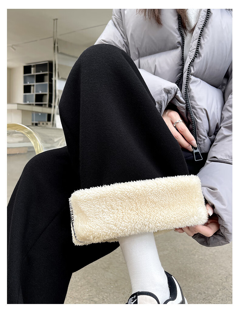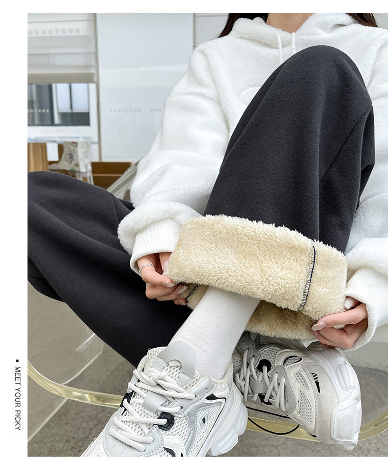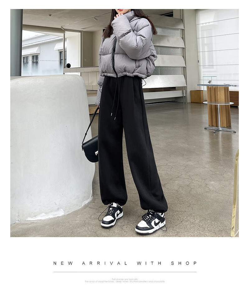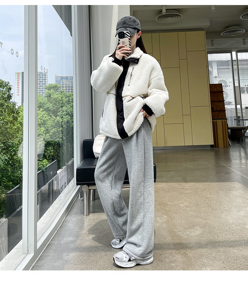 相伊恋人灰色休闲运动裤女春夏季25新款高腰宽松阔腿裤美式小个子束脚卫裤 浅灰色【加长-羊羔绒】 M 码【适合101-110斤】